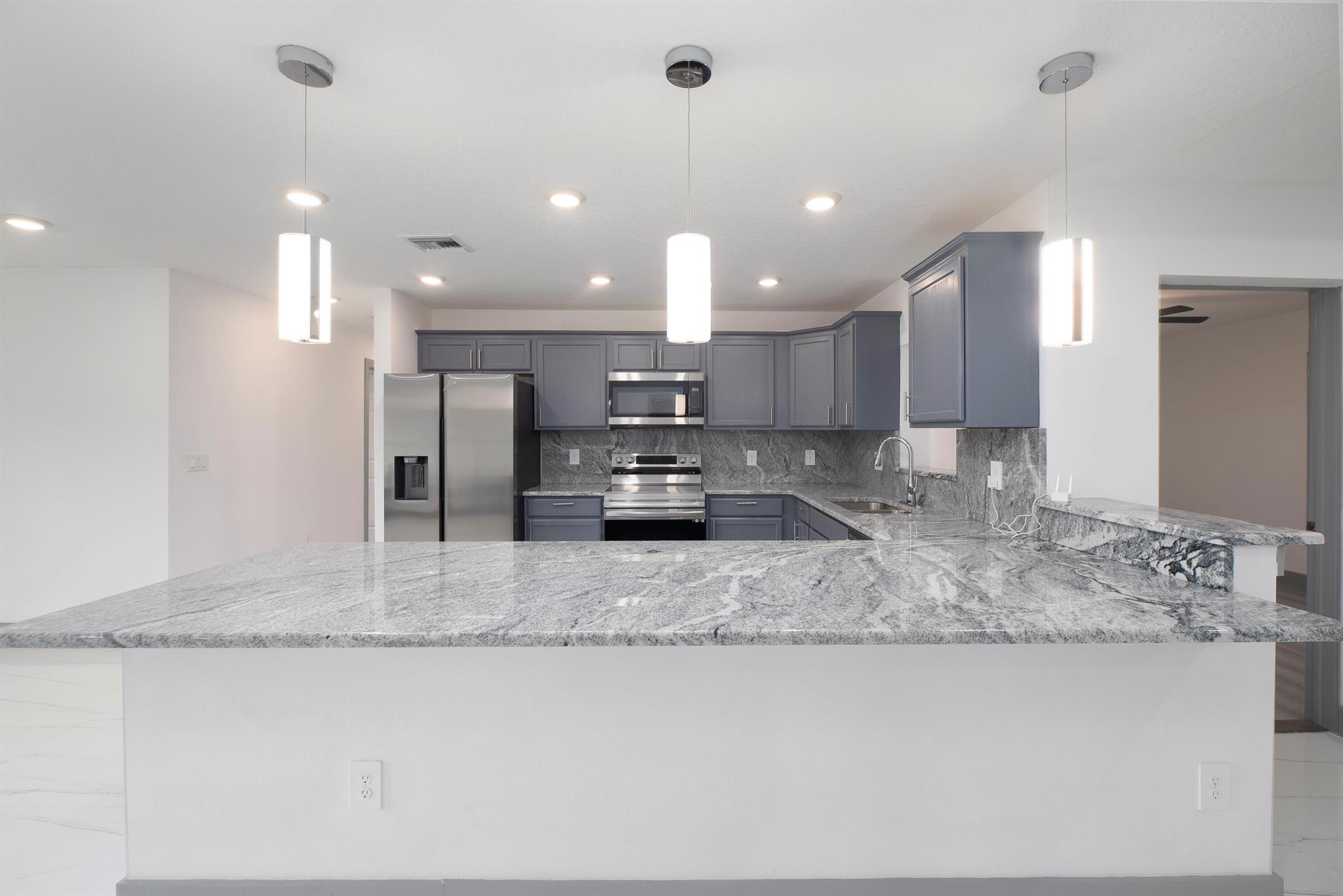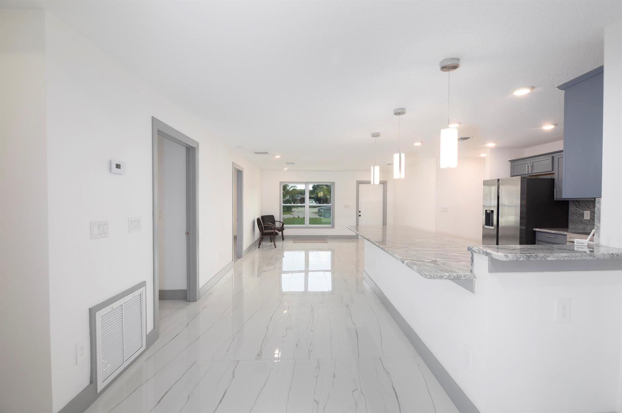 Completely remodeled from top to bottom, this stunning 4-bedroom, 4-bath with Den home features 3 full master suites, including a private guest room with its own bath. The gorgeous kitchen boasts modern finishes and stainless steel appliances. Beautiful flooring, elegant fixtures, and impact windows provide hurricane protection and energy efficiency. Located on a peaceful cul-de-sac with no HOA and no rear neighbors for true privacy. Just minutes from I-95, the Turnpike, beaches, top-rated schools, hospitals, colleges, restaurants, medical offices, and shopping. Move-in ready with a new 2024 roof, new water heater, and septic system. A rare find in a quiet, well-situated neighborhood--don't miss it!