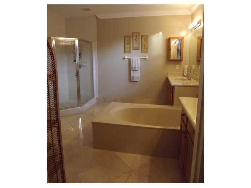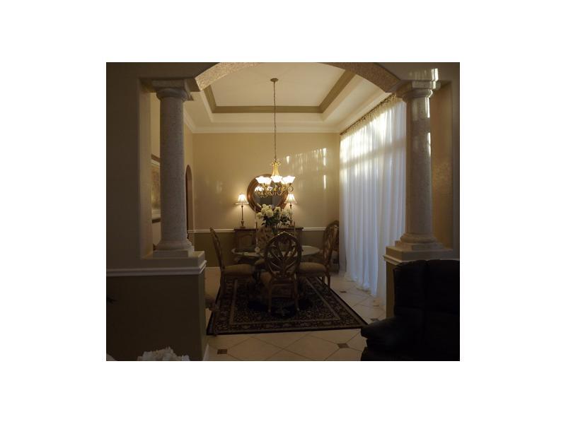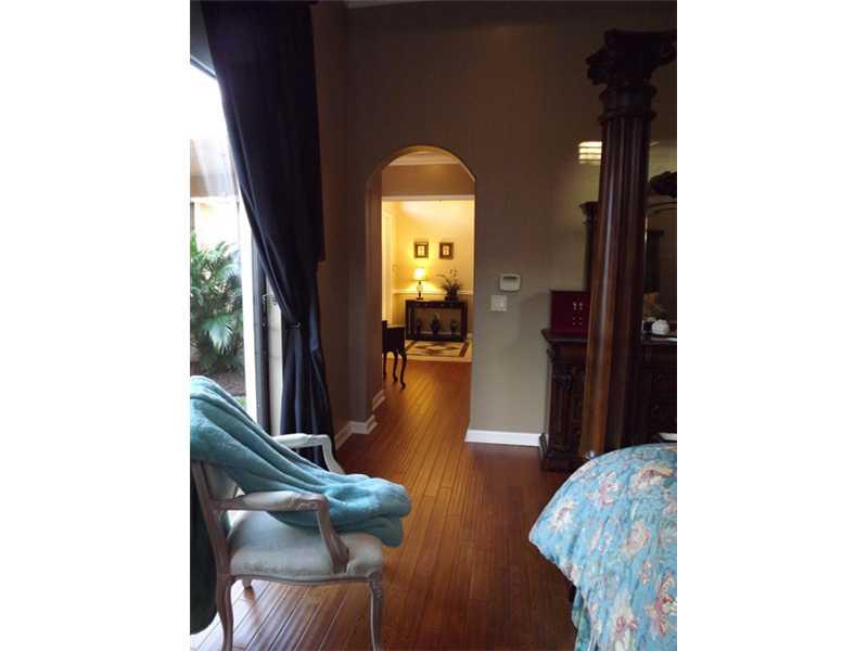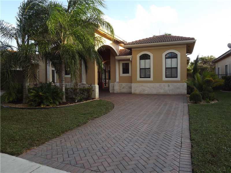 Spectacular one story Mediterranean home in luxurious guard gated community featuring 5 bedrooms, 3.5 baths, guest suite, 3-car garage, covered patio, laundry room. The main living areas have 12 foot ceilings with crown, chair rail molding & tray ceilin gs in the master bedroom and formal dining room. Living area has ceramic tile floors, marble in master bathroom, wood floors in the bedrooms. Large kitchen with a casual dining area adjacent to the family room. Please see broker remarks for showings.