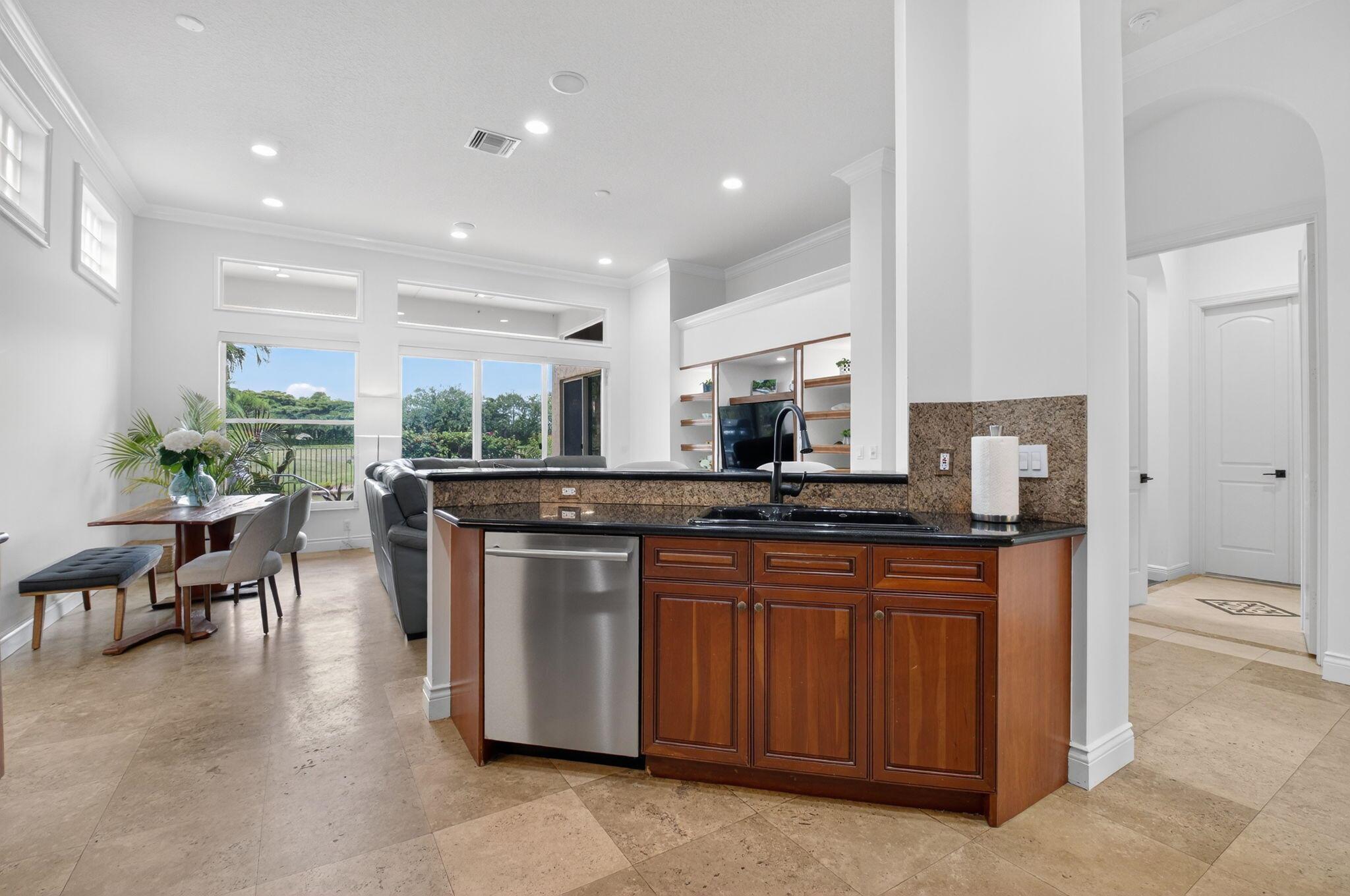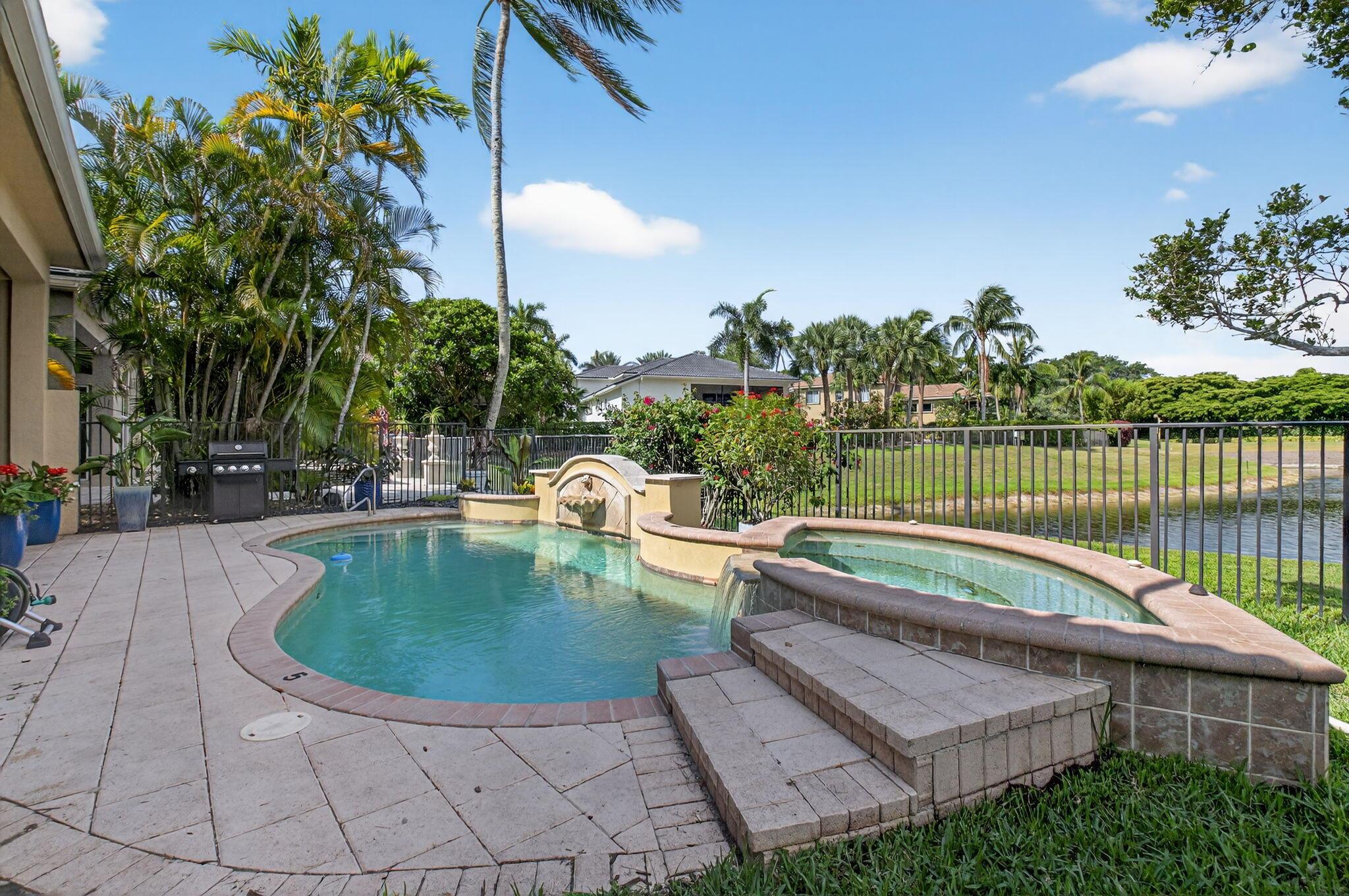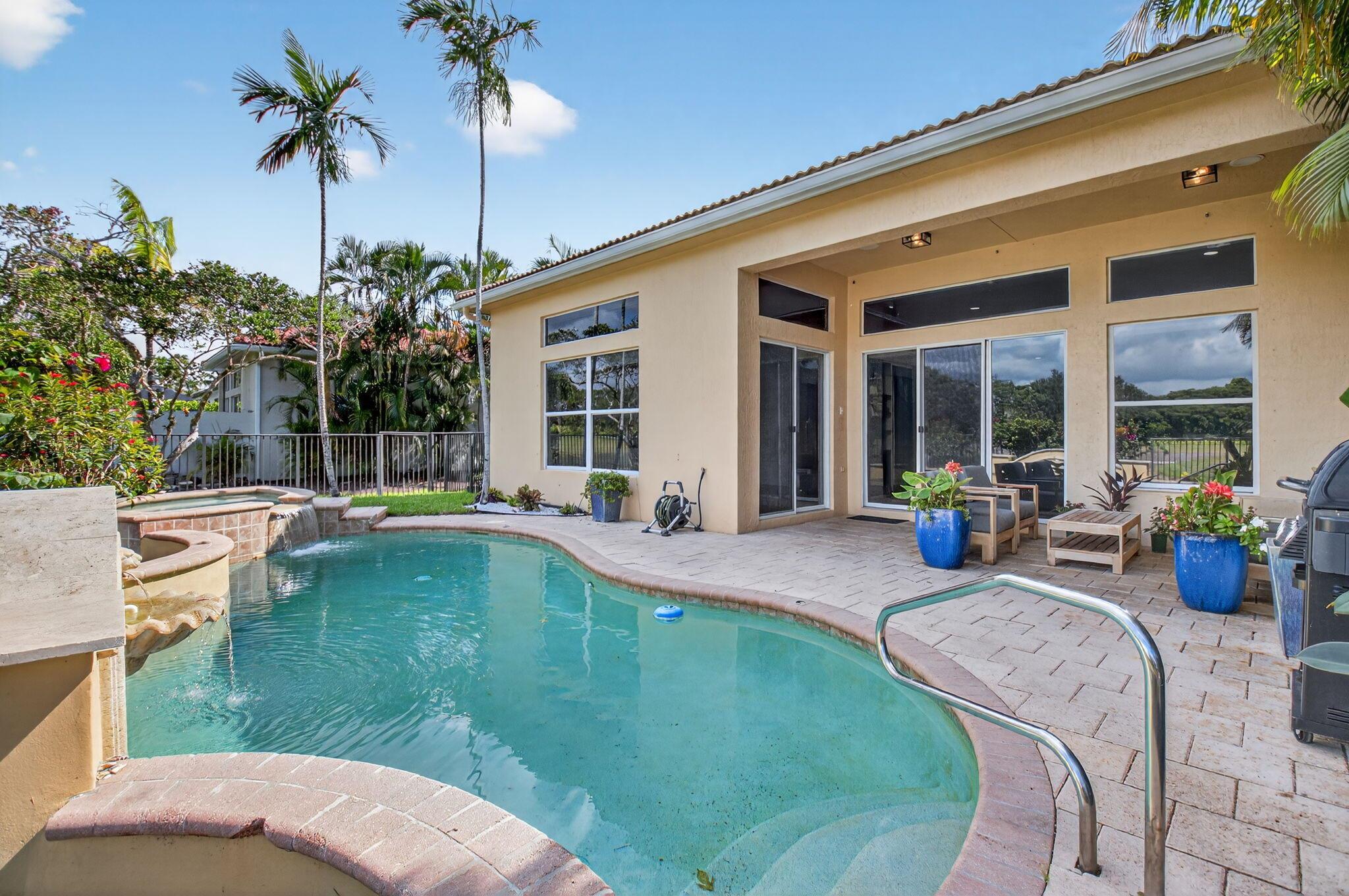 GOLF MEMBERSHIP AVAILABLE!!! SKIP THE WAITLIST! Don't miss this opportunity to own a beautifully appointed 3-bedroom, 2.1-bath home in Mizner Country Club, perfectly situated on a lakefront lot overlooking the 10th hole. The designer kitchen features stainless steel appliances, granite countertops, pantry, and custom cabinetry. Enjoy elegant living with marble floors, crown molding, and built-ins throughout the spacious dining and living areas. The spa-like primary suite offers a luxurious escape with dual vanities, a jacuzzi tub, and separate shower. Step outside to relax by the gorgeous free-form pool, perfect for entertaining or unwinding with tranquil golf and lake views. Hurry up...this exceptional home won't last!