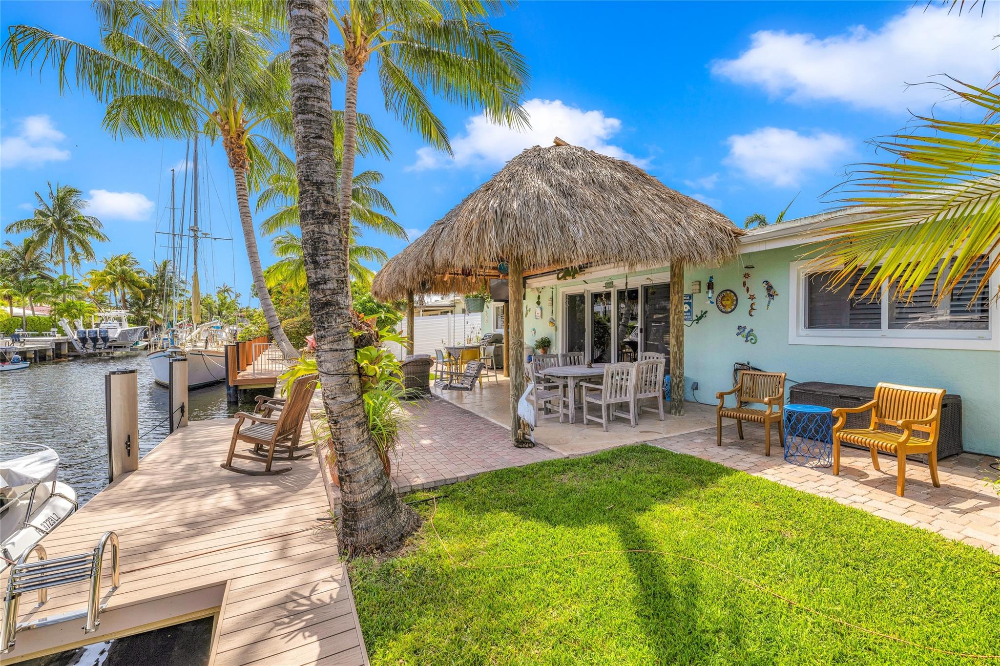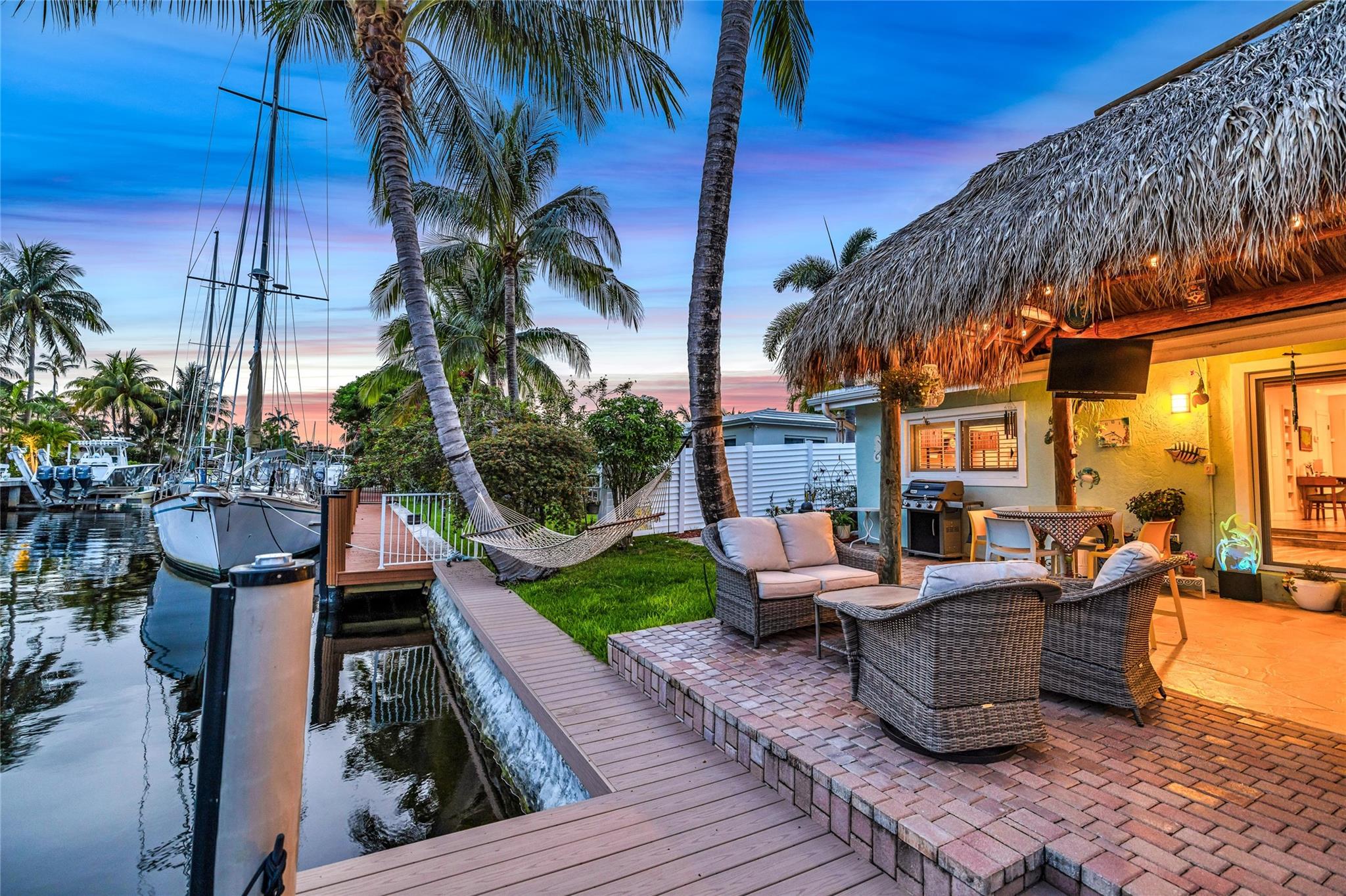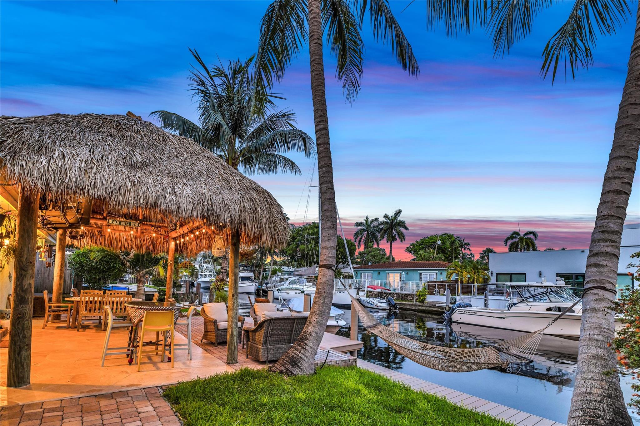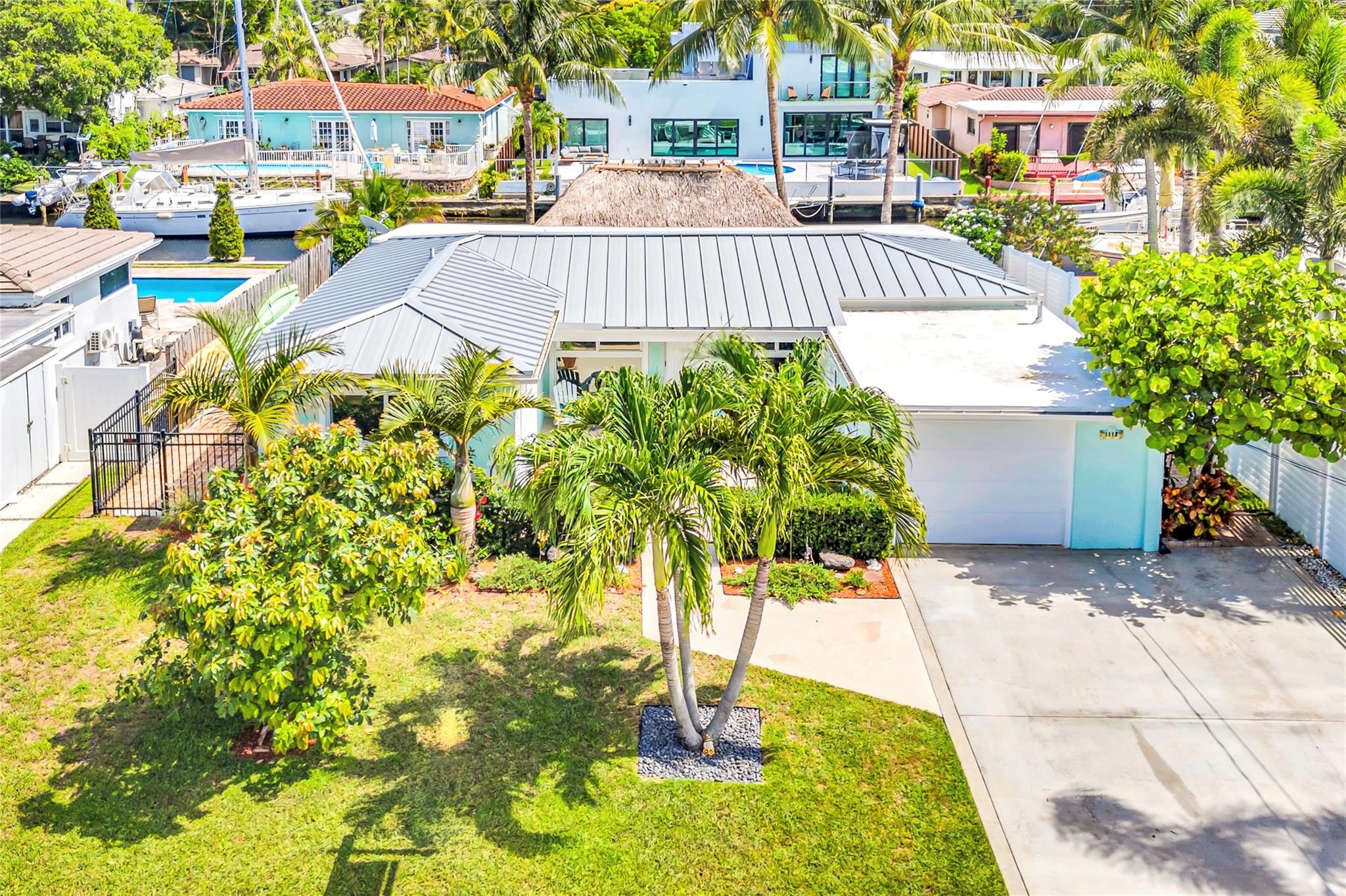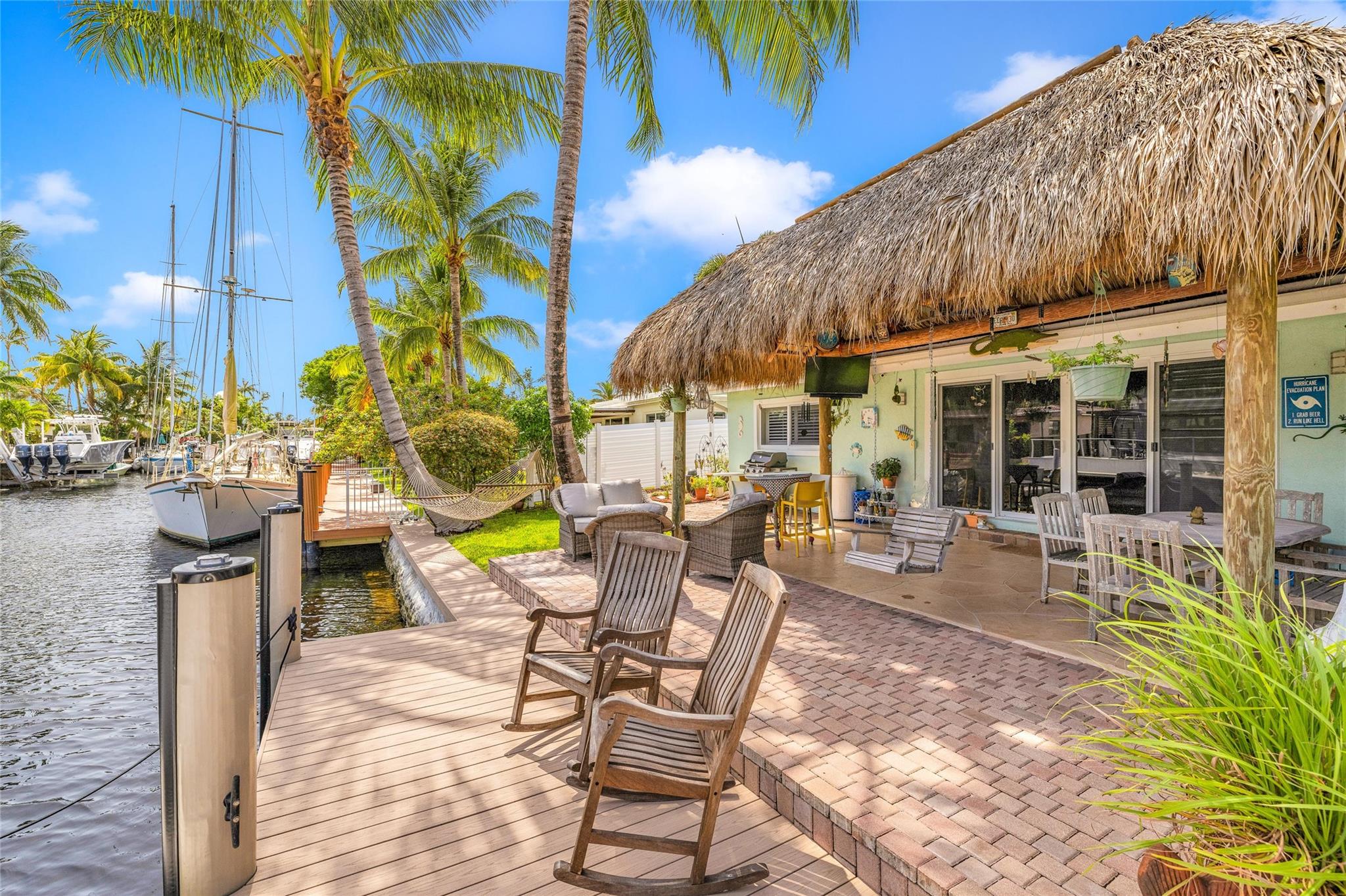 Beautifully remodeled mid-century home with 65 feet of unrestricted deepwater frontage—no fixed bridges to the ocean. Features a spacious open floor plan, gourmet kitchen, and luxurious primary suite with dual vanities. Upgrades include impact-resistant windows and doors, a new metal roof, premium flooring, and designer finishes throughout the property. Enjoy waterfront living with a tiki hut and private dock, just minutes to Las Olas, downtown, beaches, FLL Airport, and the hospital. Boater’s dream in an excellent Fort Lauderdale location! No HOA. MAJOR UPGRADES: Metal Roof 2021, Flat Roof 2017, HVAC 2016, Tiki Hut 2019, Fence 2019, All Impact Windows and Doors 2017, Concrete Driveway and Paver Front Patio 2019, Fence 2020, Natural Gas 2017.