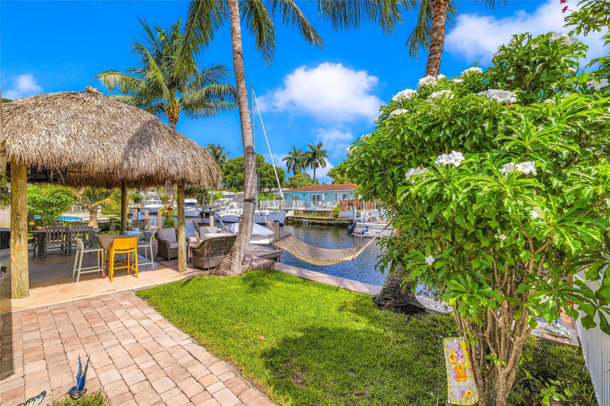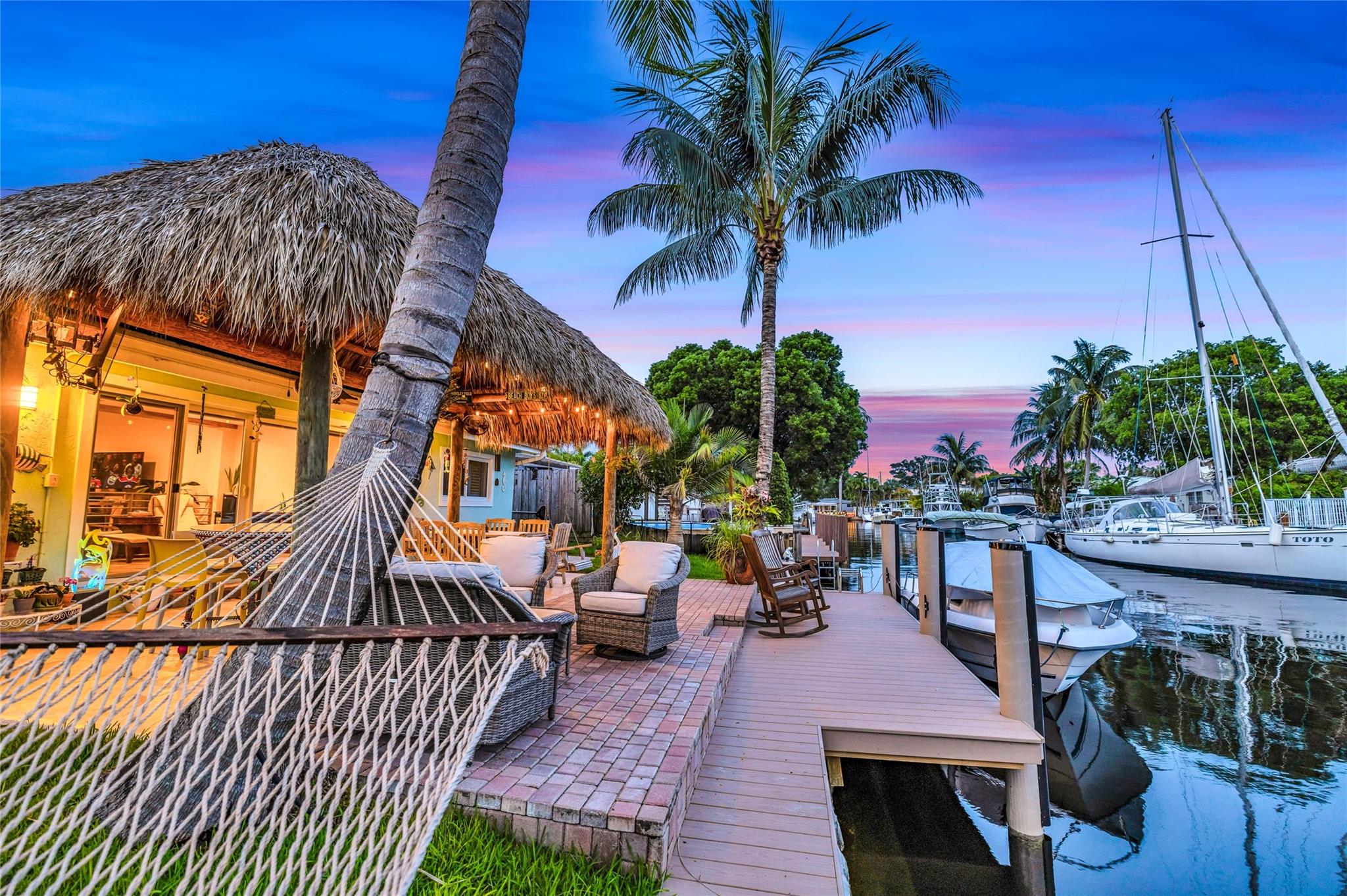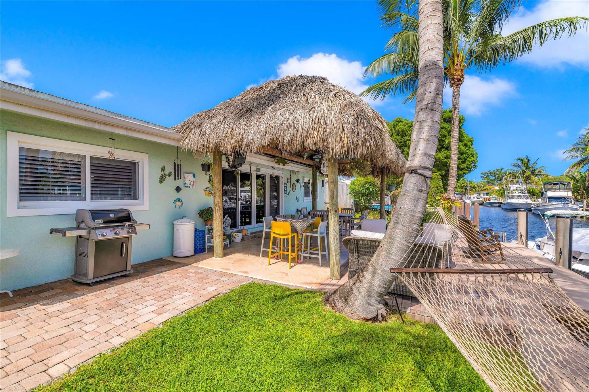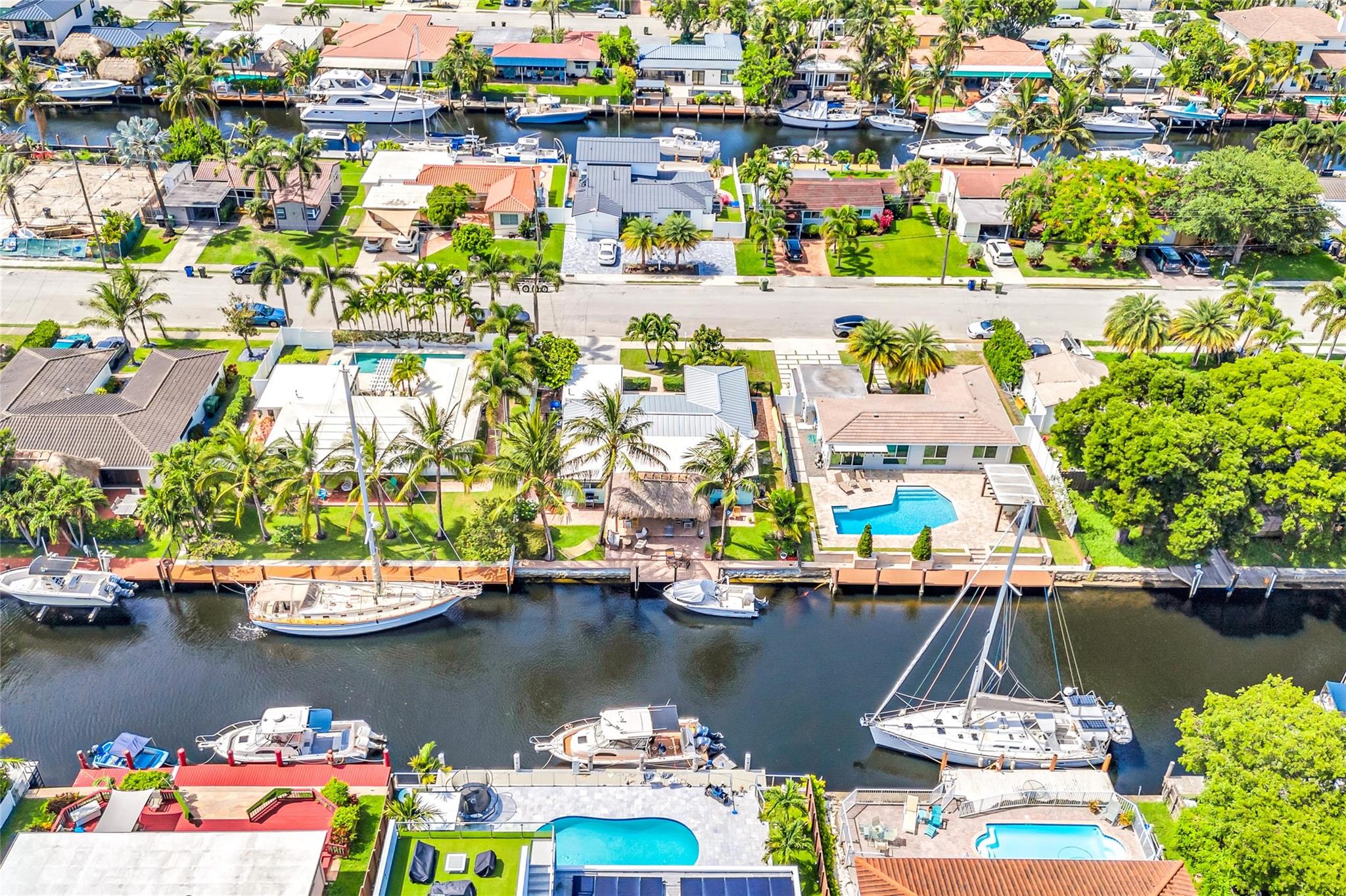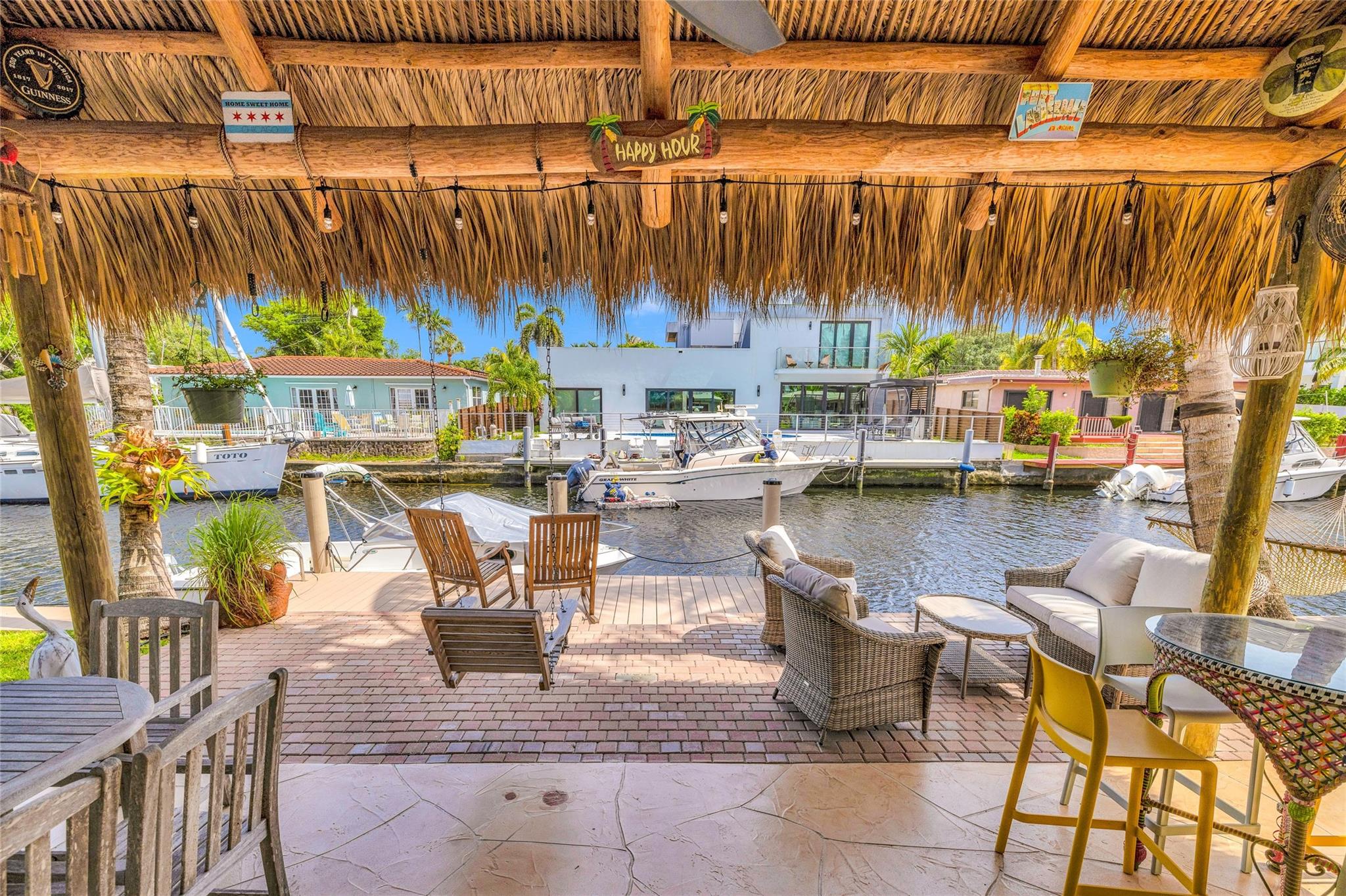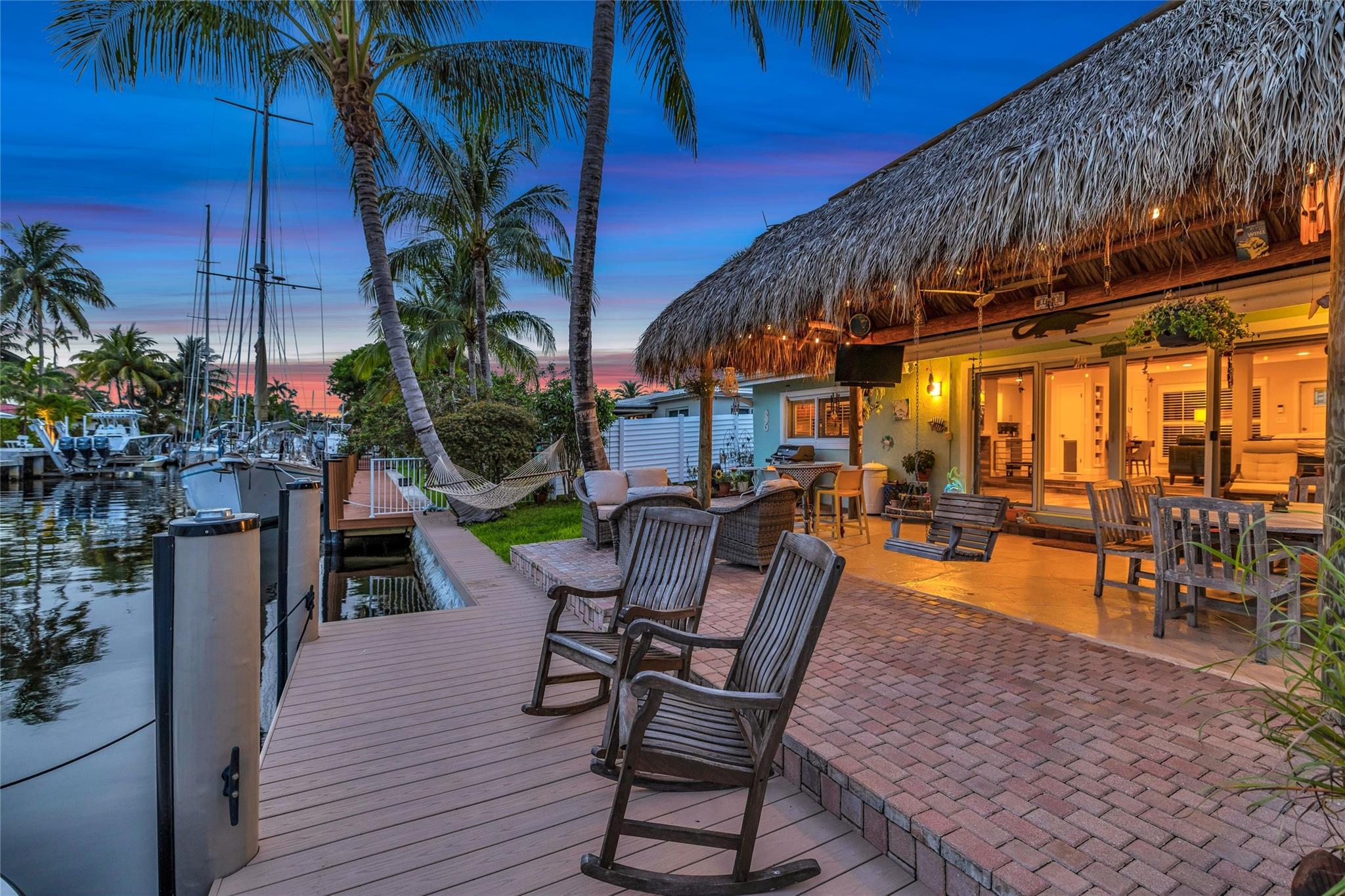 Beautifully remodeled mid-century home with 65 feet of unrestricted deepwater frontage—no fixed bridges to the ocean. Features a spacious open floor plan, gourmet kitchen, and luxurious primary suite with dual vanities. Upgrades include impact-resistant windows and doors, a new metal roof, premium flooring, and designer finishes throughout the property. Enjoy waterfront living with a tiki hut and private dock, just minutes to Las Olas, downtown, beaches, FLL Airport, and the hospital. Boater’s dream in an excellent Fort Lauderdale location! No HOA. MAJOR UPGRADES: Metal Roof 2021, Flat Roof 2017, HVAC 2016, Tiki Hut 2019, Fence 2019, All Impact Windows and Doors 2017, Concrete Driveway and Paver Front Patio 2019, Fence 2020, Natural Gas 2017.