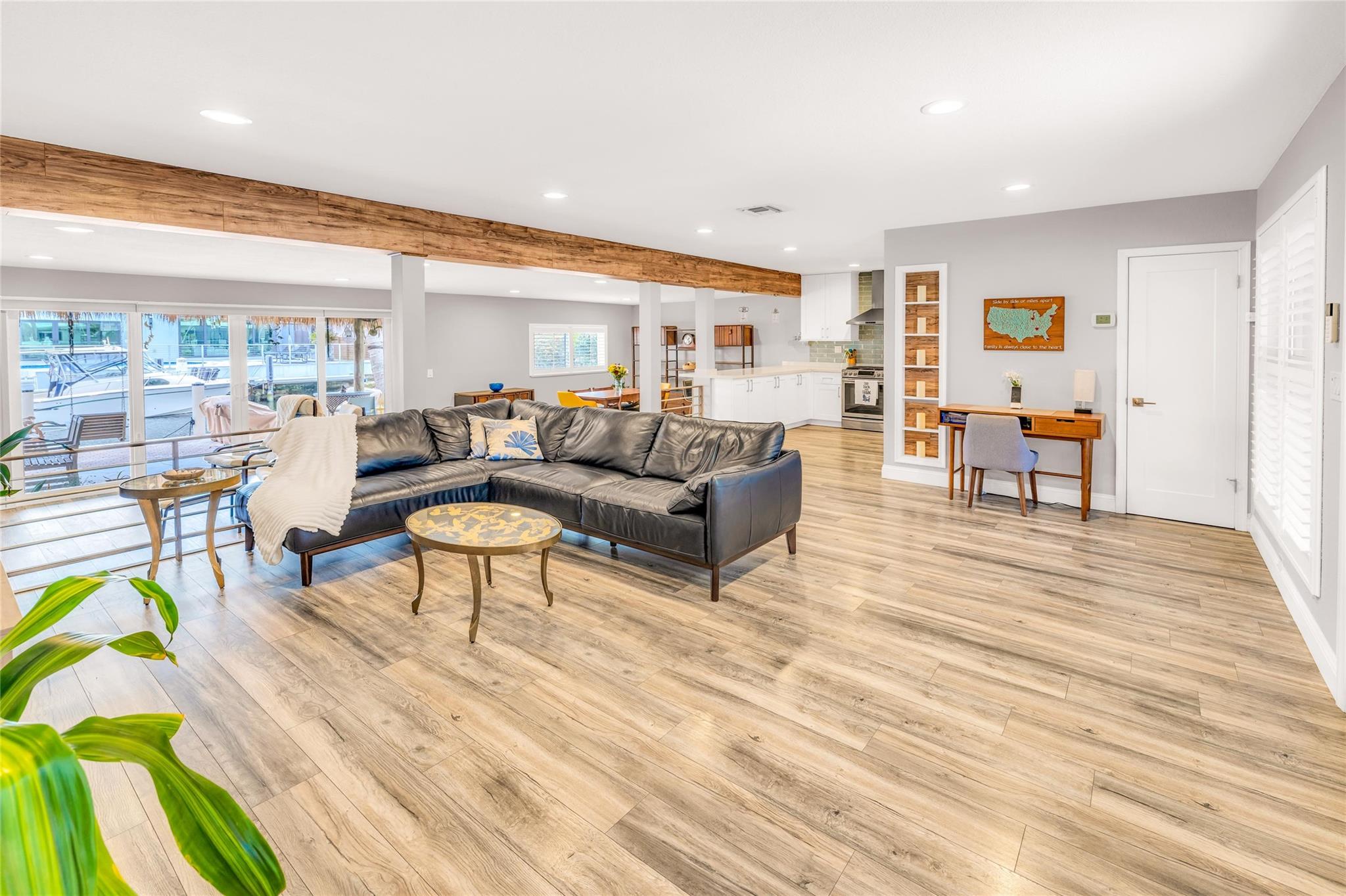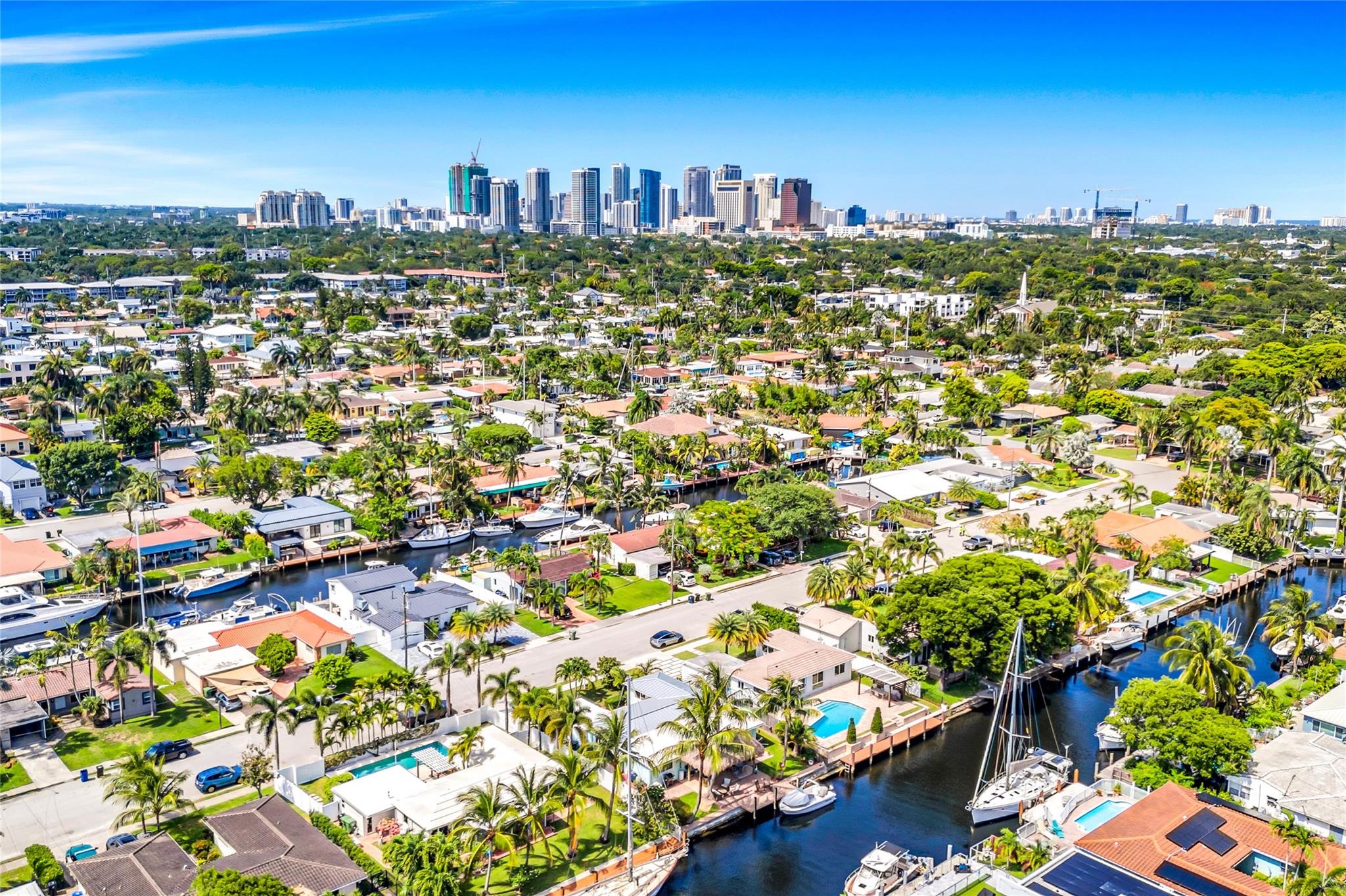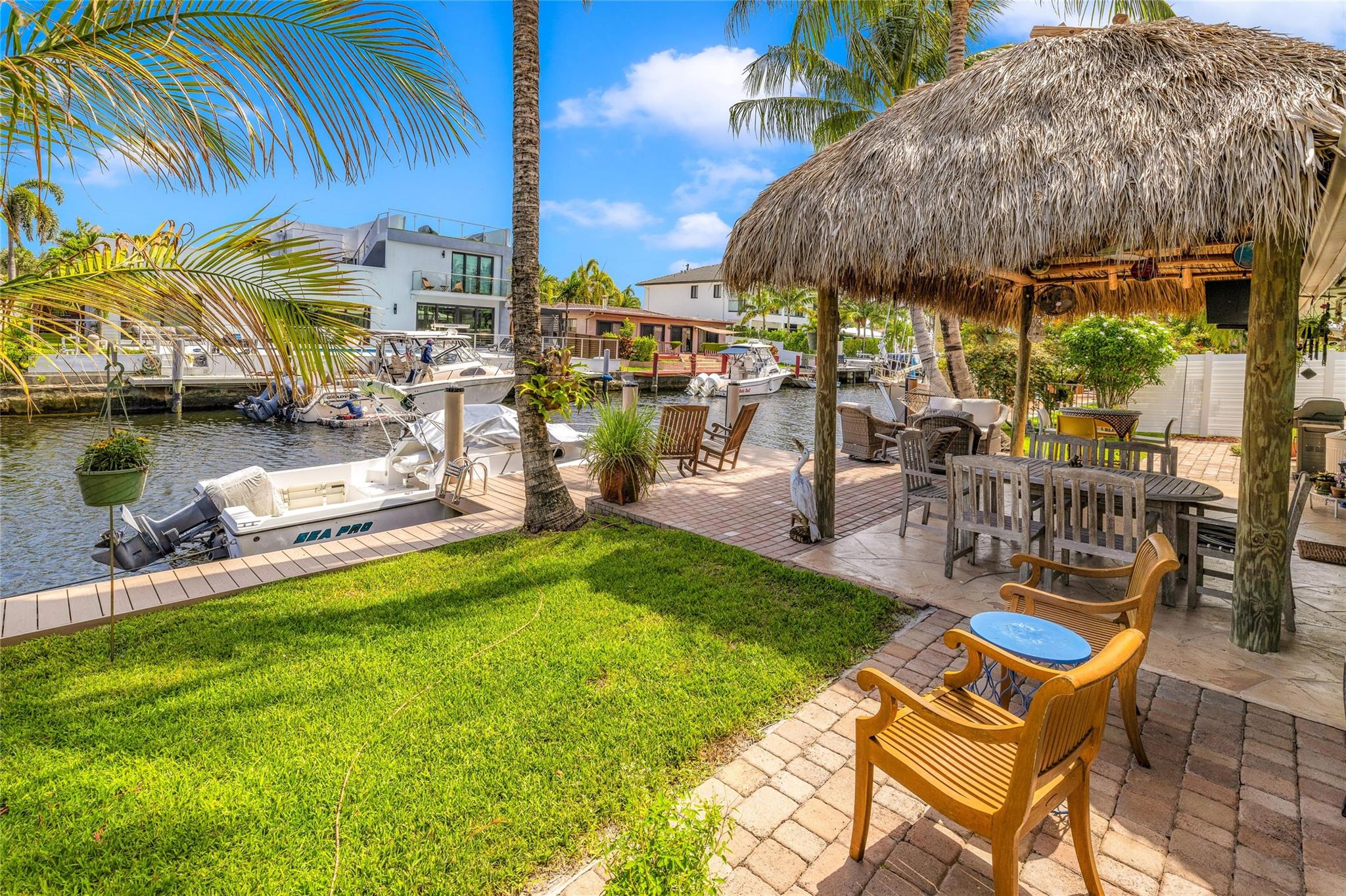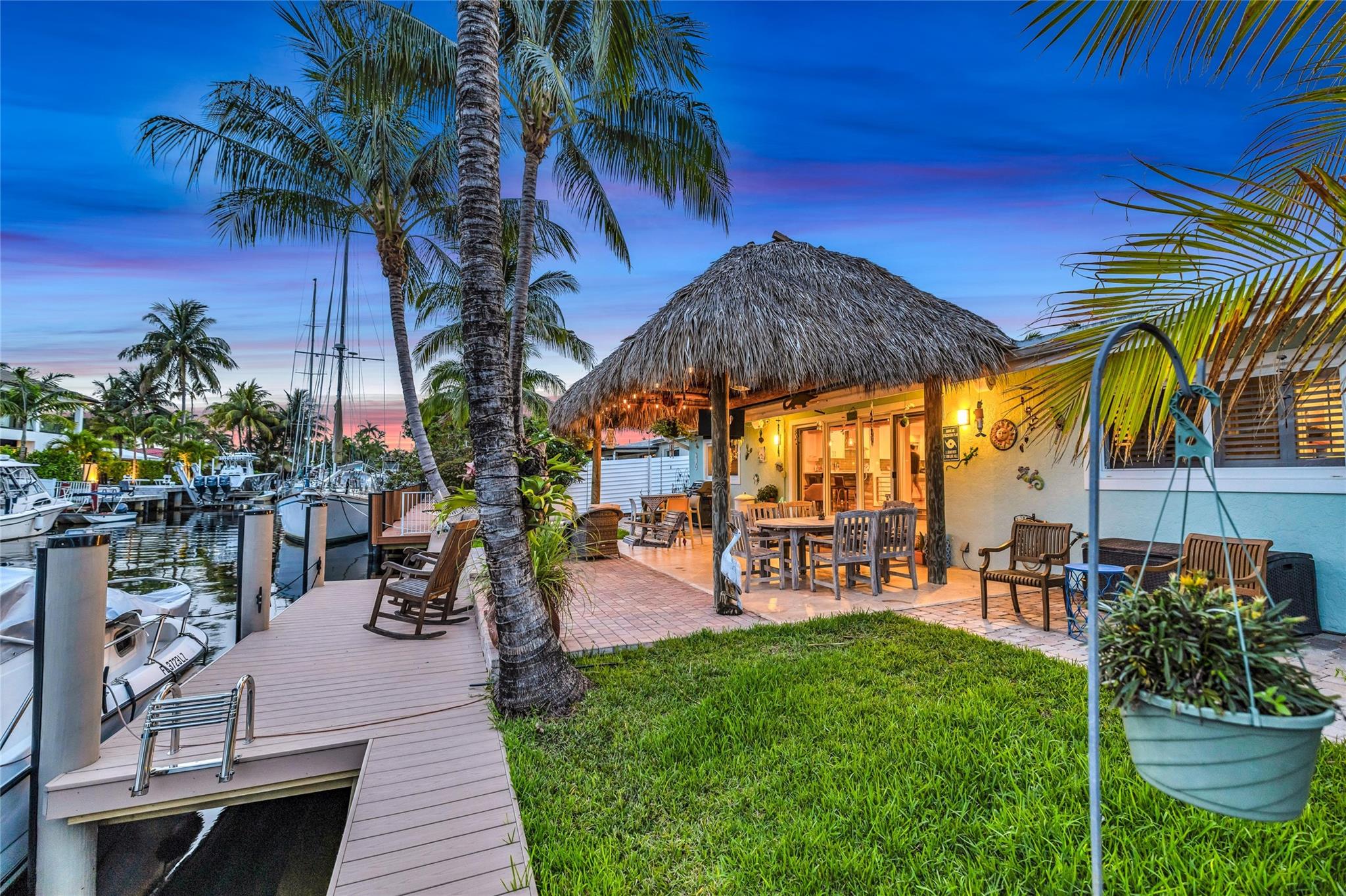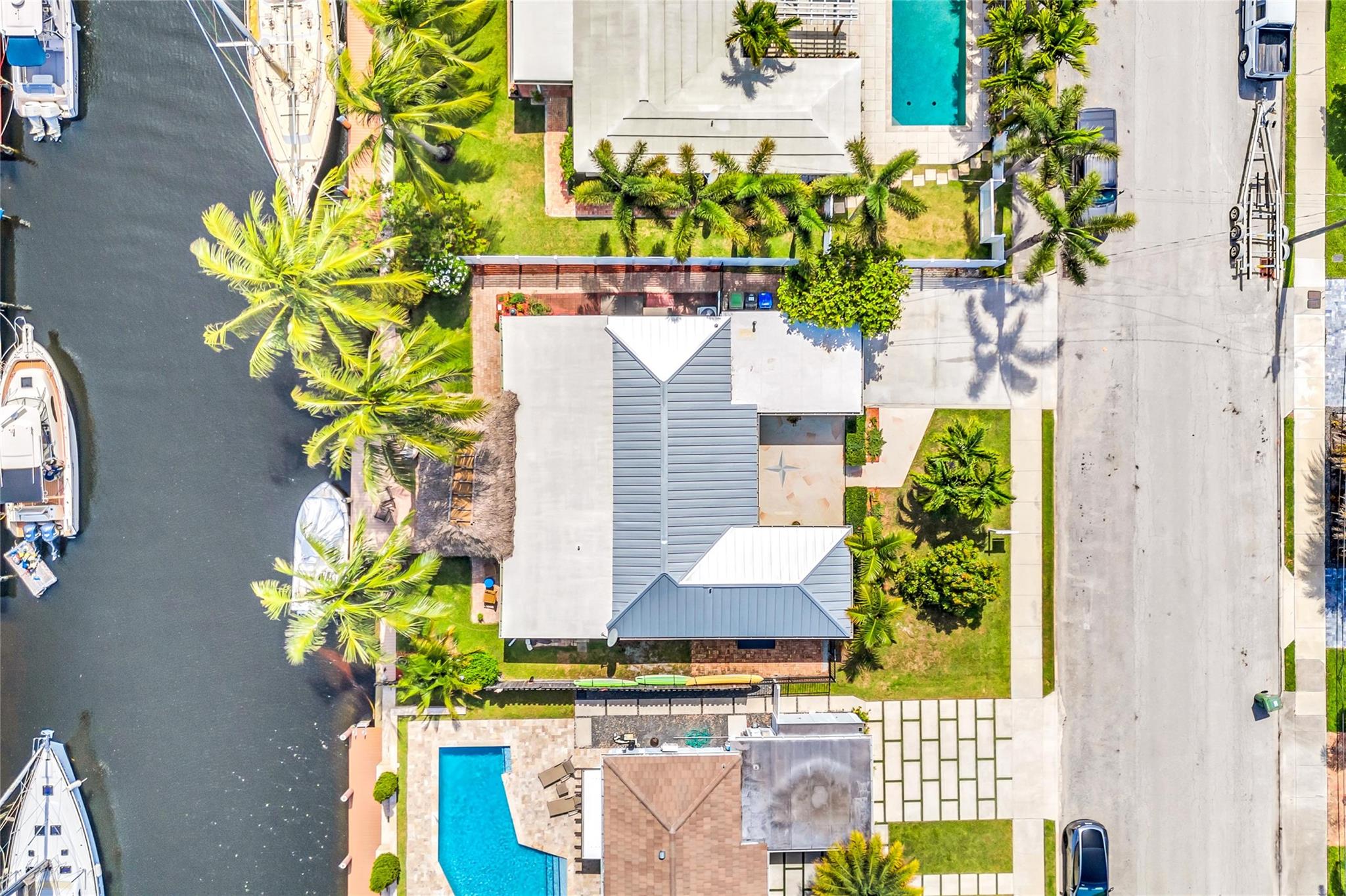 Beautifully remodeled mid-century home with 65 feet of unrestricted deepwater frontage—no fixed bridges to the ocean. Features a spacious open floor plan, gourmet kitchen, and luxurious primary suite with dual vanities. Upgrades include impact-resistant windows and doors, a new metal roof, premium flooring, and designer finishes throughout the property. Enjoy waterfront living with a tiki hut and private dock, just minutes to Las Olas, downtown, beaches, FLL Airport, and the hospital. Boater’s dream in an excellent Fort Lauderdale location! No HOA. MAJOR UPGRADES: Metal Roof 2021, Flat Roof 2017, HVAC 2016, Tiki Hut 2019, Fence 2019, All Impact Windows and Doors 2017, Concrete Driveway and Paver Front Patio 2019, Fence 2020, Natural Gas 2017.