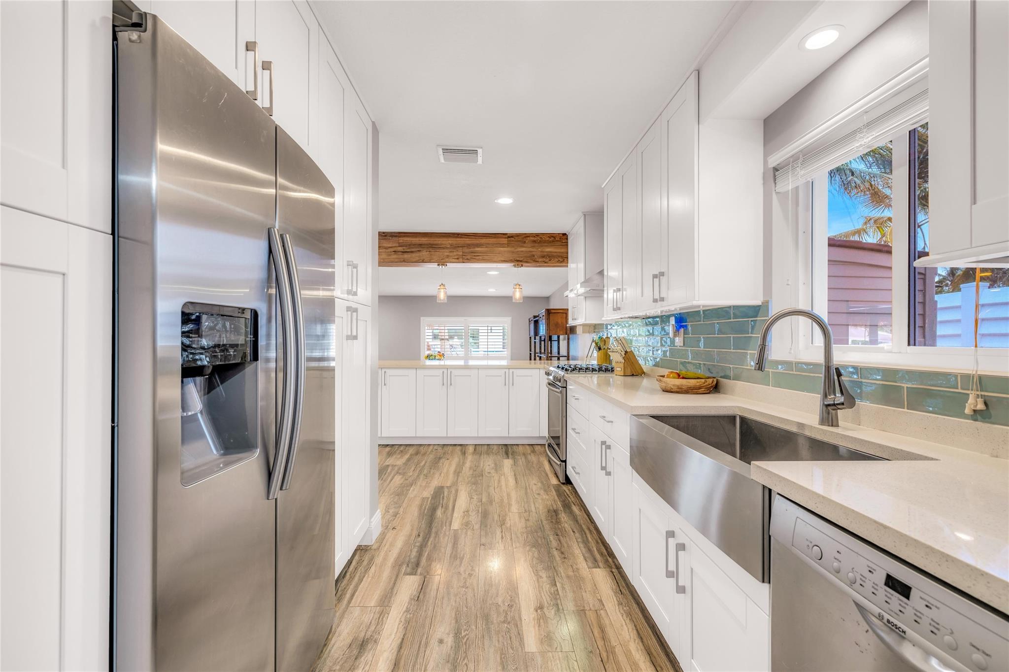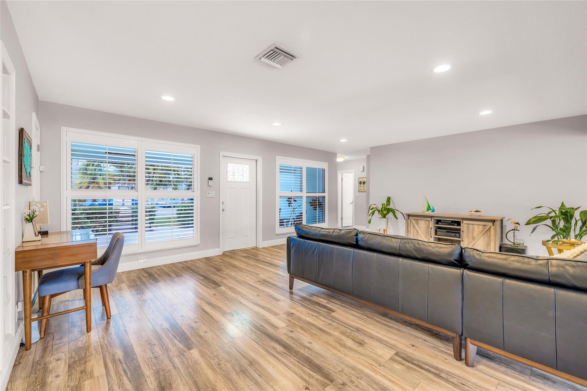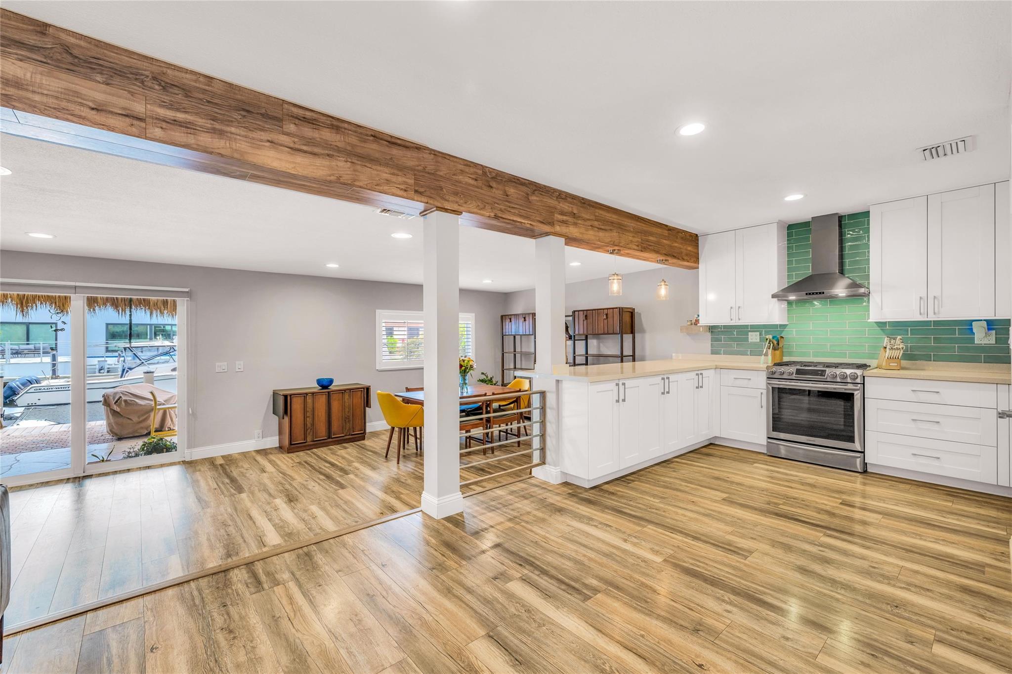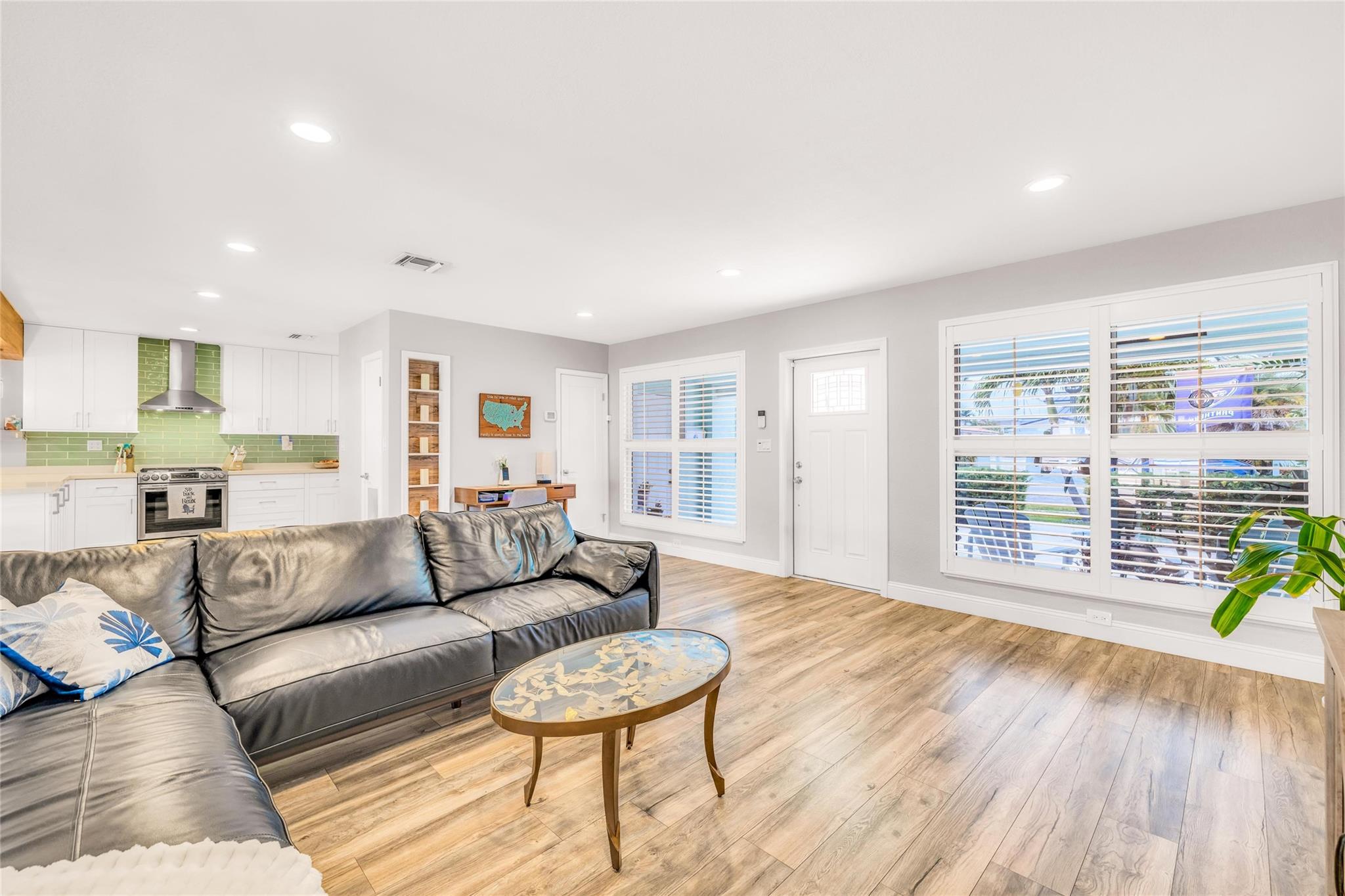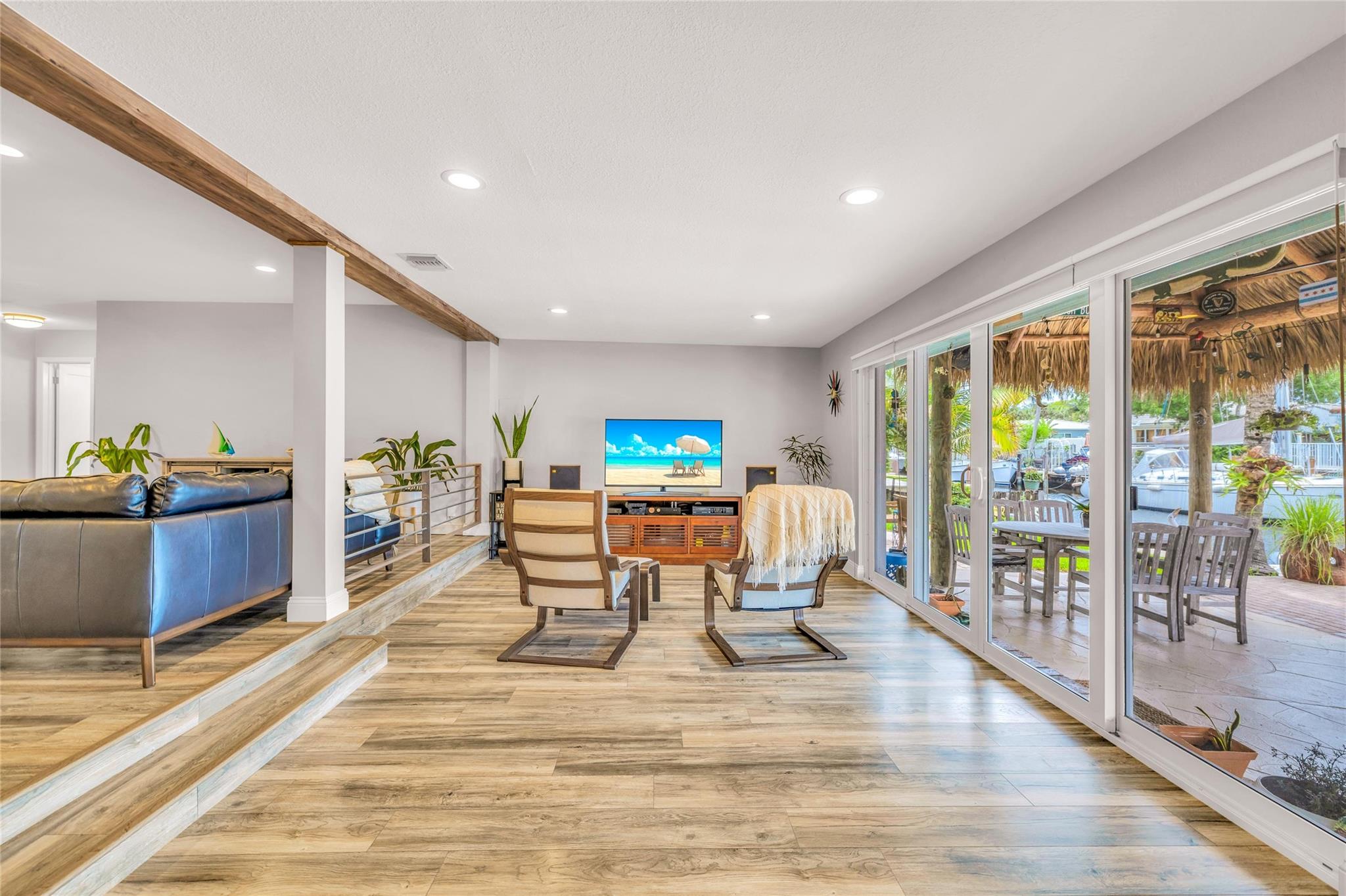 Beautifully remodeled mid-century home with 65 feet of unrestricted deepwater frontage—no fixed bridges to the ocean. Features a spacious open floor plan, gourmet kitchen, and luxurious primary suite with dual vanities. Upgrades include impact-resistant windows and doors, a new metal roof, premium flooring, and designer finishes throughout the property. Enjoy waterfront living with a tiki hut and private dock, just minutes to Las Olas, downtown, beaches, FLL Airport, and the hospital. Boater’s dream in an excellent Fort Lauderdale location! No HOA. MAJOR UPGRADES: Metal Roof 2021, Flat Roof 2017, HVAC 2016, Tiki Hut 2019, Fence 2019, All Impact Windows and Doors 2017, Concrete Driveway and Paver Front Patio 2019, Fence 2020, Natural Gas 2017.