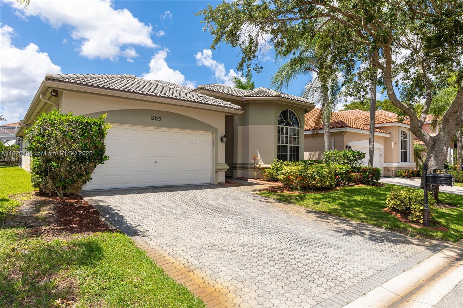 Gorgeous single-story Mediterranean-style pool home in the gated golf community of Eagle Trace. This 4BR/2BA residence features high volume ceilings, spacious living & family rooms, formal dining, and an open-concept kitchen with granite countertops, stainless steel appliances, and a breakfast area. Oversized master suite offers walk-in closets, dual vanities, spa tub, shower, and private water closet. Generously sized guest bedrooms offer ample closet space and privacy for family or visitors. Enjoy South Florida living year-round with your own screened-in patio, sparkling pool, and a covered outdoor area perfect for alfresco dining. Additional features include a laundry room & 2-car garage. Located in Eagle Trace a gated community offering 24/7 security, golf, tennis, playgrounds & more.