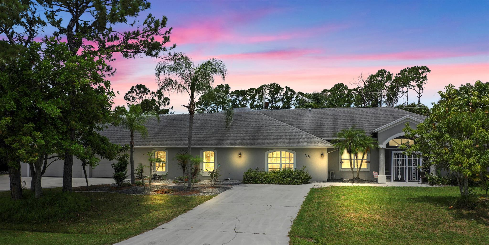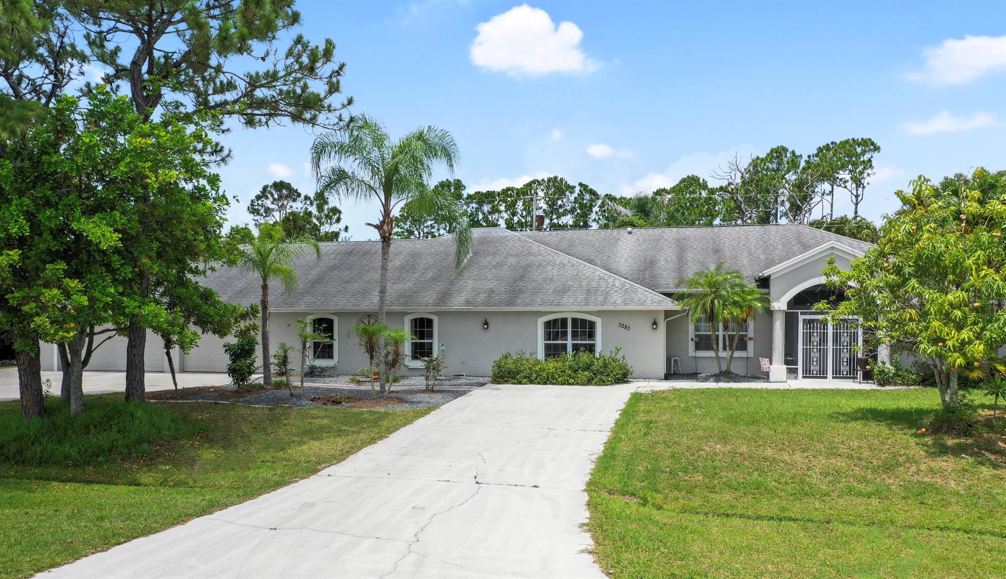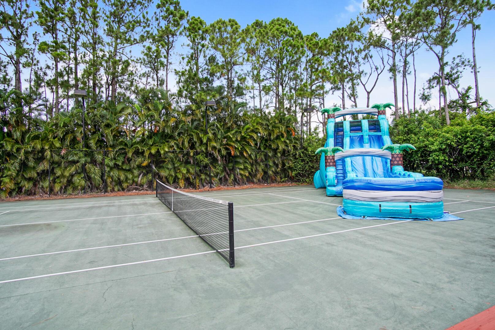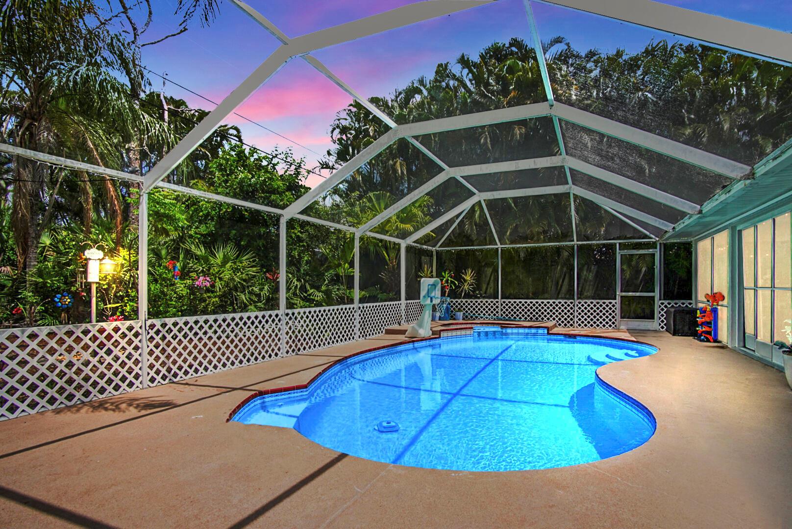 Welcome to your Oasis in Paradise! On almost one full acre sits this expansive 3700 sqft 4CG pool home ! This includes the master bedroom and updated bathroom, 1 ensuite, 3 LARGE bedrooms, and an indoor gym(6th bedroom). This home also features a formal dining, living, family, and sitting rooms. Indoor laundry with ample storage closets throughout. SS appliances, breakfast bar and pantry are great features of the kitchen. Screen enclosure covers the pool and deck with an additional patio behind the garage. Let's not forget the FULL SIZE tennis court, fully fenced and lighted. Friends and family can enjoy watching from the large viewing deck. The backyard also has a brick paver fire pit, multiple garden areas, a play-house and rose garden. Also has owned solar panels!Come see your new home