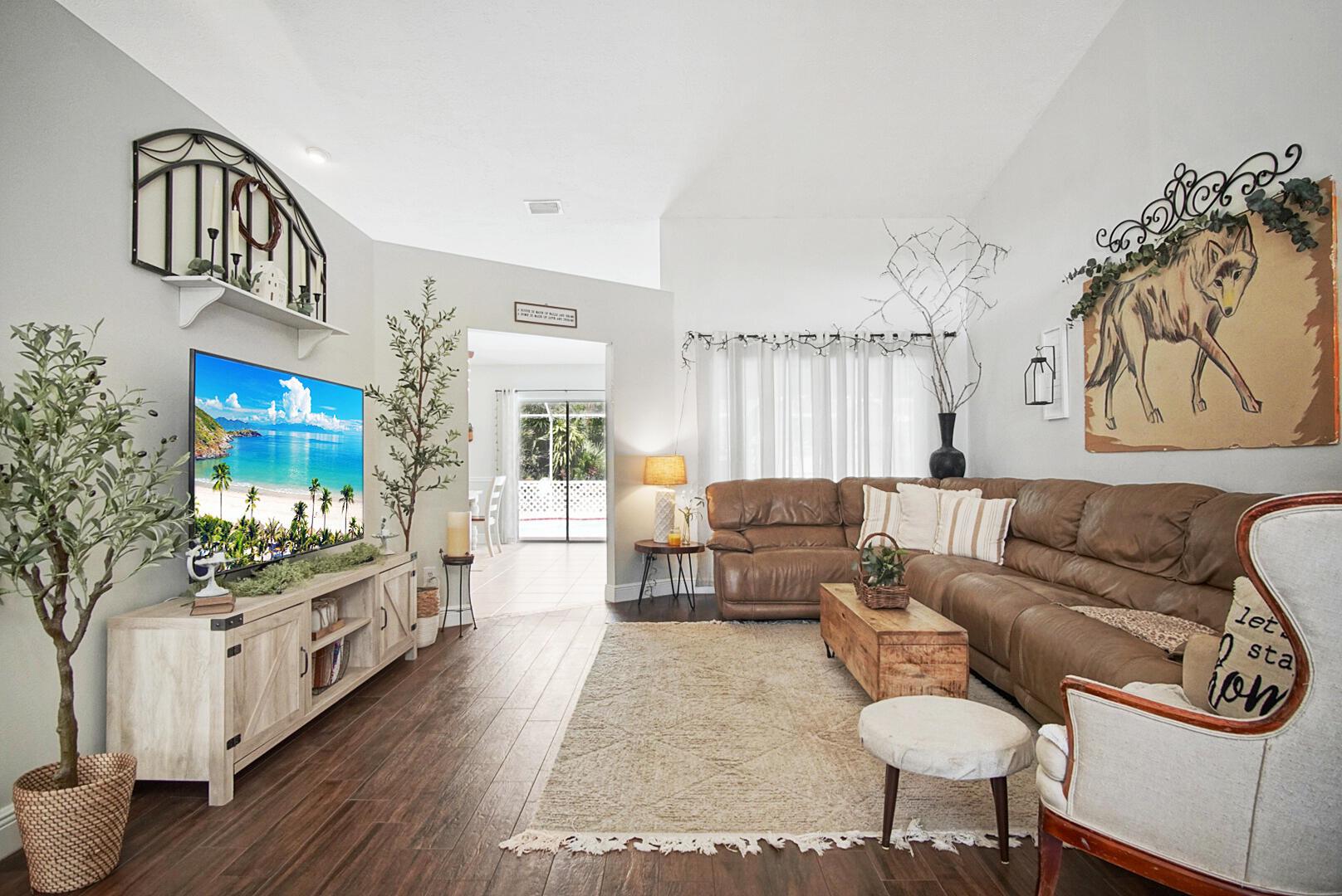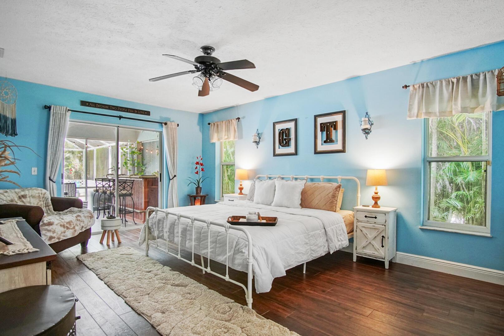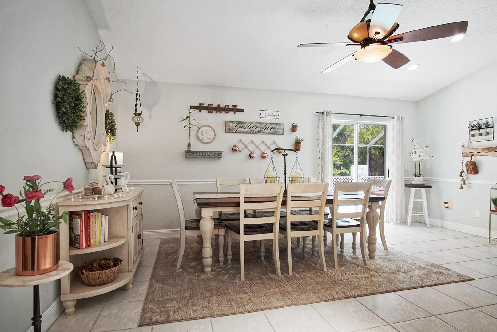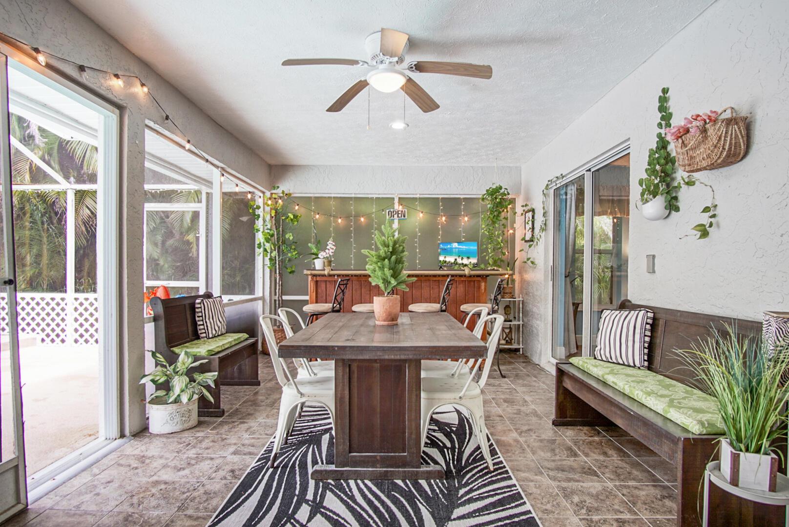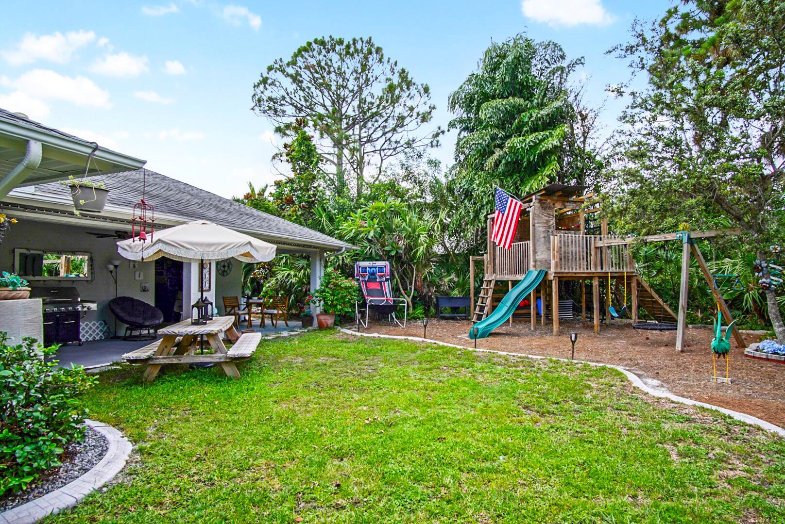 Welcome to your Oasis in Paradise! On almost one full acre sits this expansive 3700 sqft 4CG pool home ! This includes the master bedroom and updated bathroom, 1 ensuite, 3 LARGE bedrooms, and an indoor gym(6th bedroom). This home also features a formal dining, living, family, and sitting rooms. Indoor laundry with ample storage closets throughout. SS appliances, breakfast bar and pantry are great features of the kitchen. Screen enclosure covers the pool and deck with an additional patio behind the garage. Let's not forget the FULL SIZE tennis court, fully fenced and lighted. Friends and family can enjoy watching from the large viewing deck. The backyard also has a brick paver fire pit, multiple garden areas, a play-house and rose garden. Also has owned solar panels!Come see your new home