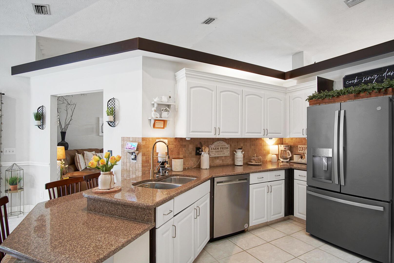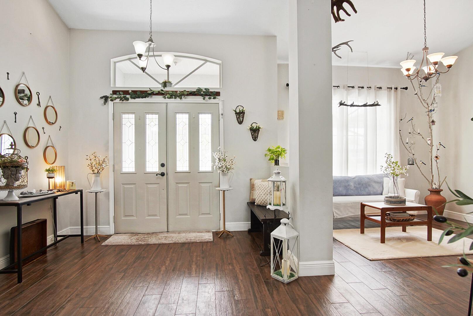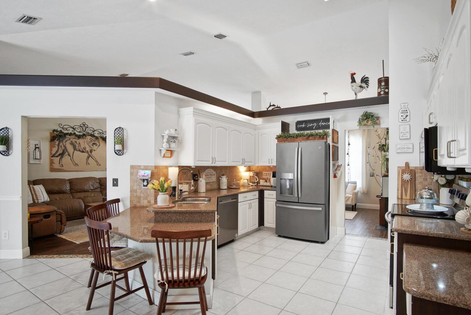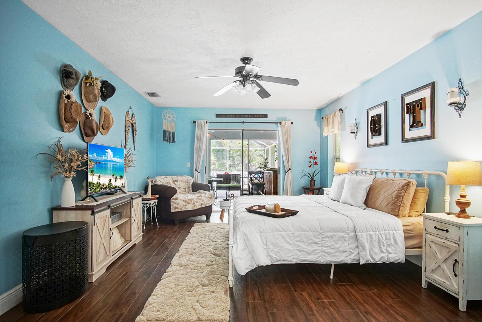 Welcome to your Oasis in Paradise! On almost one full acre sits this expansive 3700 sqft 4CG pool home ! This includes the master bedroom and updated bathroom, 1 ensuite, 3 LARGE bedrooms, and an indoor gym(6th bedroom). This home also features a formal dining, living, family, and sitting rooms. Indoor laundry with ample storage closets throughout. SS appliances, breakfast bar and pantry are great features of the kitchen. Screen enclosure covers the pool and deck with an additional patio behind the garage. Let's not forget the FULL SIZE tennis court, fully fenced and lighted. Friends and family can enjoy watching from the large viewing deck. The backyard also has a brick paver fire pit, multiple garden areas, a play-house and rose garden. Also has owned solar panels!Come see your new home