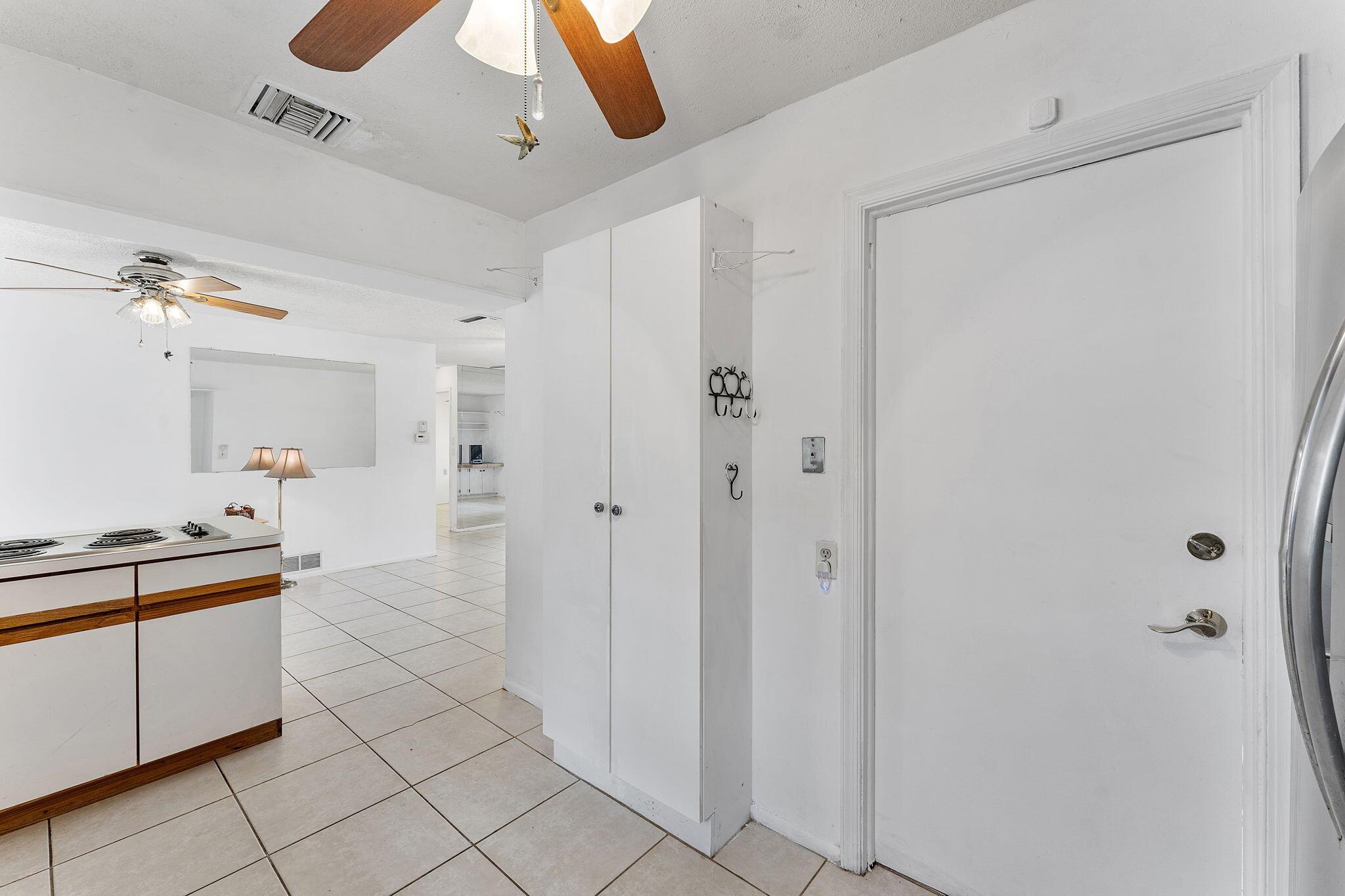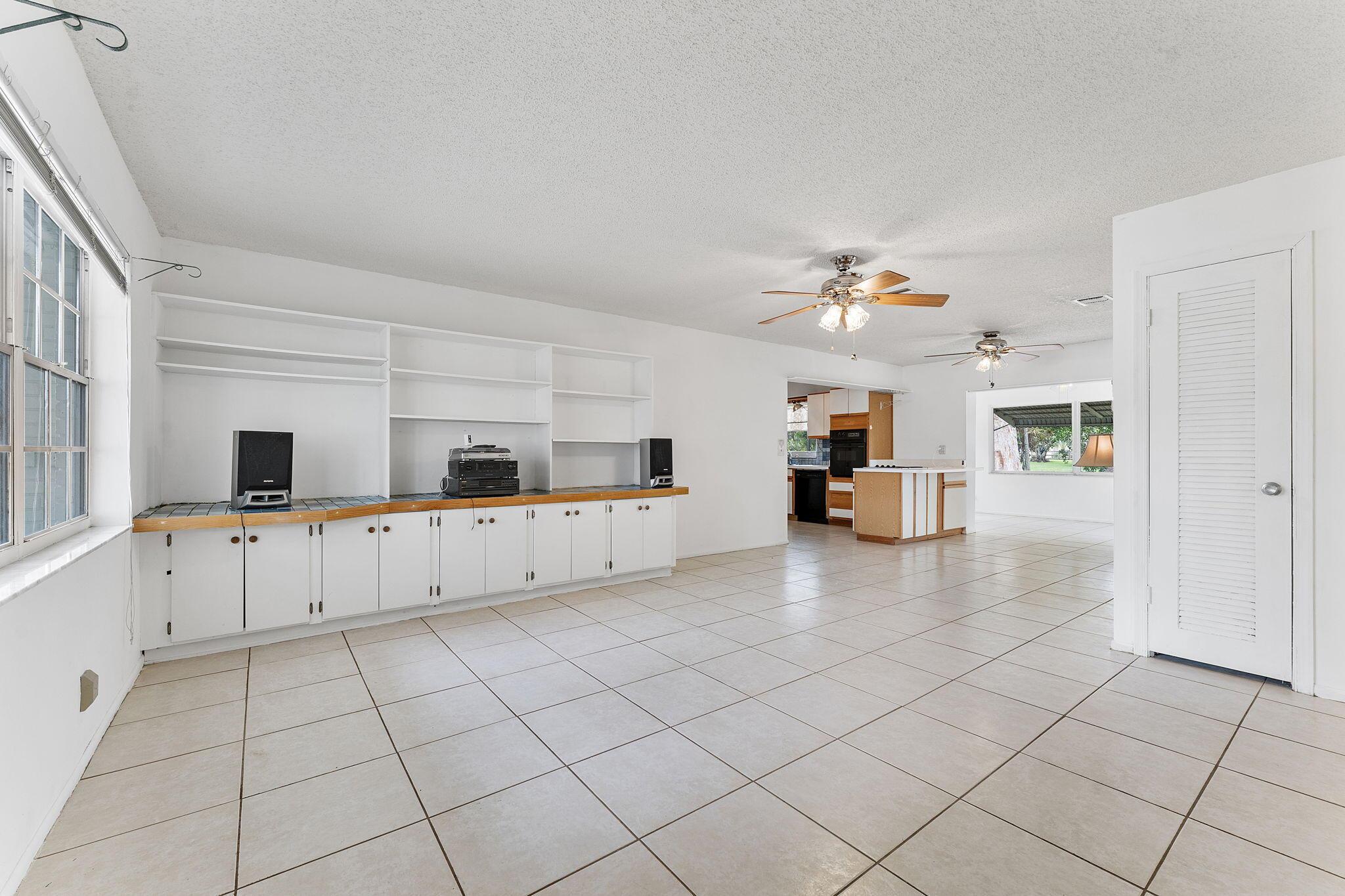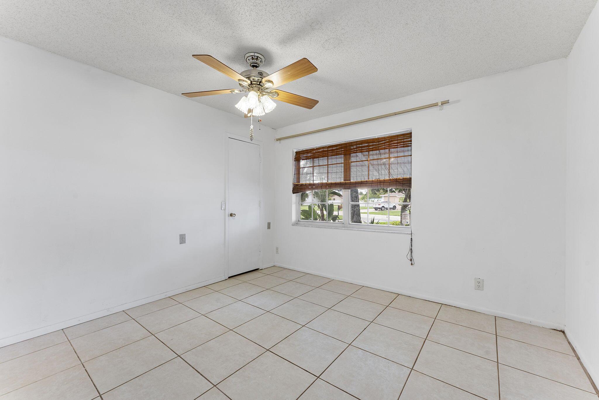 This 2-bedroom, 2-bathroom home is located on a waterfront lot in Boca Raton and offers good potential for buyers looking to customize. The home features an open floor plan with neutral tile flooring throughout. The kitchen has white cabinets with wood trim and adequate counter space for cooking. Multiple living areas provide flexibility for different uses, whether for family time or entertaining guests. Both bathrooms are functional, with the master bathroom including a walk-in shower with tile work, and the master bedroom has a walk-in closet for storage.