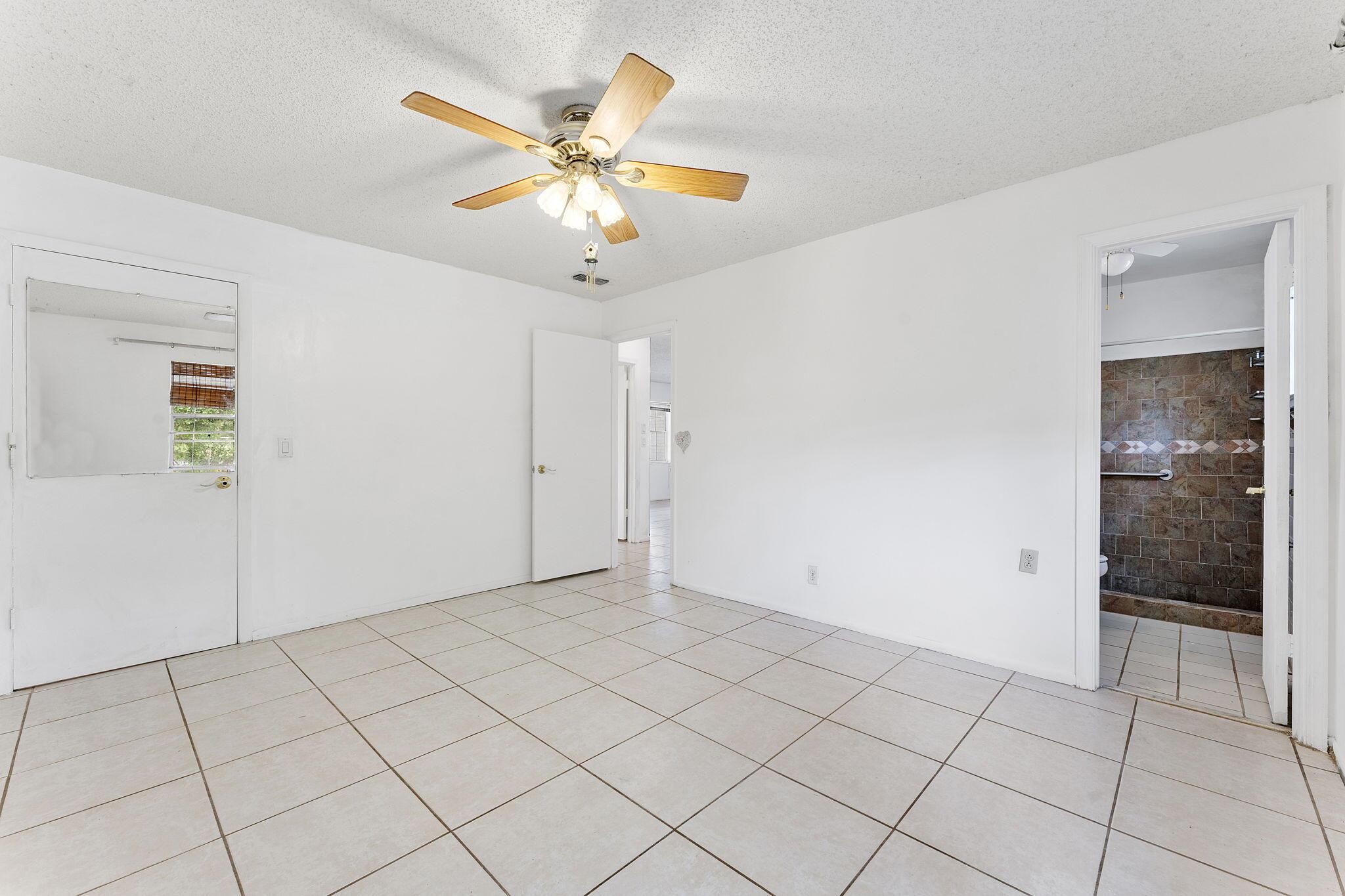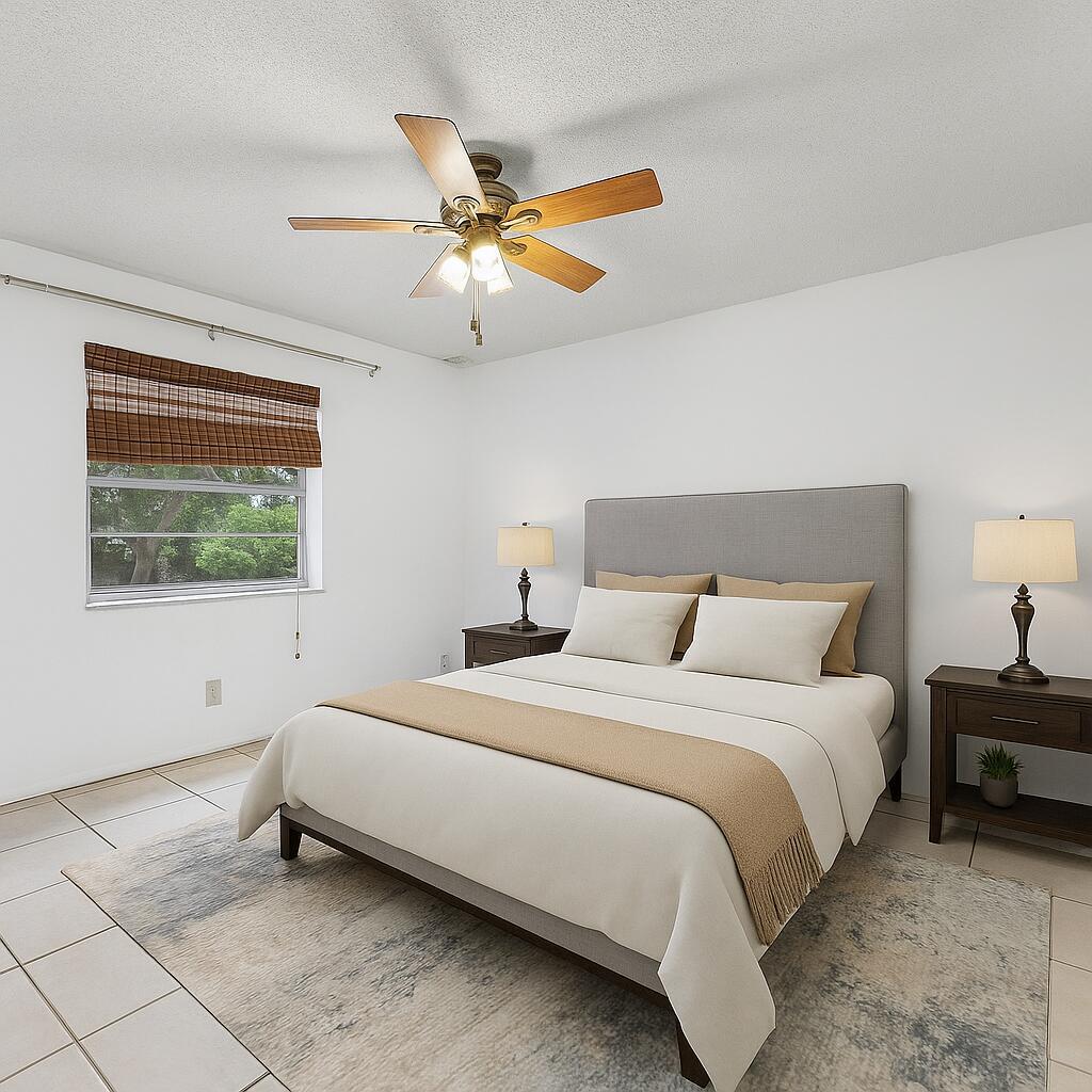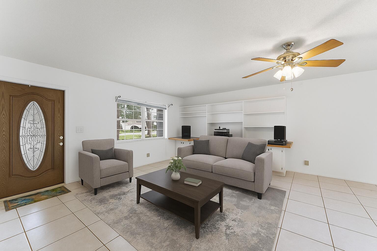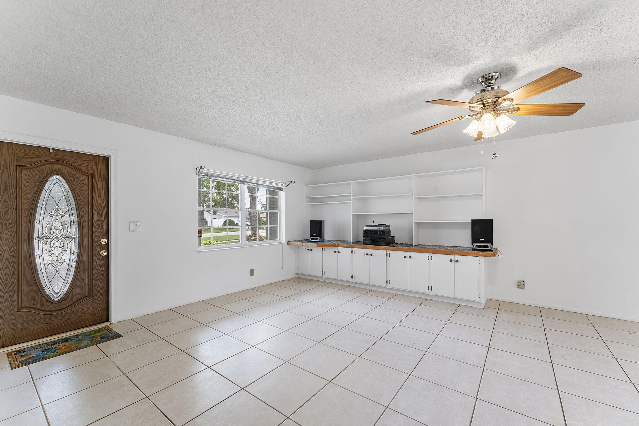 This 2-bedroom, 2-bathroom home is located on a waterfront lot in Boca Raton and offers good potential for buyers looking to customize. The home features an open floor plan with neutral tile flooring throughout. The kitchen has white cabinets with wood trim and adequate counter space for cooking. Multiple living areas provide flexibility for different uses, whether for family time or entertaining guests. Both bathrooms are functional, with the master bathroom including a walk-in shower with tile work, and the master bedroom has a walk-in closet for storage.