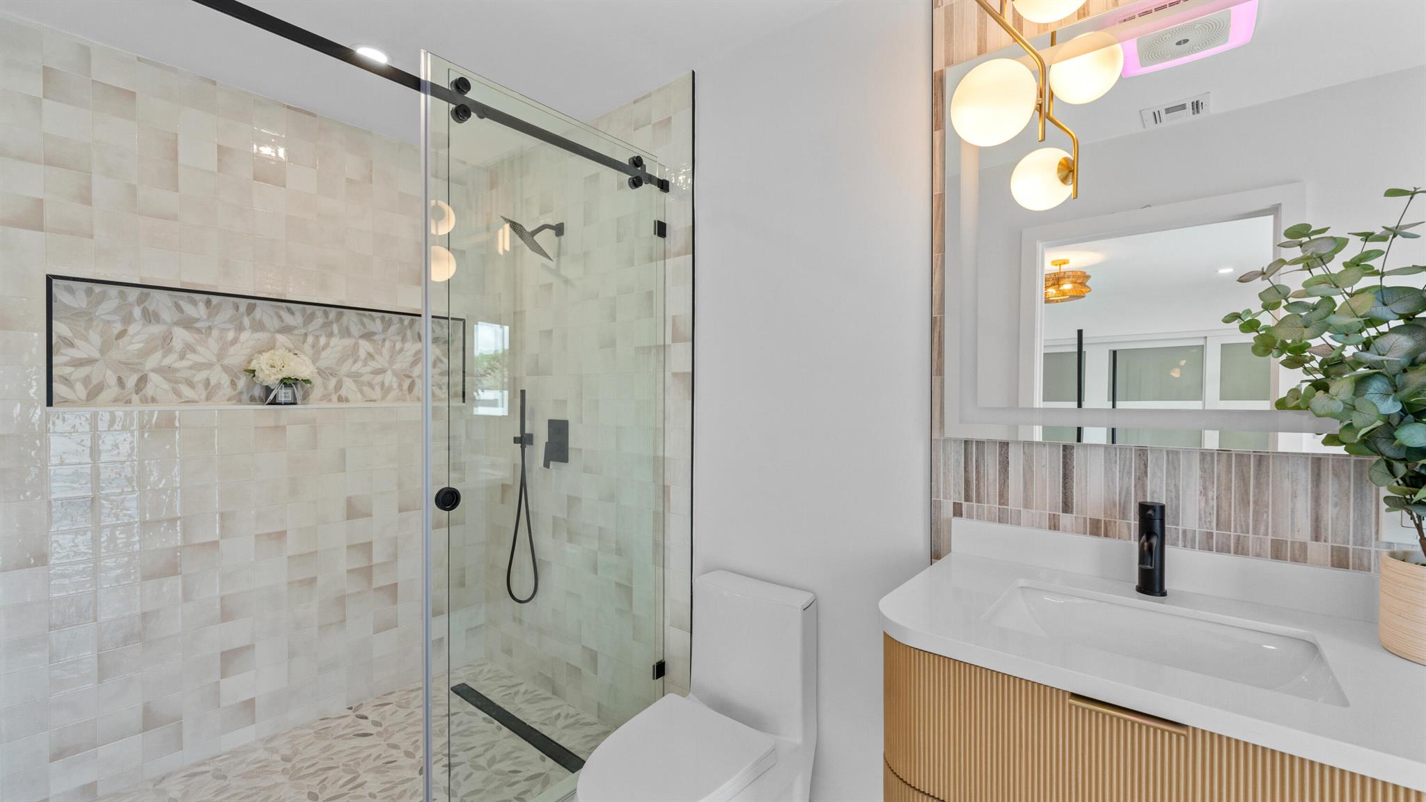 Welcome to this beautifully updated single-family home located in the highly sought-after Boca Madera community. This 3-bedroom, 2-bathroom home offers a spacious open floor plan with elegant porcelain plank tile flooring and an abundance of natural light throughout.The master suite is a true retreat, featuring a fully renovated bathroom with a modern vanity, luxurious marble flooring, and an oversized walk-in shower. The kitchen is both stylish and functional with custom oak cabinetry, quartz countertops that extend as a full backsplash, modern lighting, and brand new appliances.