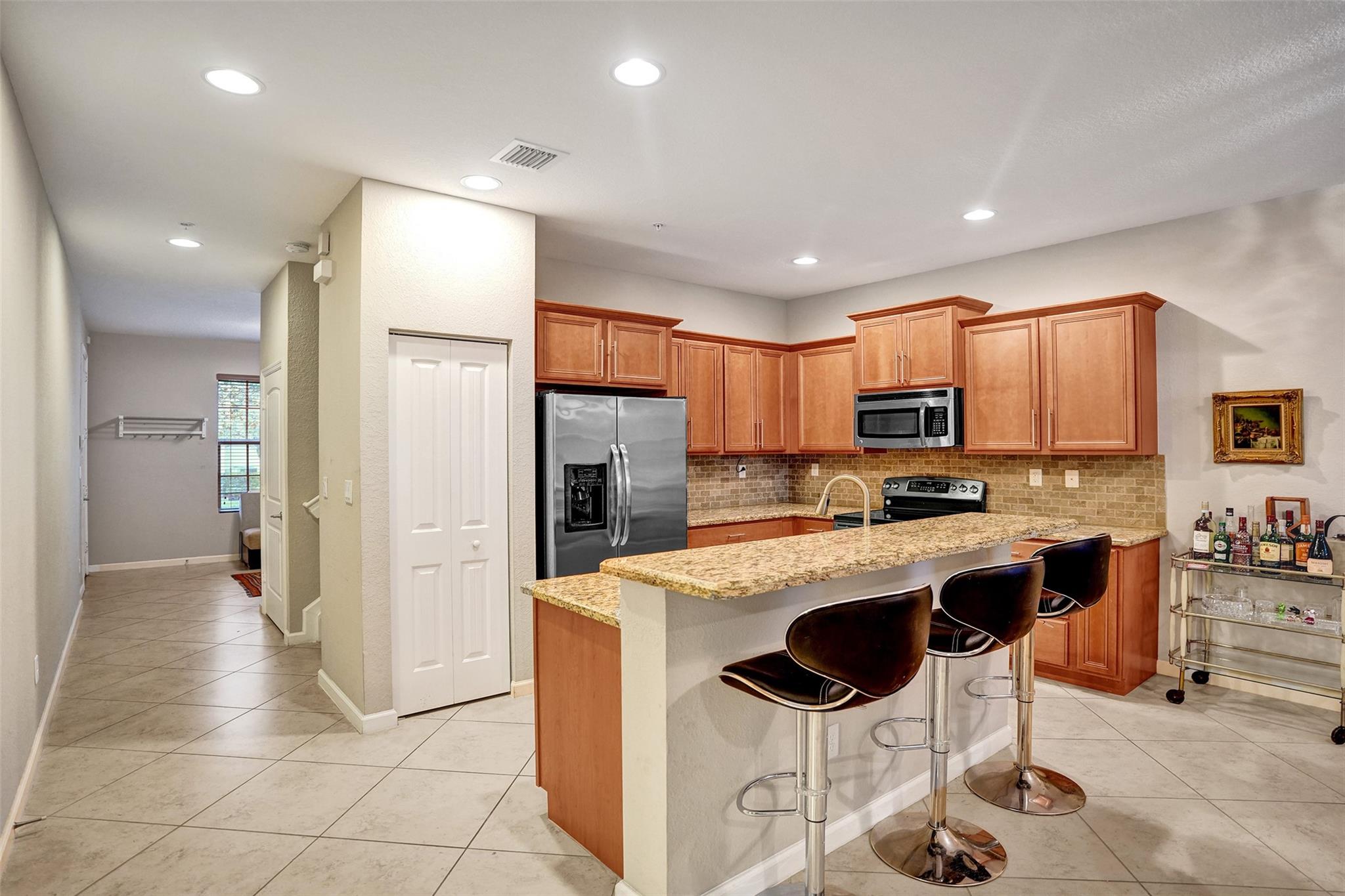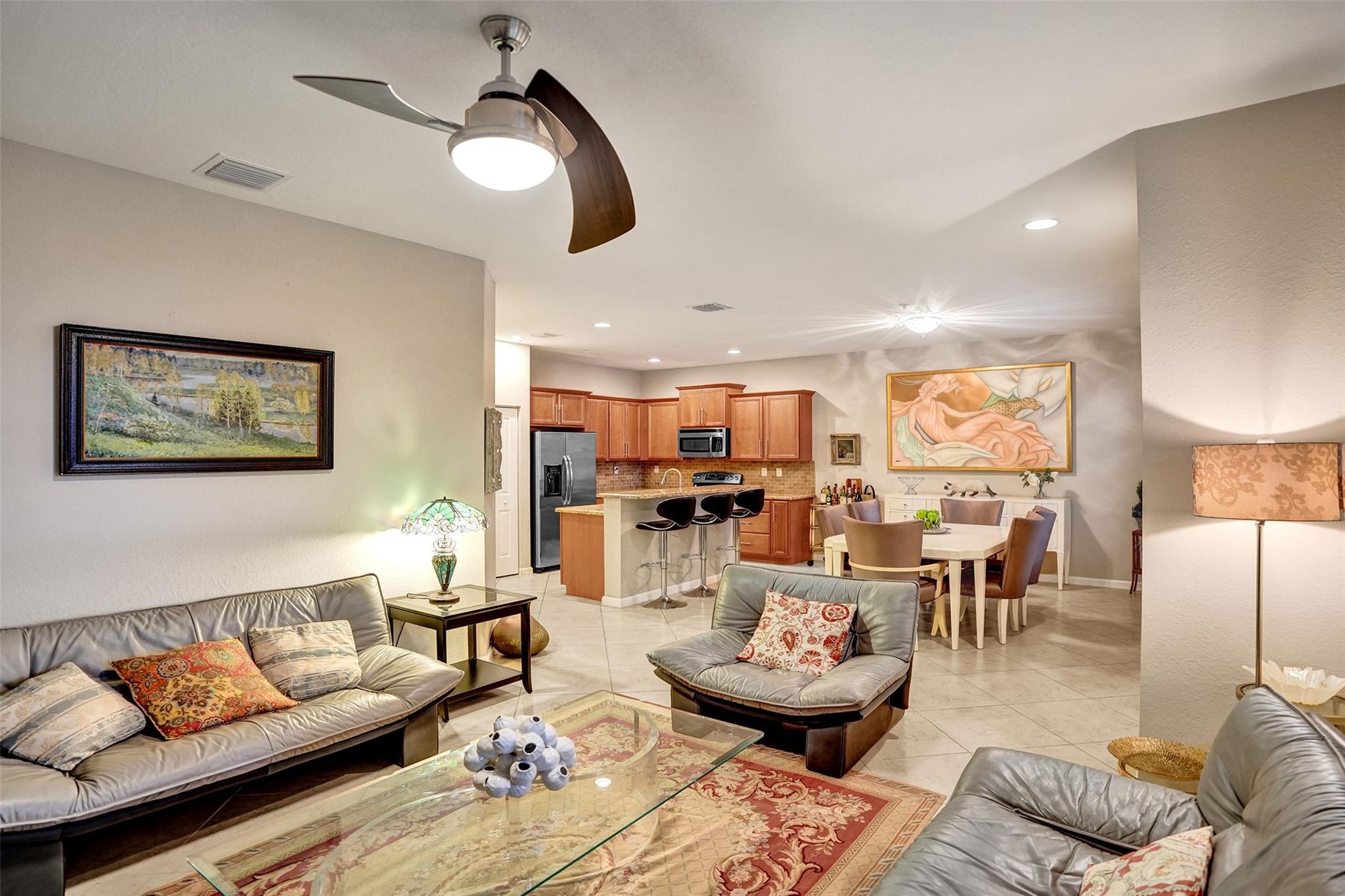 Spacious and modern, this 3-bedroom, 2.5-bath townhouse in East Pompano Beach offers over 2,000 square feet of comfortable living space, complete with a one-car garage. Built in 2014, the home features an open-concept layout that seamlessly connects the kitchen, dining area, and family room—perfect for both everyday living and entertaining. All three bedrooms are generously sized, including an impressive 17' x 17' primary suite with two large closets. Enjoy peace of mind with full hurricane-impact windows and doors. Located in the pet-friendly Orchid Grove community, residents enjoy access to a beautiful boardwalk with walking trails, a resort-style pool, and a fully equipped fitness center. HOA fees cover cable, internet, and ADT security for added value and convenience.