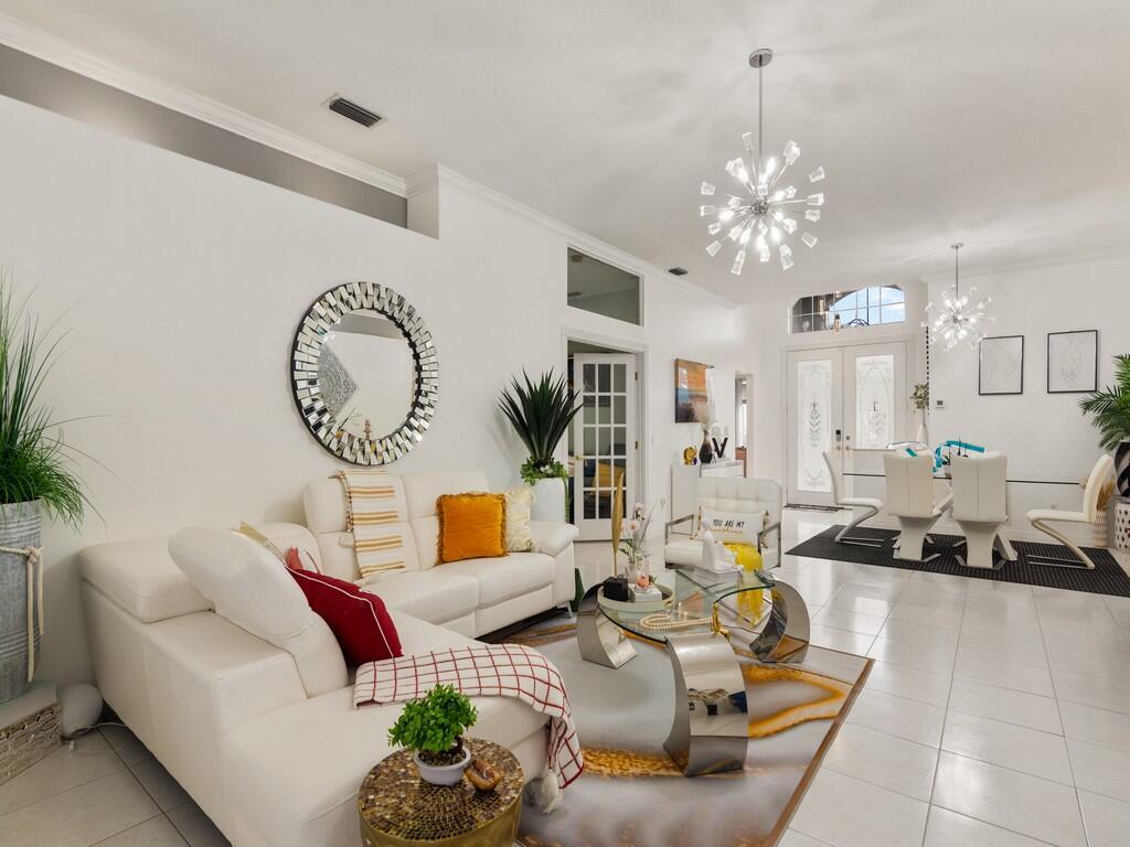 Beautifully remodeled lakefront home in the highly desirable 55+ community of Kings Isle. Features 2BR, 2BA, Den that can easily be converted into a 3rd bedroom and a 2-car garage. Upgrades include Kitchen with quartz countertops, white cabinetry, and stainless-steel appliances. Crown molding throughout, fresh interior/exterior paint, tile flooring throughout, designer lighting fixtures throughout, California closet in master bedroom, Accordion Hurricane shutters, Newer top of the line washer and dryer, Brand New Water Heater and A/C 2019.Relax and take in the serene lake views from the extended enclosed lanai-perfect for morning coffee or evening sunsets. Kings Isle offers resort-style amenities, gated security, and centrally located near shopping, dining, golf, and medical facilities.