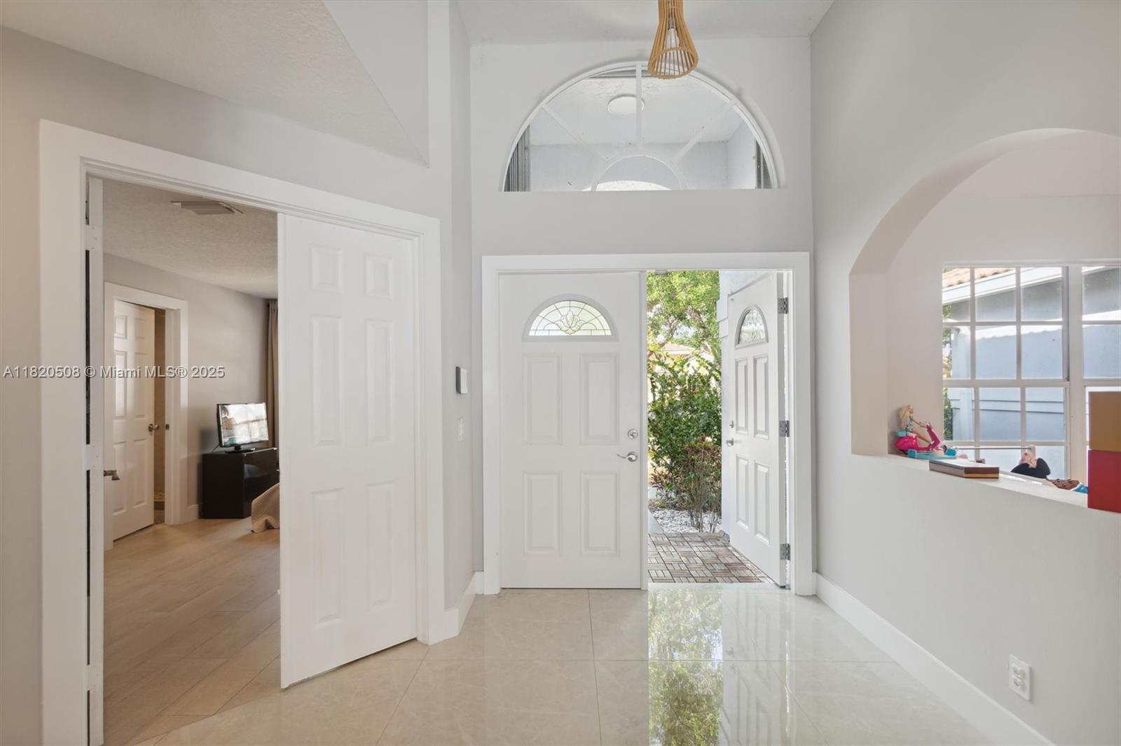 Experience living in this exquisite renovated ONE-STORY home featuring 5 beds, 3.5 baths & open living areas with HIGH ceilings in Weston’s prestigious North Lake Community. The expansive open floor plan features modern tile floors, family room, living & dining rooms offering plenty of space for entertainment. Boasting stunning eat-in kitchen w/ S.S appliances & granite countertops. Step in the master suite accompanied by a full en-suite bath & walk-in closets w/ tub/shower. Across, 2 beds await w/ 2 1/2 bath & the 5th beds is perfect as an office. Step outside to your cozy fenced, partially roofed patio, tiled w/ artificial grass, POOL, Cabana BATH & RENOVATED DECK ideal for outdoor relaxation. Pool-fenced. Steps away from the CUL-DE-SAC.