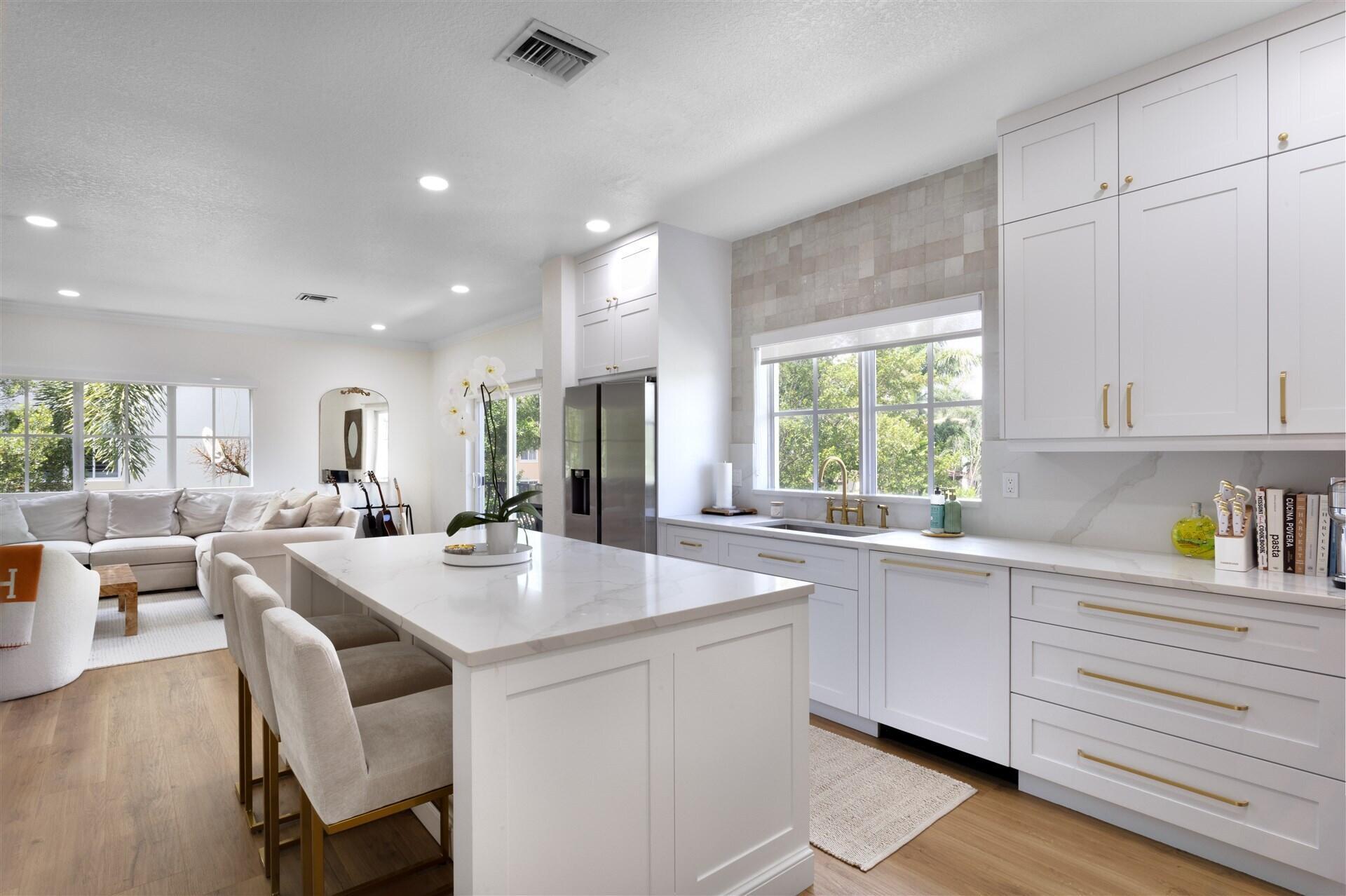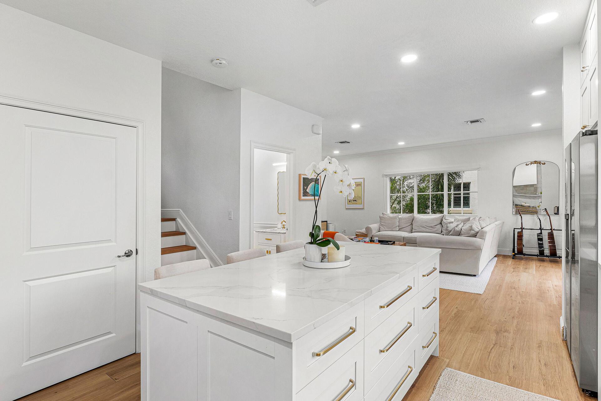 Reimagined Library Commons Villa (detached residence) sited in one of downtown Boca Raton's sought-after enclaves. Enjoy three levels of totally remodeled interiors with 3-bedroom suites, gourmet island kitchen, light-filled interiors, and two-bay garage. The residence includes infrastructure for a multi-level elevator for easy future installation, currently utilized as a spacious pantry and two storage closets. Outdoor entertaining is enjoyed at the private brick-lined patio. Library Commons offers a community pool, and a short stroll to the Brightline, new proposed Boca Raton City Centre, and Mizner Park. Shown by appointment only.