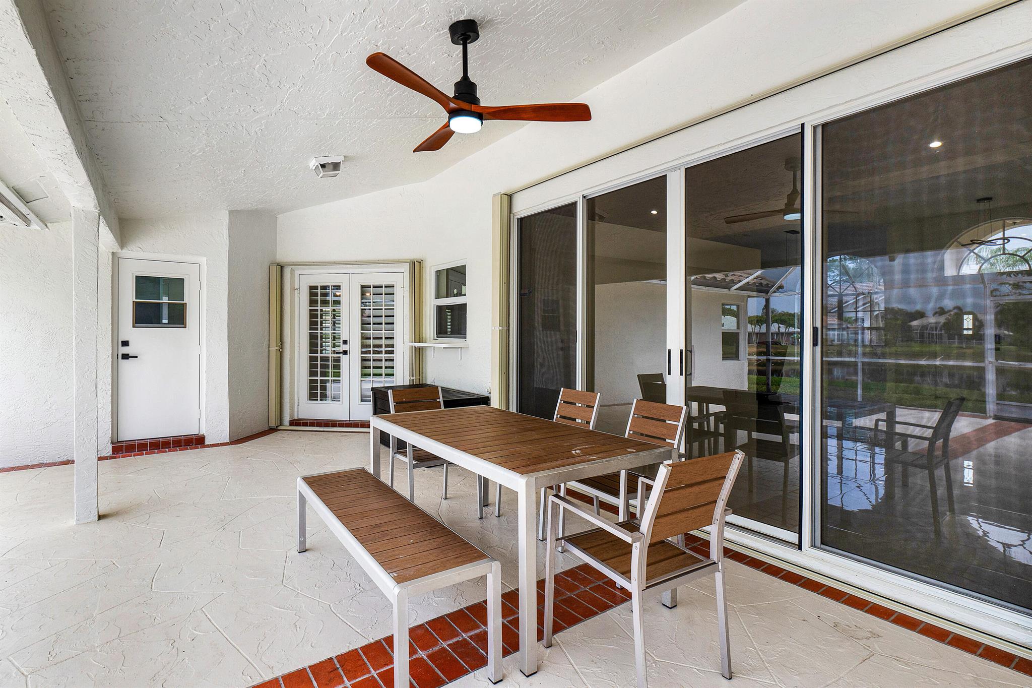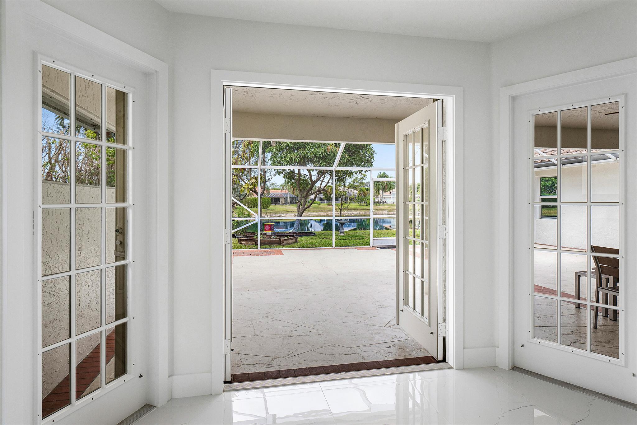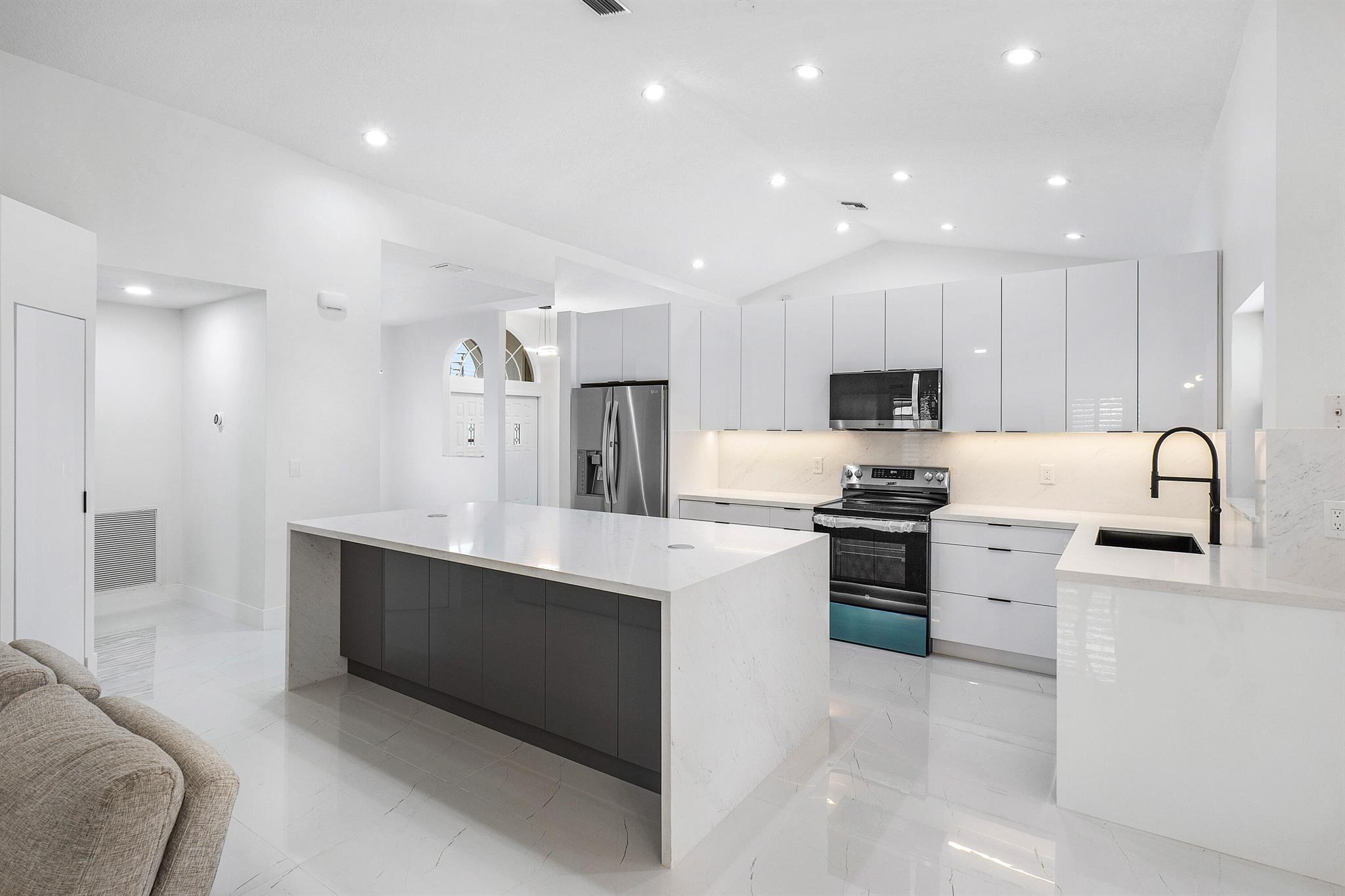 Newly renovated lakefront home in sought-after Cordova Estates of Mission Bay. Set on a 0.25-acre east-facing lot with expansive lake views, this 4-bed 2.5-bath, 2,561 sq ft one-floor home blends modern luxury and contemporary finishes with over $150,000 in high-end upgrades. The oversized screened-in patio is perfect for relaxing or entertaining, complemented by a beautifully landscaped backyard with room for a pool (owner has pool specs priced). The home features an open layout, imported porcelain tile throughout, high ceilings a brand-new kitchen with custom cabinetry, a waterfall island, stainless steel appliances, under-cabinet LED lighting, a custom pantry, and recessed lighting.