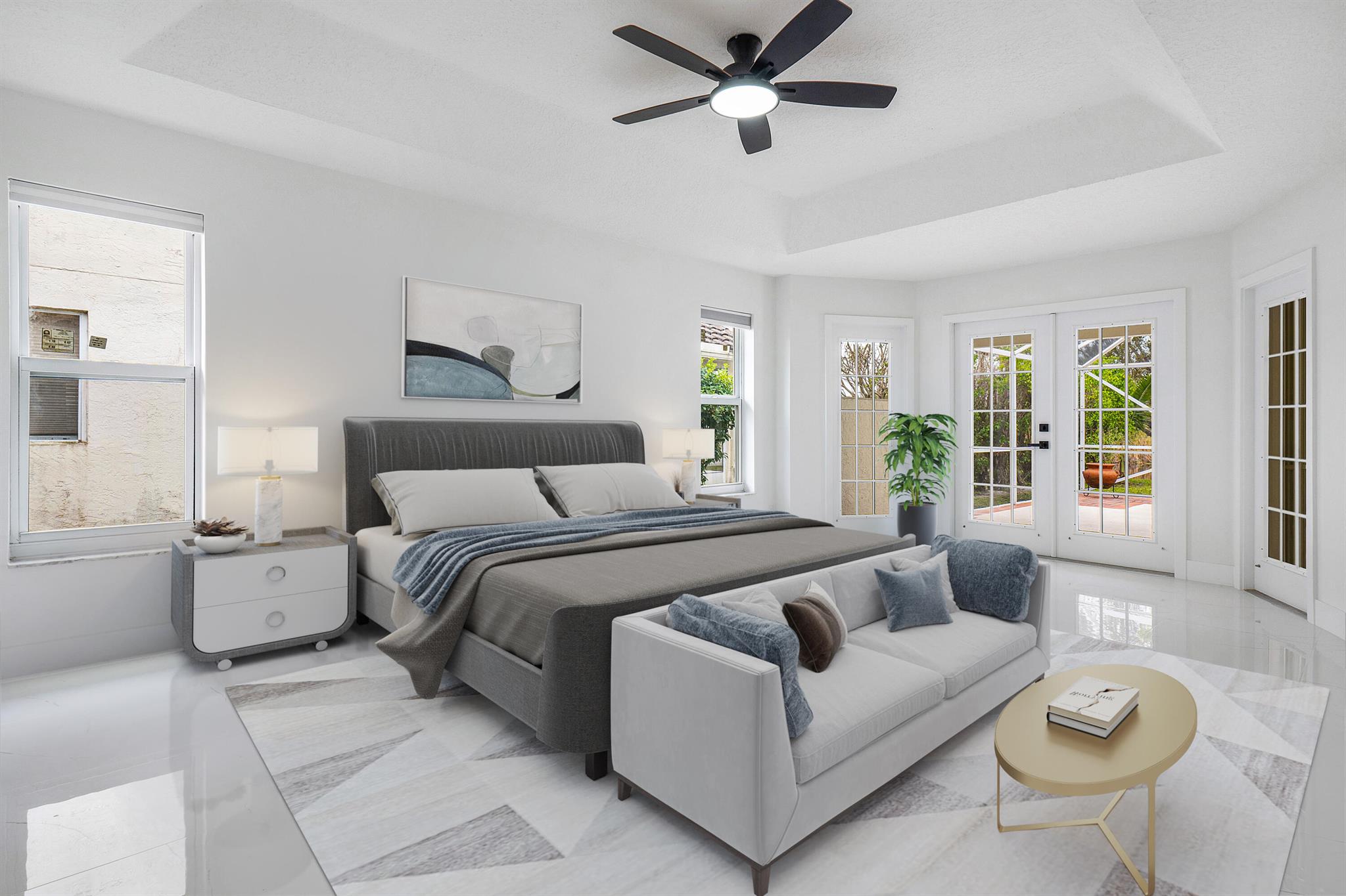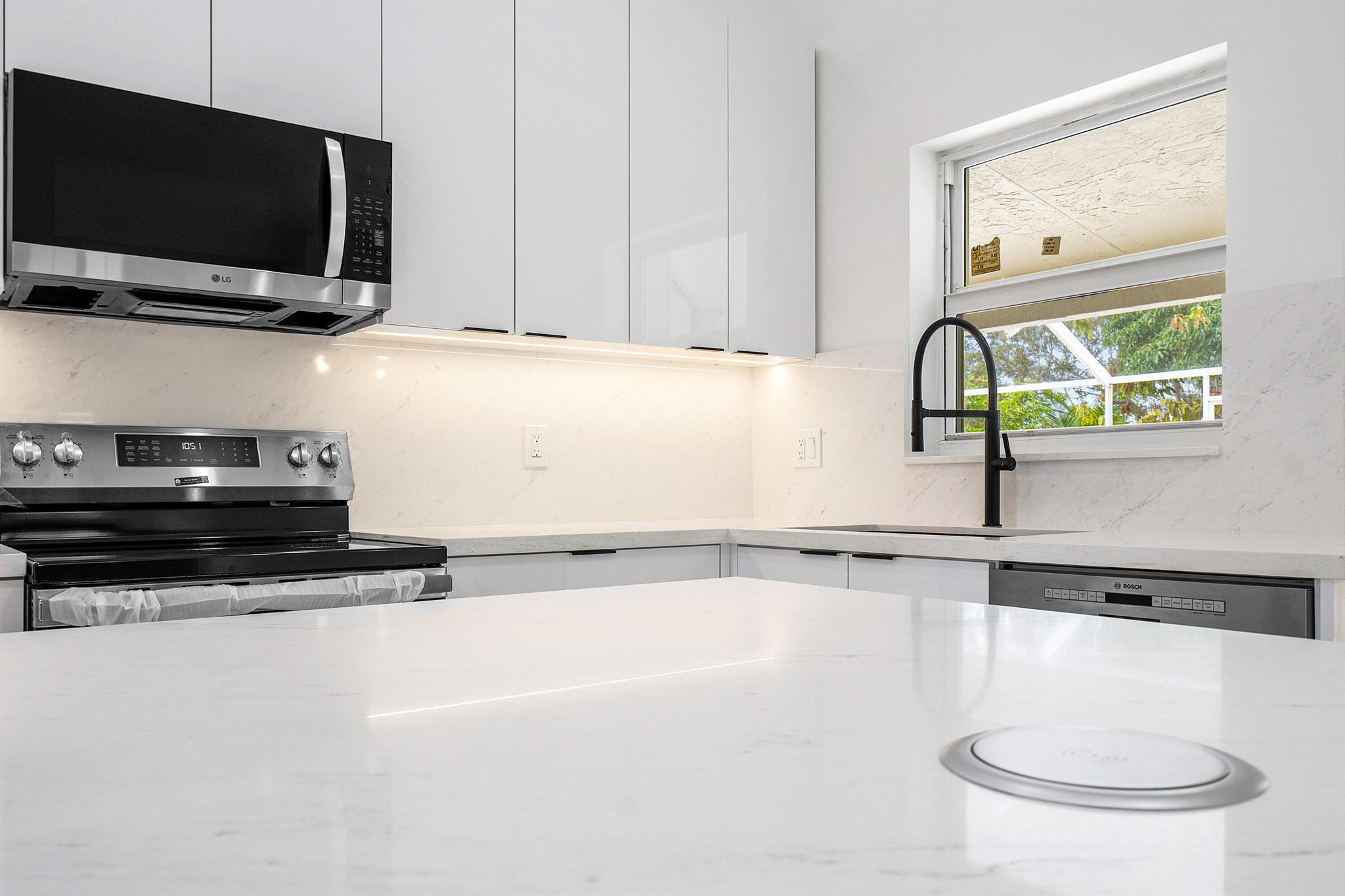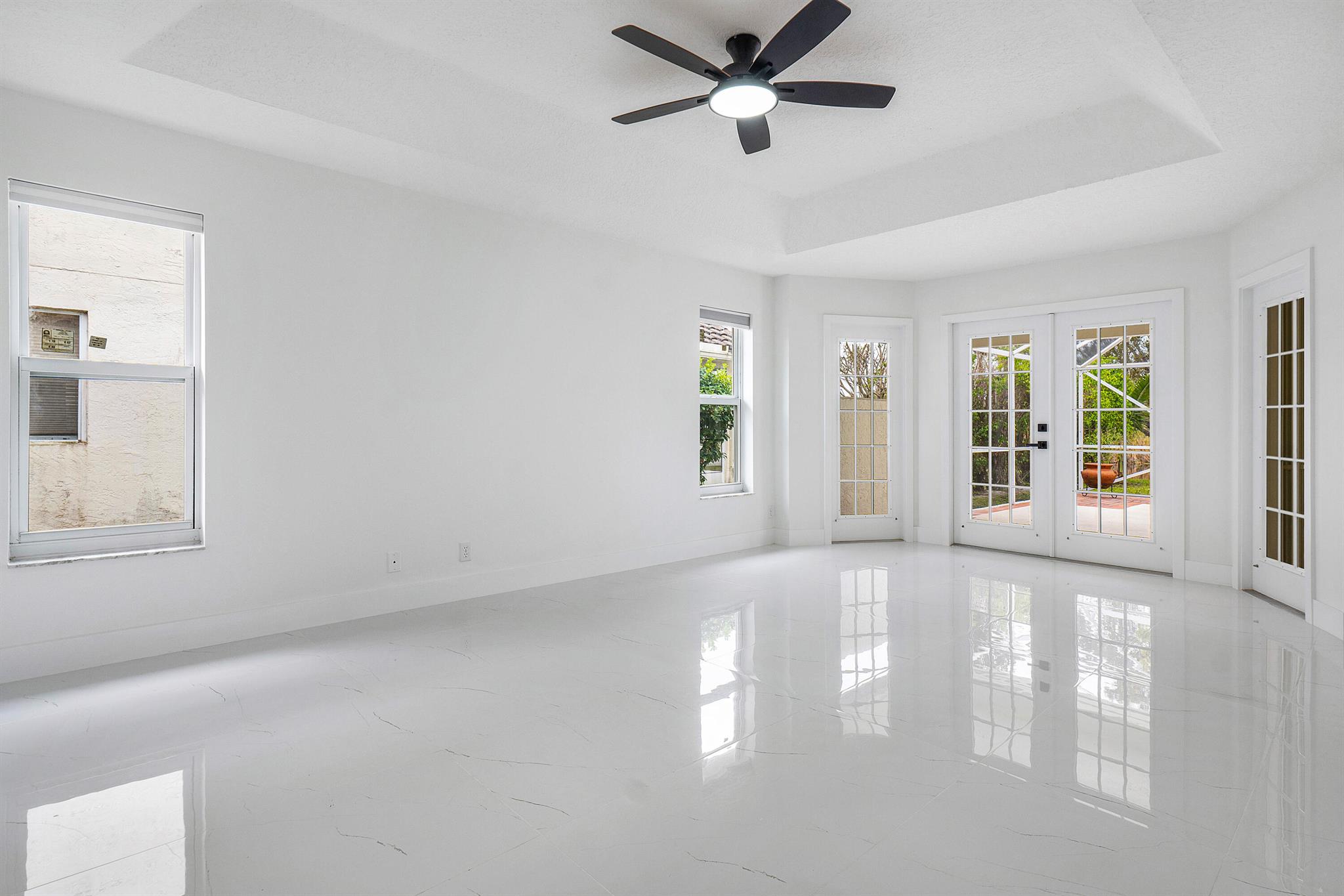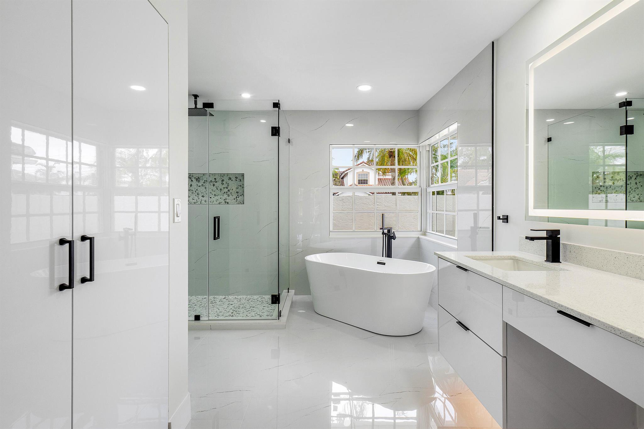 Newly renovated lakefront home in sought-after Cordova Estates of Mission Bay. Set on a 0.25-acre east-facing lot with expansive lake views, this 4-bed 2.5-bath, 2,561 sq ft one-floor home blends modern luxury and contemporary finishes with over $150,000 in high-end upgrades. The oversized screened-in patio is perfect for relaxing or entertaining, complemented by a beautifully landscaped backyard with room for a pool (owner has pool specs priced). The home features an open layout, imported porcelain tile throughout, high ceilings a brand-new kitchen with custom cabinetry, a waterfall island, stainless steel appliances, under-cabinet LED lighting, a custom pantry, and recessed lighting.