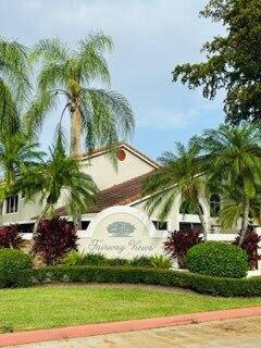 Beautifully updated villa in Fairway Views! Featuring 2 bedrooms + den (optional 3rd bedroom), 2 baths, and a split floor plan for privacy. The primary suite offers a walk-in closet and direct access to the enclosed patio. The open kitchen boasts stainless steel appliances, abundant cabinets, and plenty of counter space. Enjoy vaulted ceilings, porcelain tile in main areas, laminate in bedrooms, accordion hurricane shutters, 1-car garage, and NEW A/C. Relax on the enclosed patio with backyard views. Resort-style community amenities include heated pool, clubhouse, walking/biking paths, and lush landscaping. Prime location minutes to shopping, dining, golf, parks, and major highways. Move-in ready! Don't miss this opportunity!