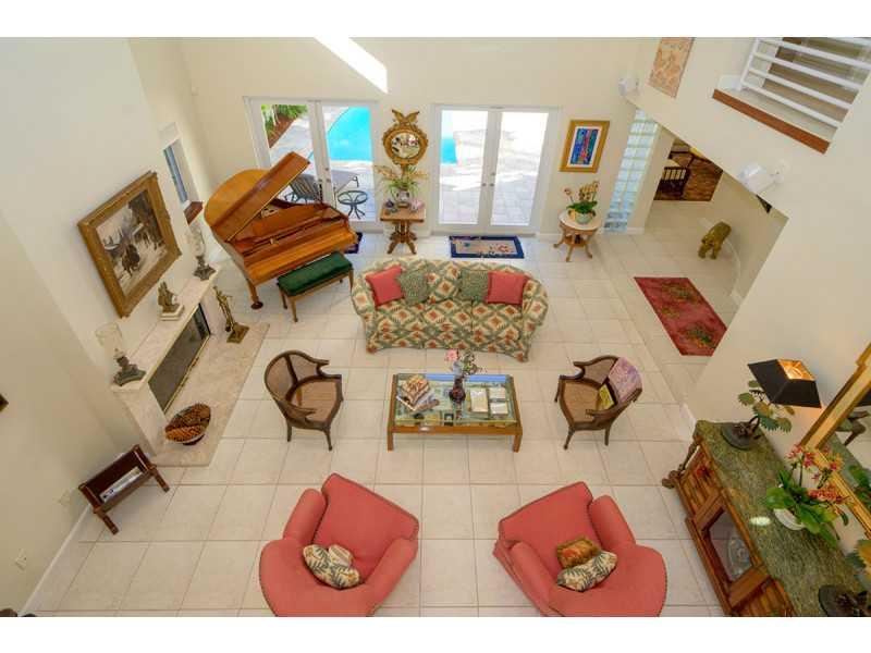 Modern 4/3.5 with clean and simple lines located in scenic North Grove. The home features picture windows, an abundance of natural light, high ceilings and lush landscaping with tree top views. Formal living and dining areas along with a family room over look a private pool with plenty of entertaining space. Many bonuses include a new roof, limestone baths with onyx countertops, fireplace, 2 car garage, eat-in kitchen, balconies and safely gated driveway. Minutes to beaches, airport, and shopping.