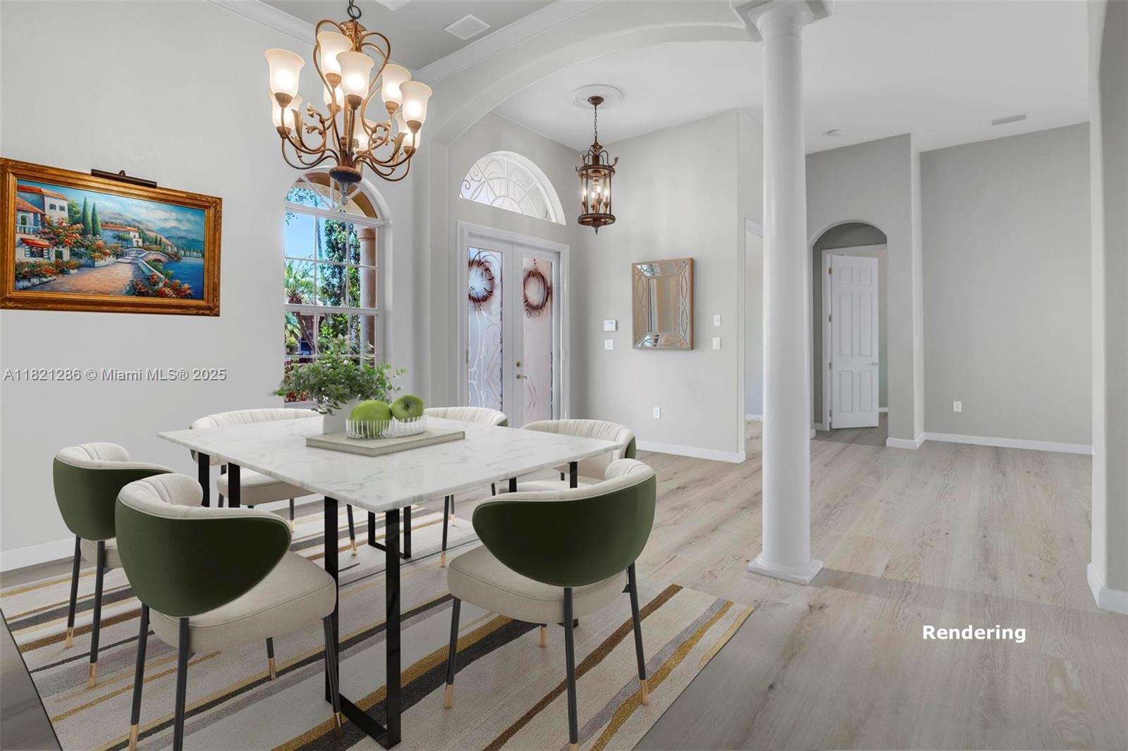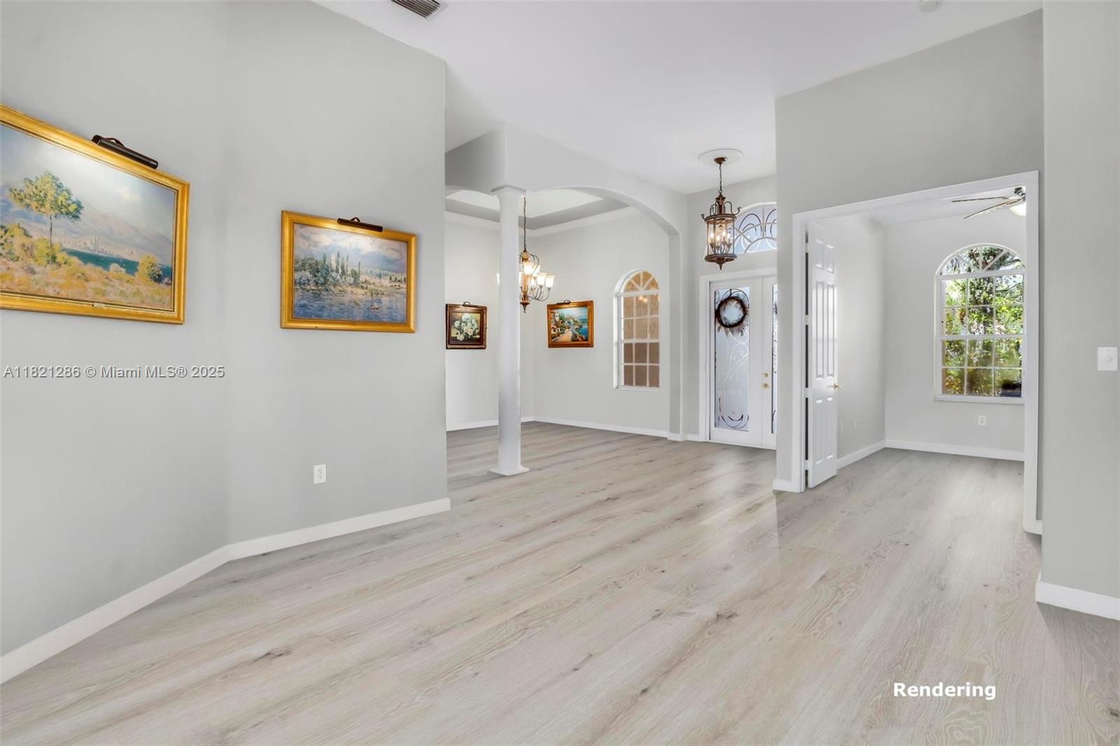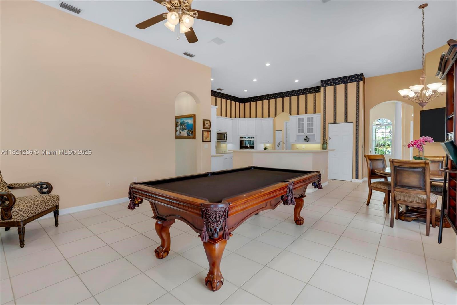 Charming, one story 5BD/3BA Mediterranean-style home in the sought-after Breaker Estates @ Pembroke Isles. This well-maintained home features a well designed layout that flows seamlessly throughout- PERFECT for comfortable living and entertaining. Home features NEW roof 2023, accordion shutters throughout, NEW A/C unit 2025 and second A/C unit 2020, . Enjoy your screened patio with soothing fountain that creates the perfect space to unwind. HOA includes: 24h security, internet, cable, maintenance, alarm monitoring. Remodeled CLUB HOUSE includes: Gym, tennis courts, pickleball courts, basketball court, soccer field, exercise room, sauna, 3 pools, playground, picnic area and more! Conveniently located near major highways, shopping and A+Schools!
