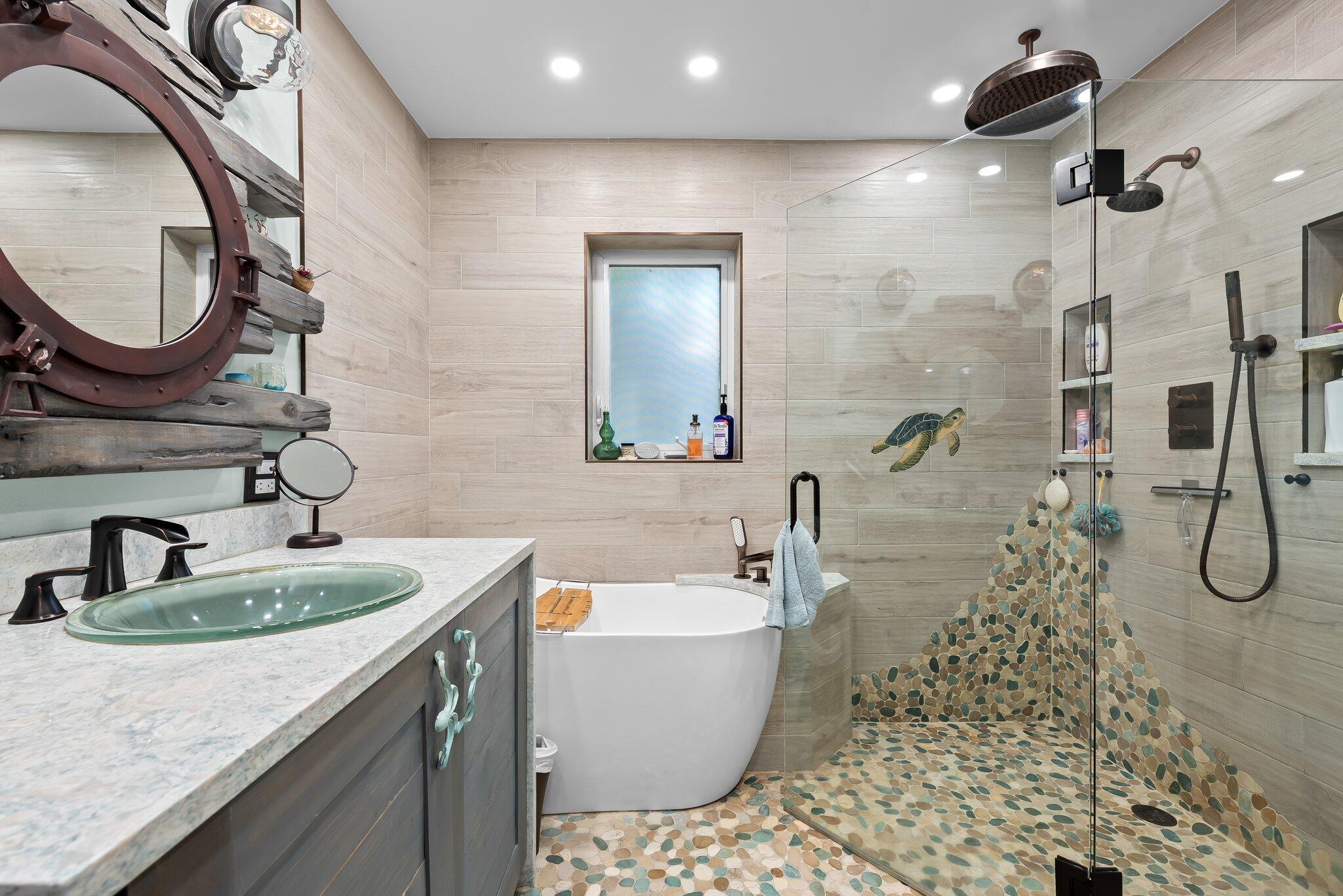 Tropically updated 3BR/2BA pool home on a corner lot in sought-after Palmetto Park Terrace. Zoned for Addison Mizner Elementary and Middle (A+ rated) and Boca Raton High School (A rated). This stylish home features a spacious open kitchen that flows into bright living and dining areas. The split floor plan offers privacy, with the primary suite overlooking the lush backyard and boasting an updated en-suite bath. Two guest bedrooms share a full bath with direct pool access. Enjoy a private tropical oasis with a pool, covered patio, fire pit, and powered tiki bar. Impact glass throughout and new roof (2024). Move-in ready and perfect for entertaining!