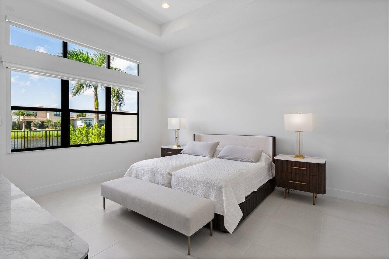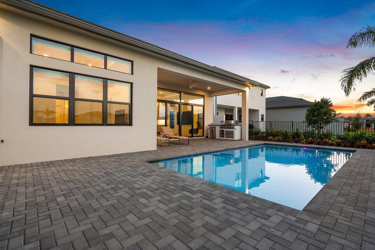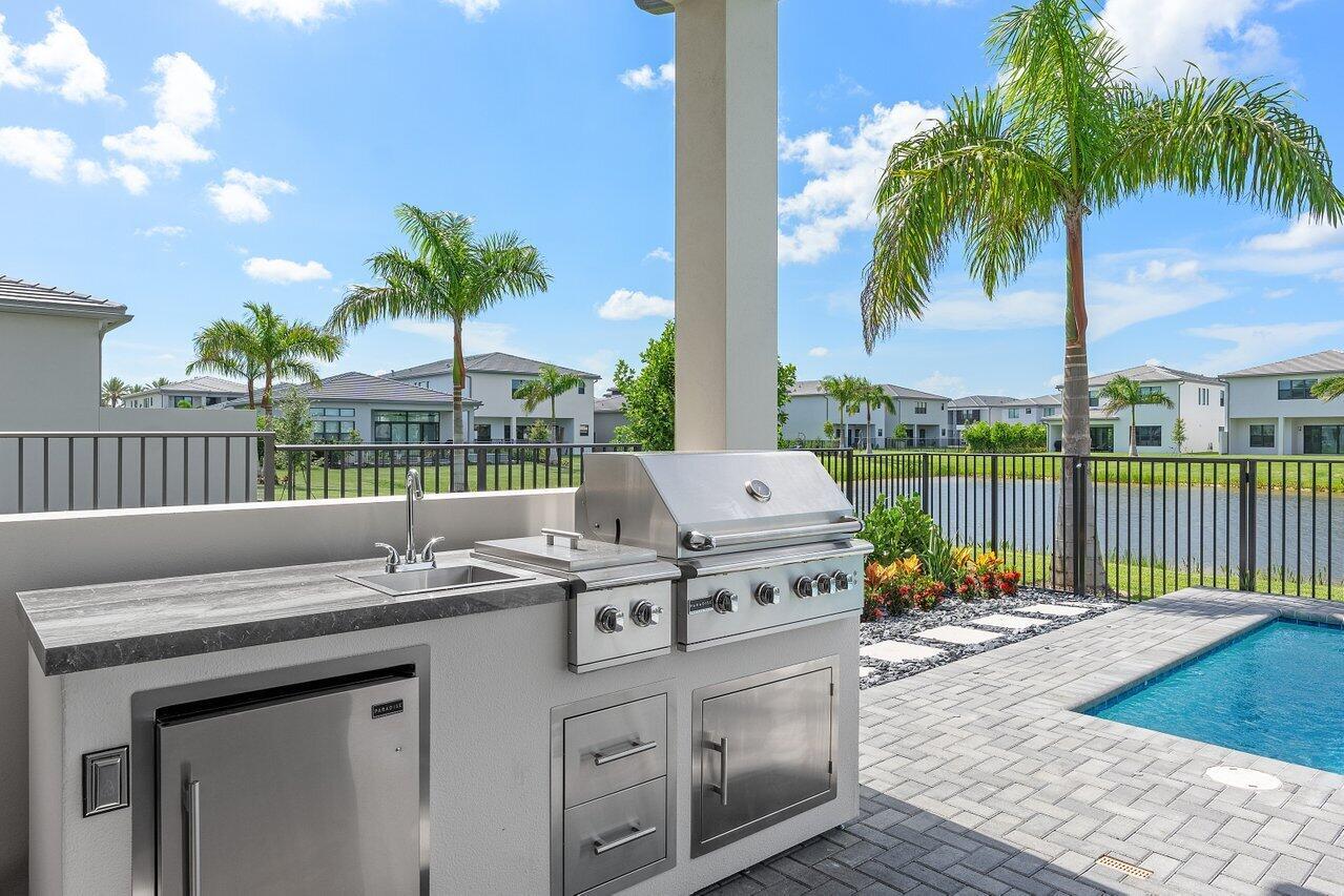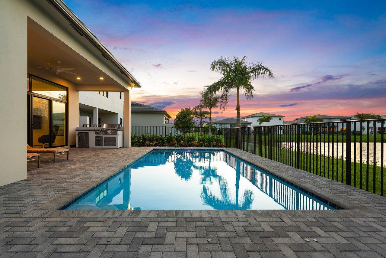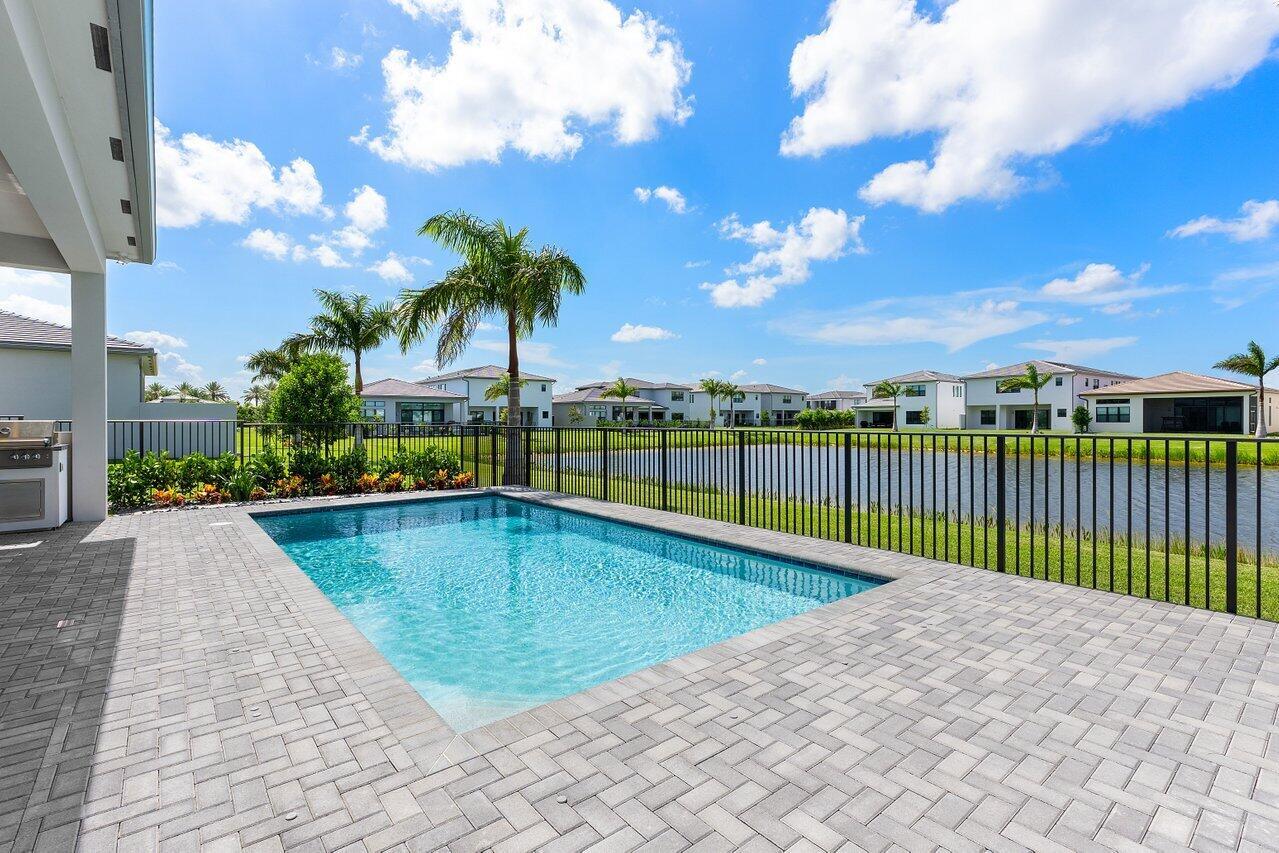 Perfectly finished, move-in ready Bermuda one story home with pool on the lake in Lotus Palm ready for the most discerning buyer. Three bedrooms plus an office/den, 3 1/2 bathrooms, 3 car garage, heated salt water pool and summer kitchen overlooking the lake. Tile floors throughout. Upgraded kitchen cabinets. GE appliances. Custom closets. Electric blackout shades. Security system with motion lights. Resort-style living with an expansive brand new clubhouse boasting extensive amenities: 6 tennis courts, 5 pickleball courts, the Crave restaurant and pool-side bar, fitness center, yoga garden, full indoor basketball court, children's arcade, gleaming pools and a spa. Prime location off Glades Road near all of Boca Raton's best shopping, dining, entertainment and top rated schools.