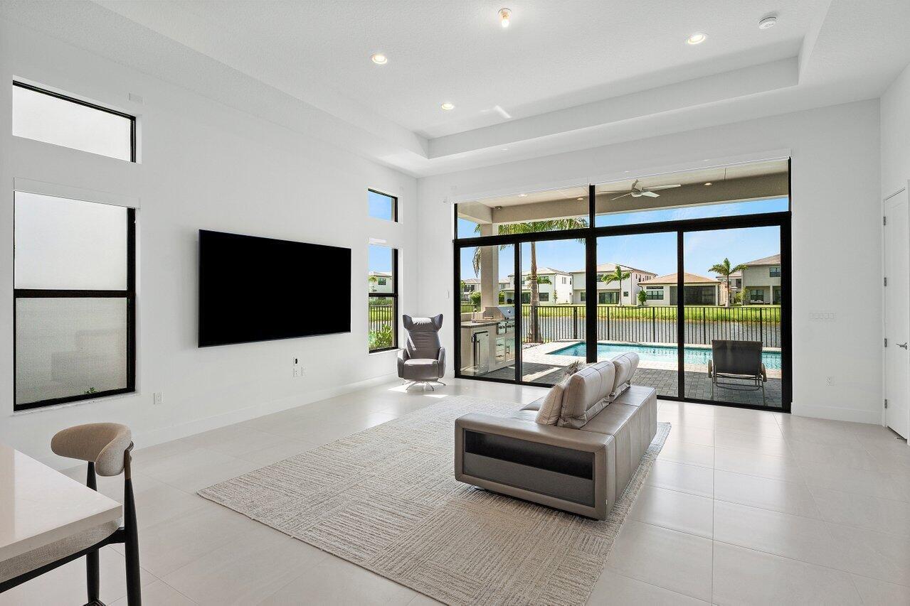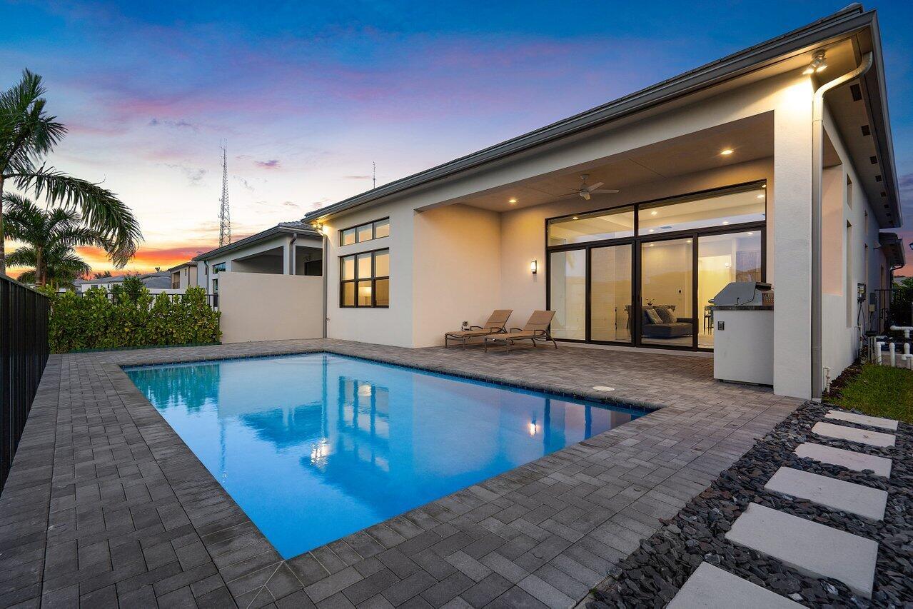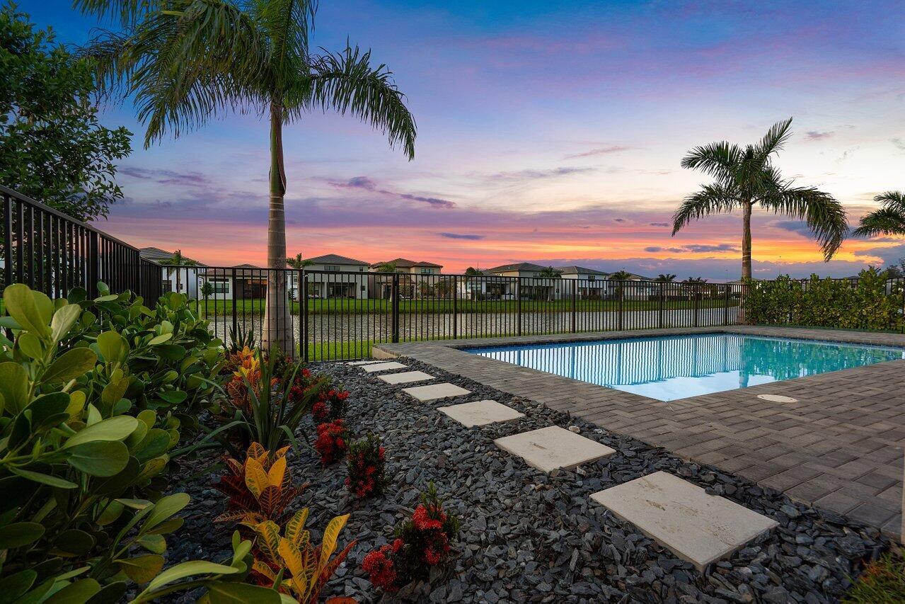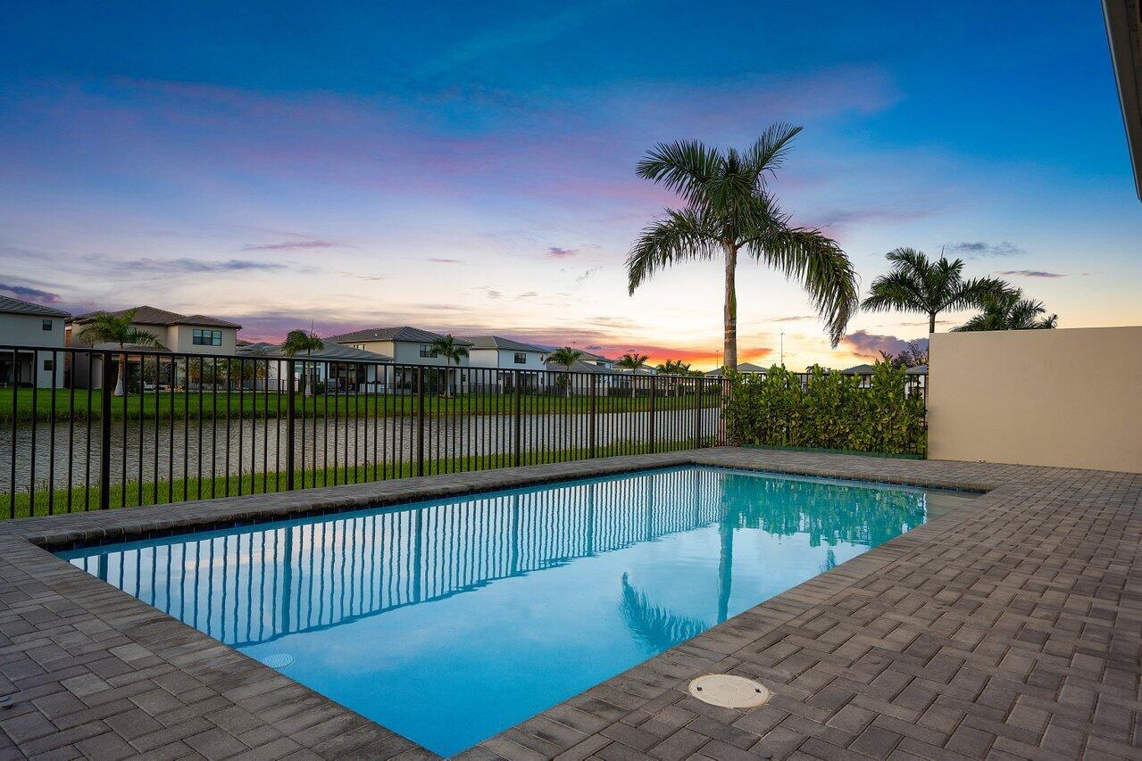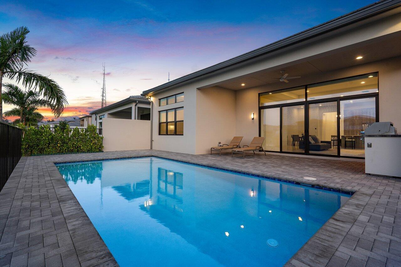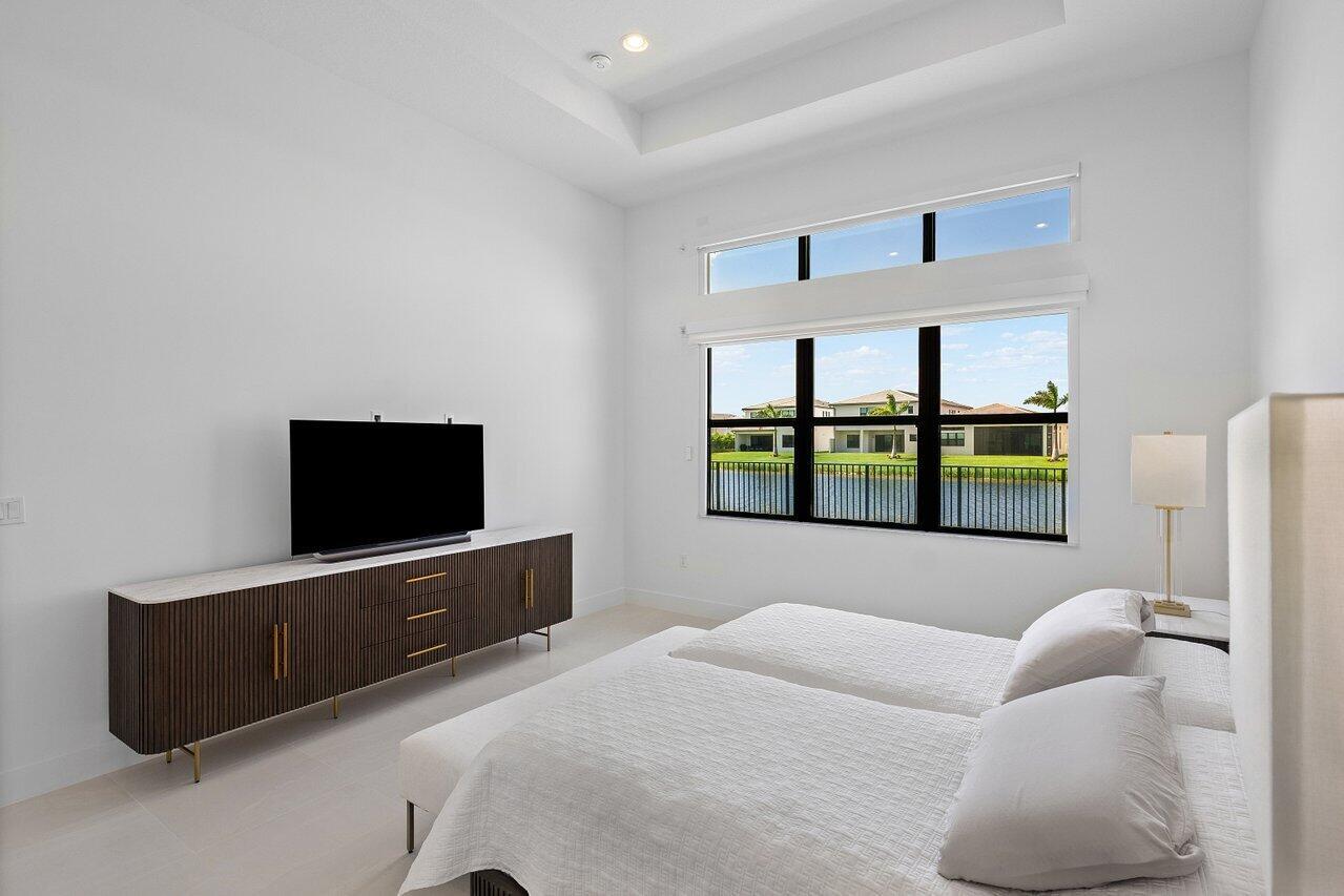 Perfectly finished, move-in ready Bermuda one story home with pool on the lake in Lotus Palm ready for the most discerning buyer. Three bedrooms plus an office/den, 3 1/2 bathrooms, 3 car garage, heated salt water pool and summer kitchen overlooking the lake. Tile floors throughout. Upgraded kitchen cabinets. GE appliances. Custom closets. Electric blackout shades. Security system with motion lights. Resort-style living with an expansive brand new clubhouse boasting extensive amenities: 6 tennis courts, 5 pickleball courts, the Crave restaurant and pool-side bar, fitness center, yoga garden, full indoor basketball court, children's arcade, gleaming pools and a spa. Prime location off Glades Road near all of Boca Raton's best shopping, dining, entertainment and top rated schools.
