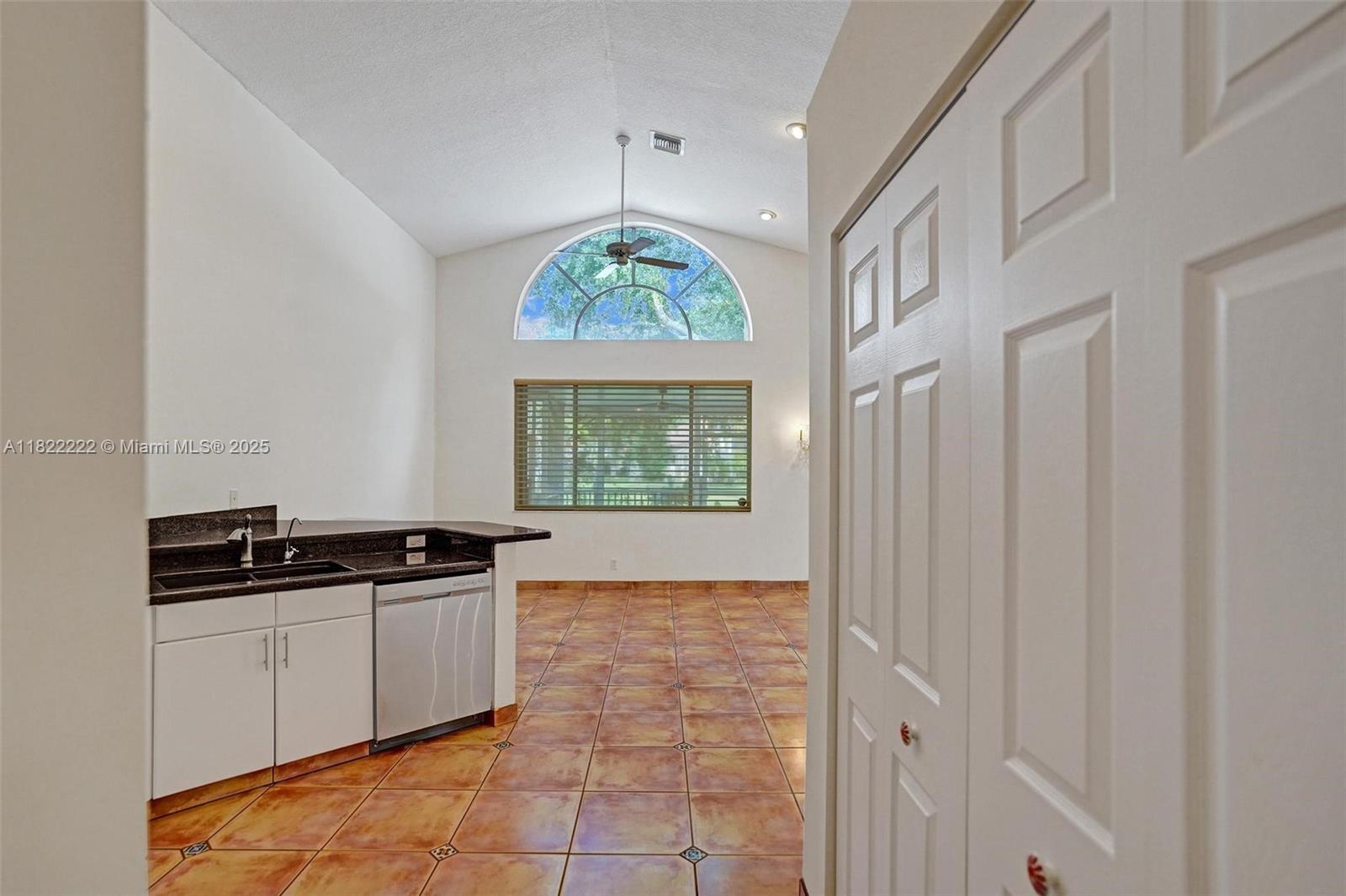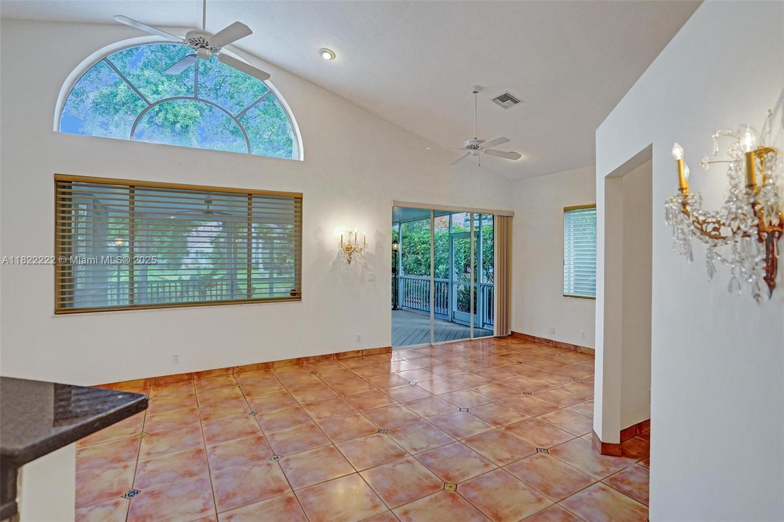 Lush Canal View from your extended screen patio deck that is enveloped in lushness! Vaulted ceilings accent the split design in this 3/2. Formal Living & Dining as well as a separate family room overlooking the outdoor space. Freshly Painted! Large owners room with walk-in closets that feature built-ins! Primary bath features a separate Roman tub and shower. Dual custom designer sinks on the vanity! Garage features custom wall units & added cabinetry! Laundry room also has a tub and additional storage cabinets. Great location in north central Coral Springs with easy access to major shopping and highways. Less than a mile away is Betti Stradling Park that features a water park, basketball and other opportunities for walking and sports! Across the street from there is Pickleball and Tennis!