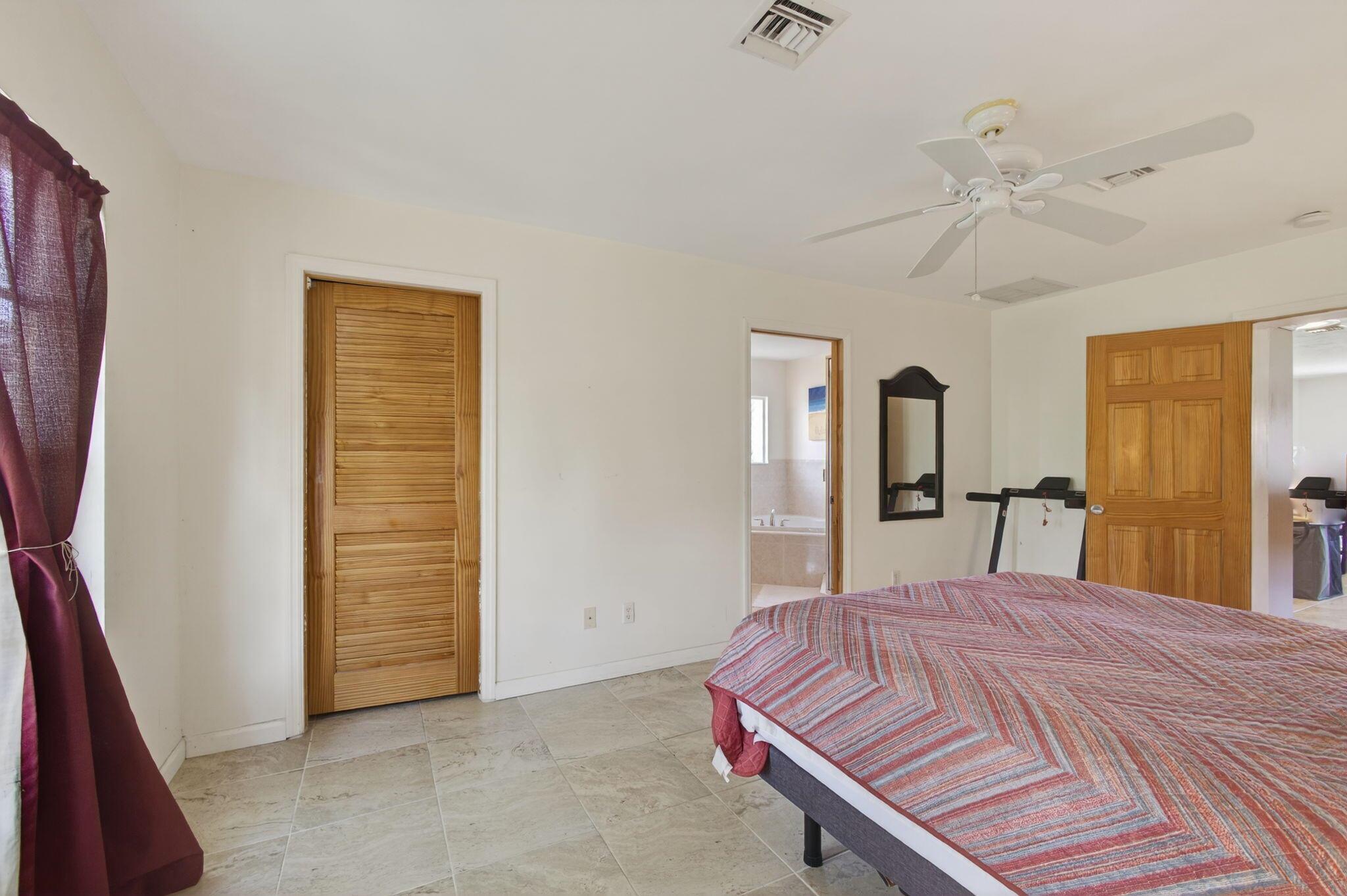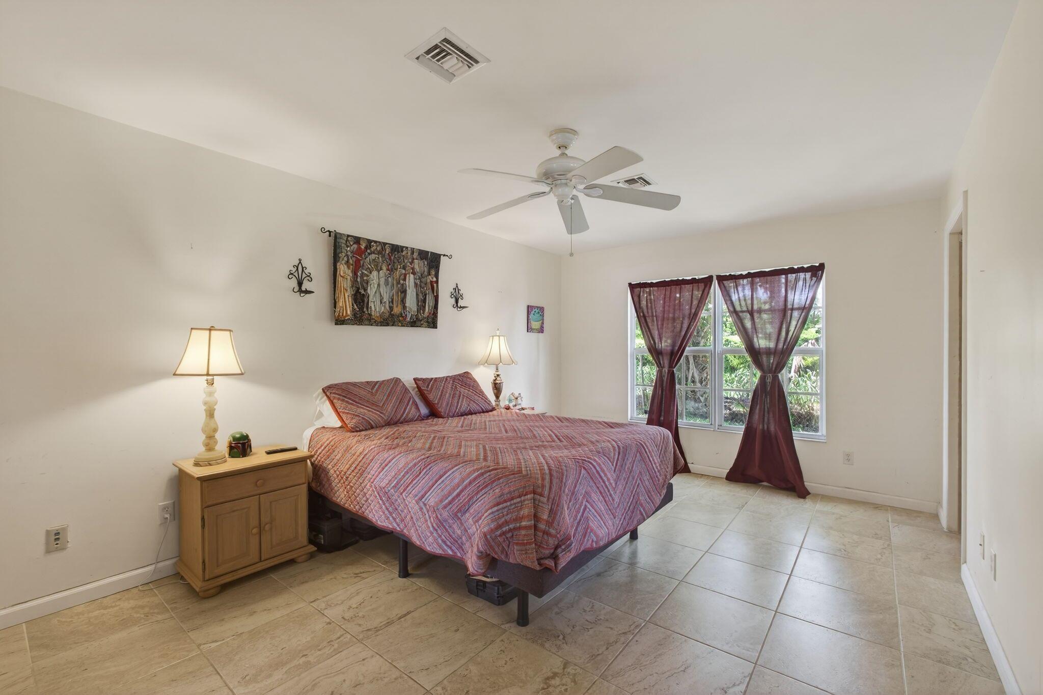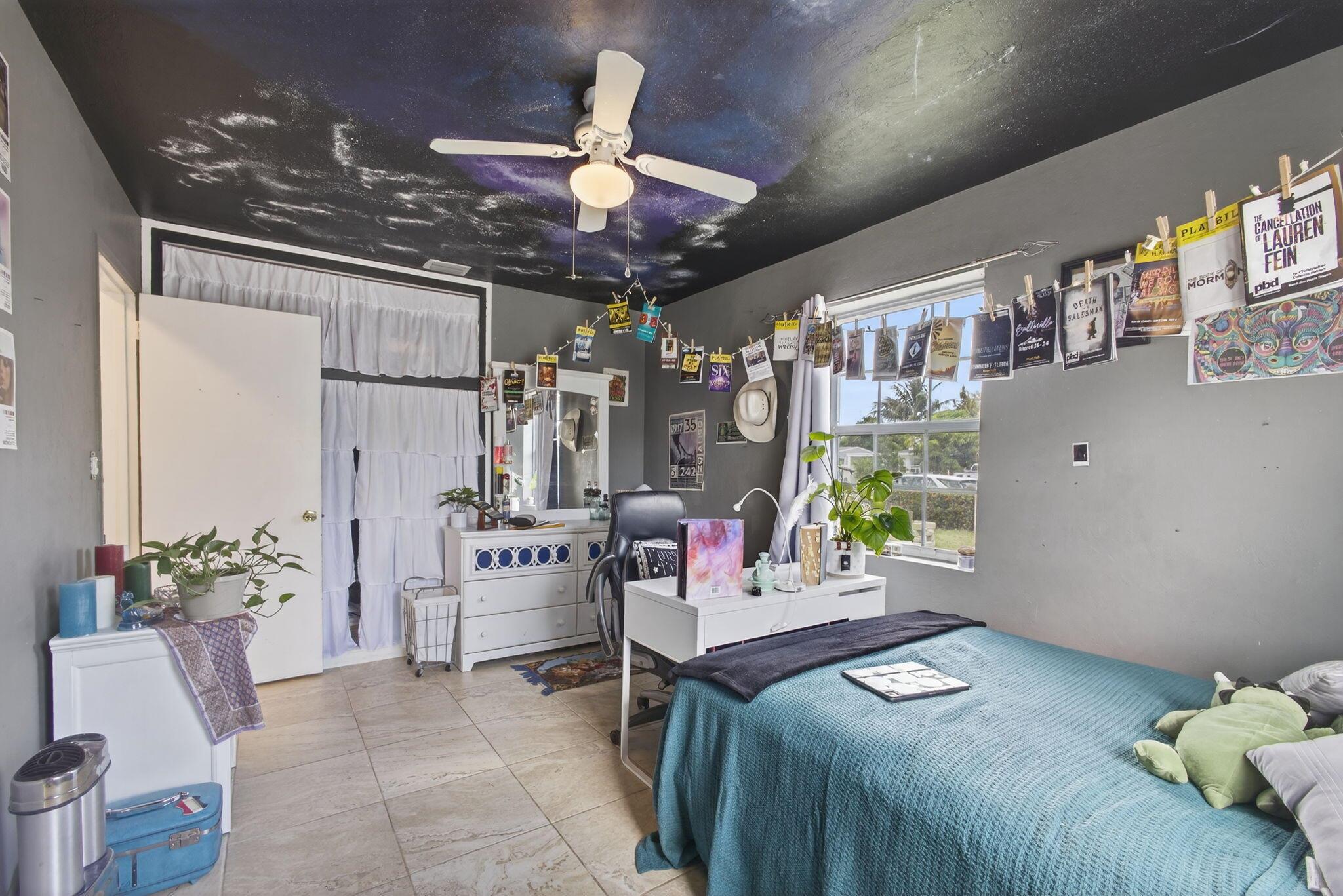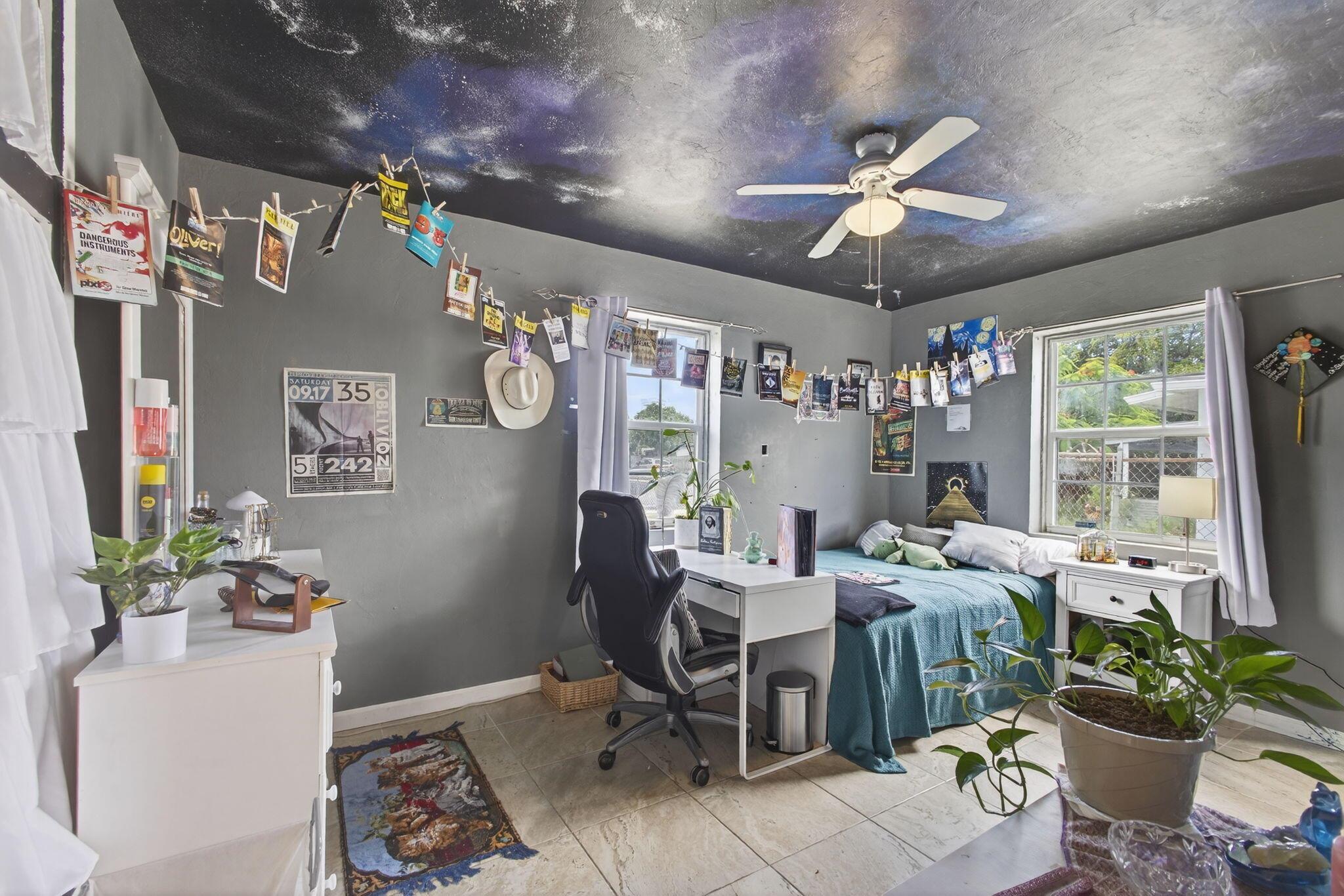 As you walk into this beautiful 4/2 open concept home you notice the abundance of natural light as the living room flows seamlessly into the kitchen. This home has a split floor plan the main bedroom features a walk-in closet and a full bathroom with a glass-enclosed shower and jetted tub this living space has a separate A/C unit. The 2nd and 3rd bedroom features the artistic stylings of a local artist recently acknowledged by PBC parks and rec. The 4th bedroom is currently used as an office space but is great for any family size. The property backs up to a canal creating privacy in the backyard. Outside there is a firepit for gatherings and raised garden beds for the avid gardener as well as a double driveway to ensure plenty of parking for you and your guests.