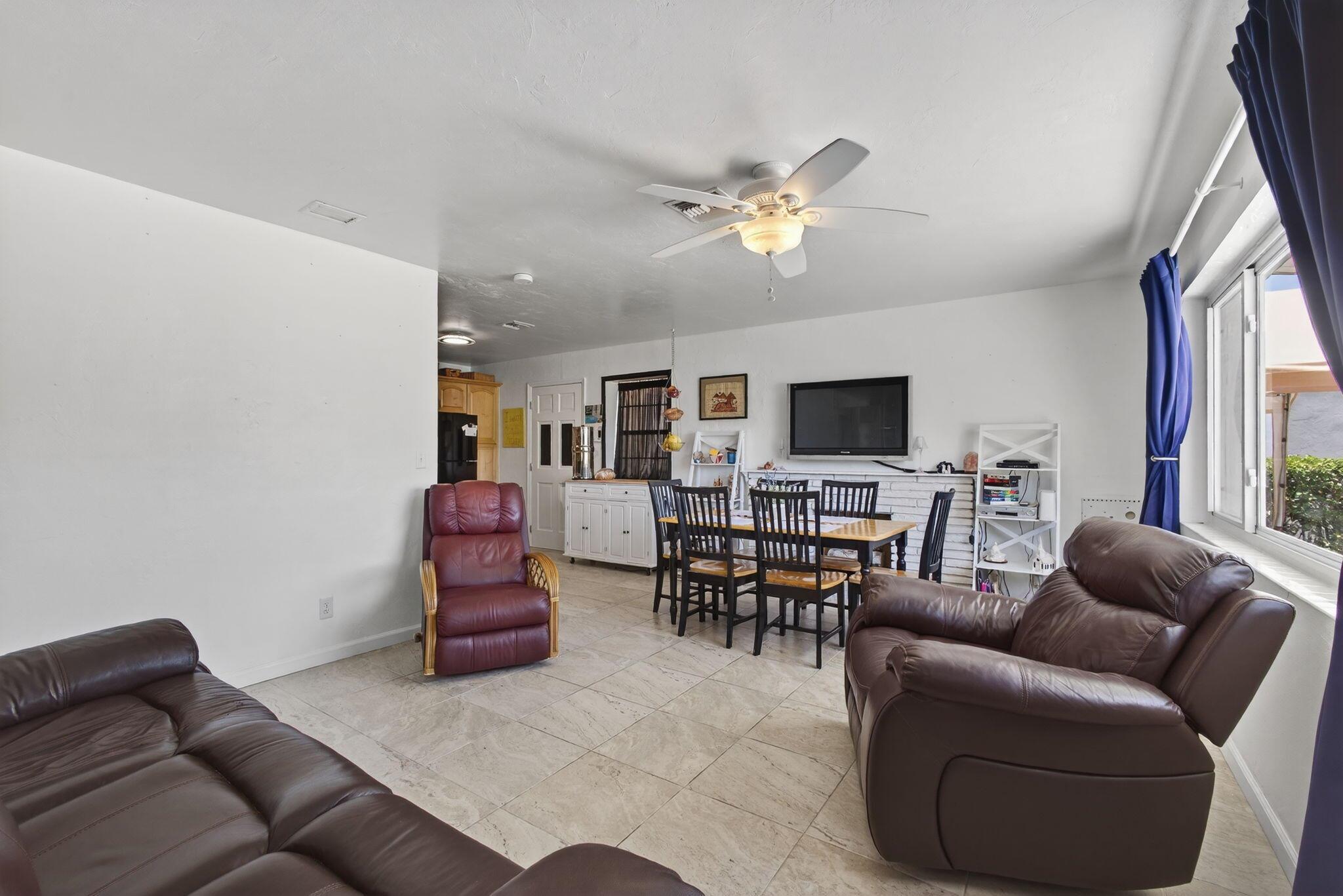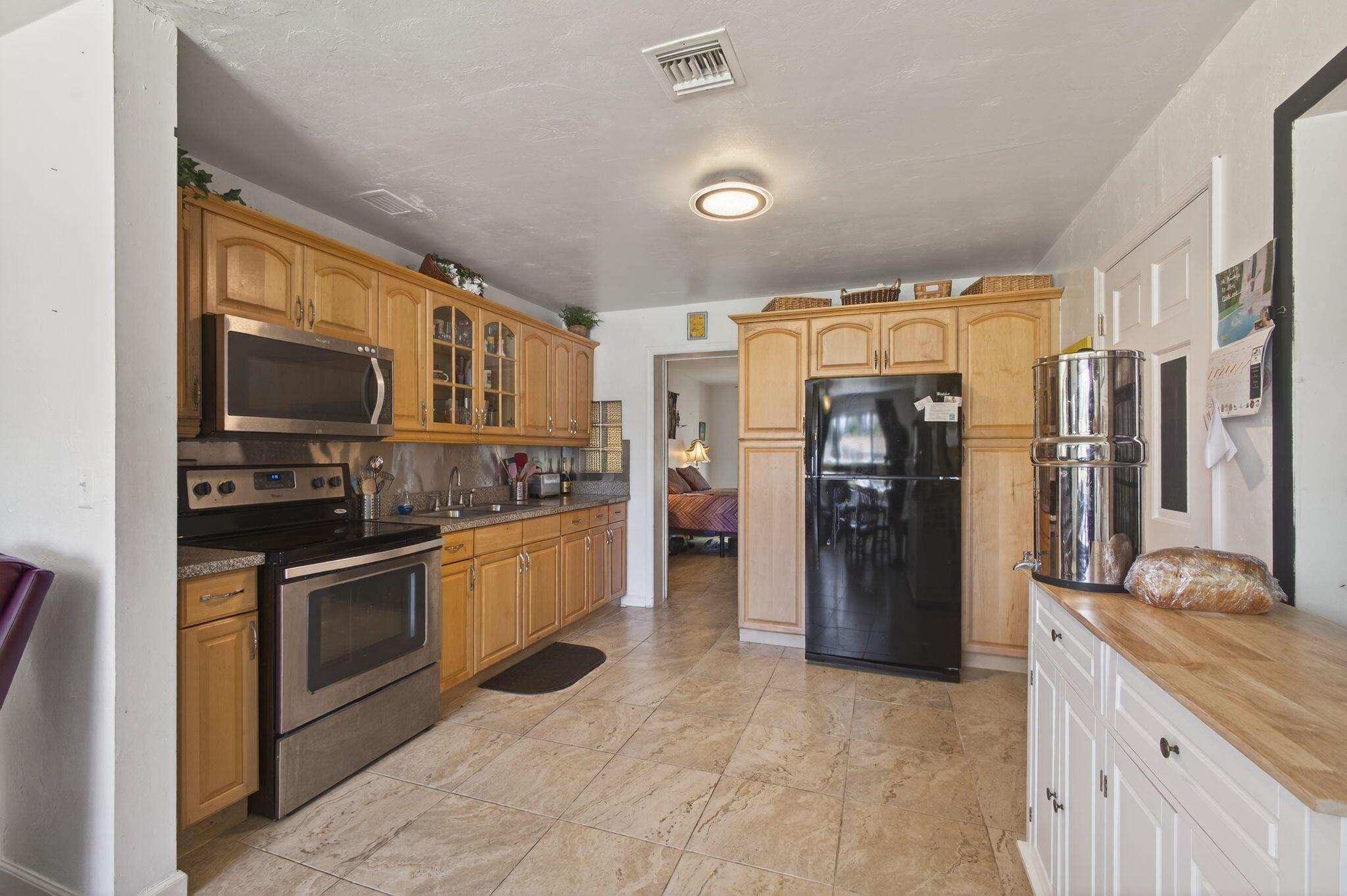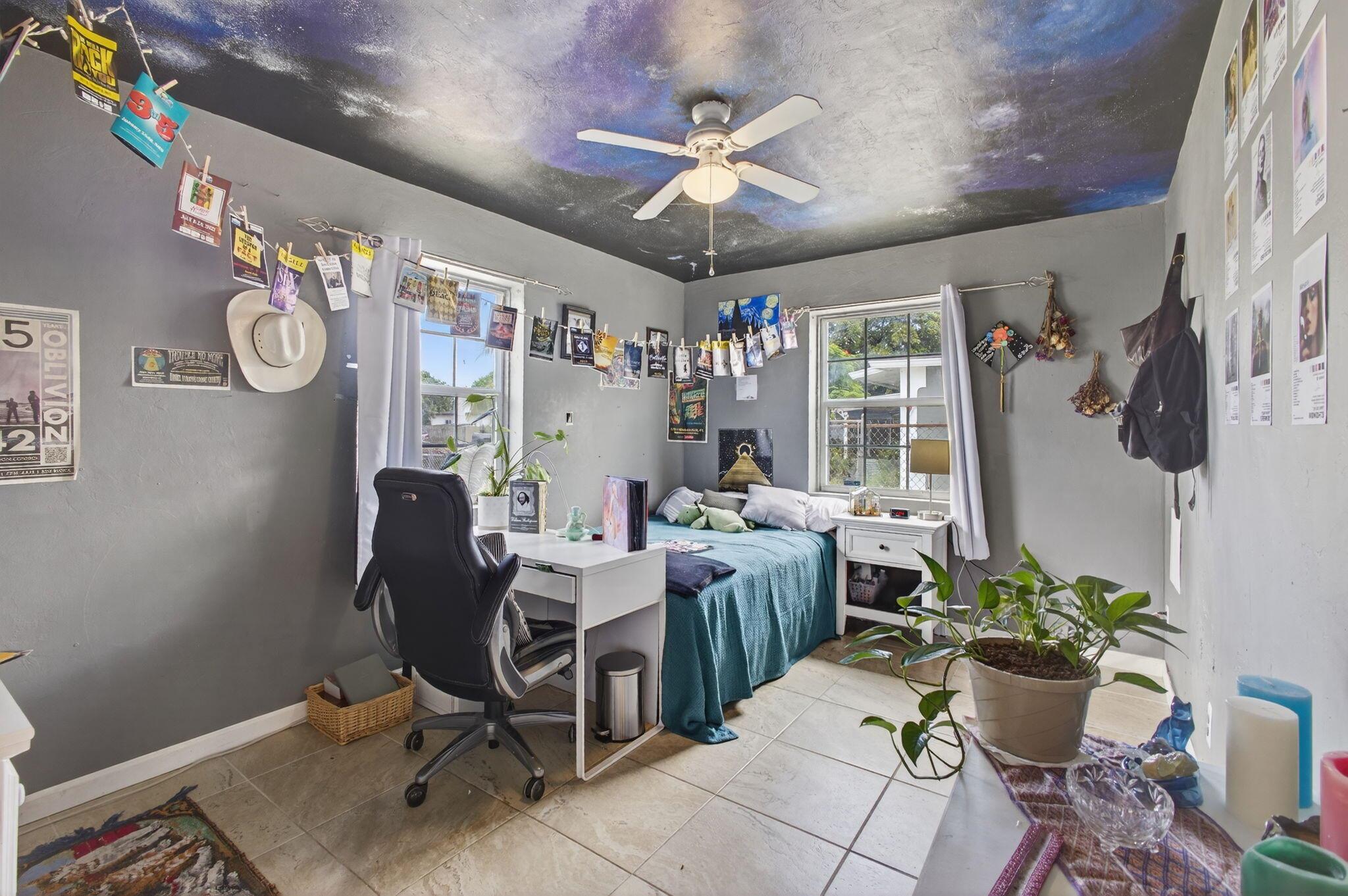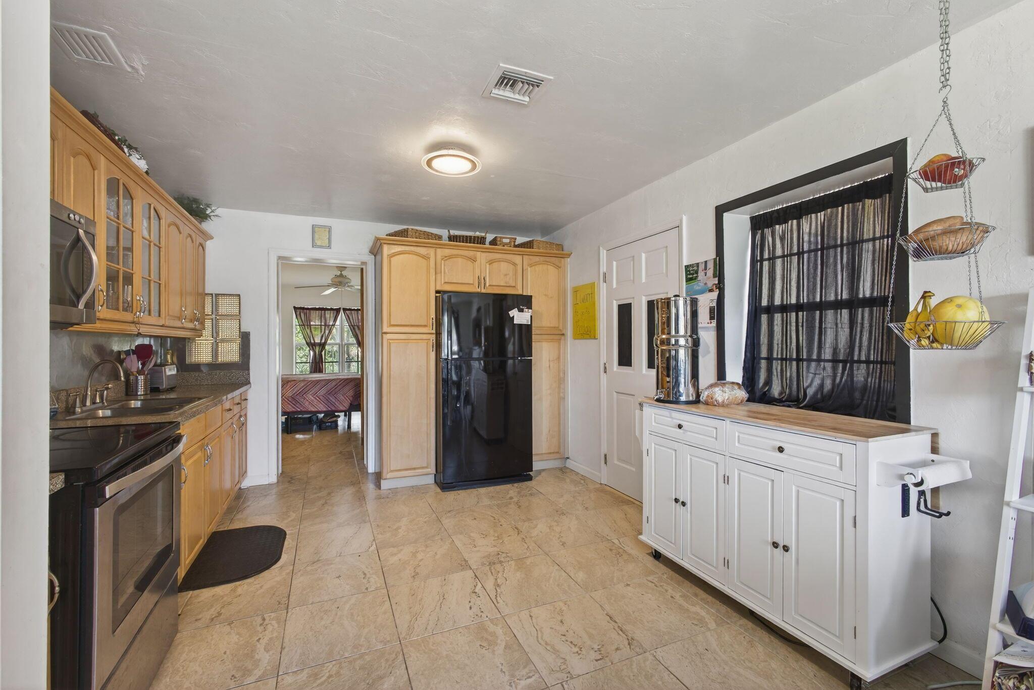 As you walk into this beautiful 4/2 open concept home you notice the abundance of natural light as the living room flows seamlessly into the kitchen. This home has a split floor plan the main bedroom features a walk-in closet and a full bathroom with a glass-enclosed shower and jetted tub this living space has a separate A/C unit. The 2nd and 3rd bedroom features the artistic stylings of a local artist recently acknowledged by PBC parks and rec. The 4th bedroom is currently used as an office space but is great for any family size. The property backs up to a canal creating privacy in the backyard. Outside there is a firepit for gatherings and raised garden beds for the avid gardener as well as a double driveway to ensure plenty of parking for you and your guests.
