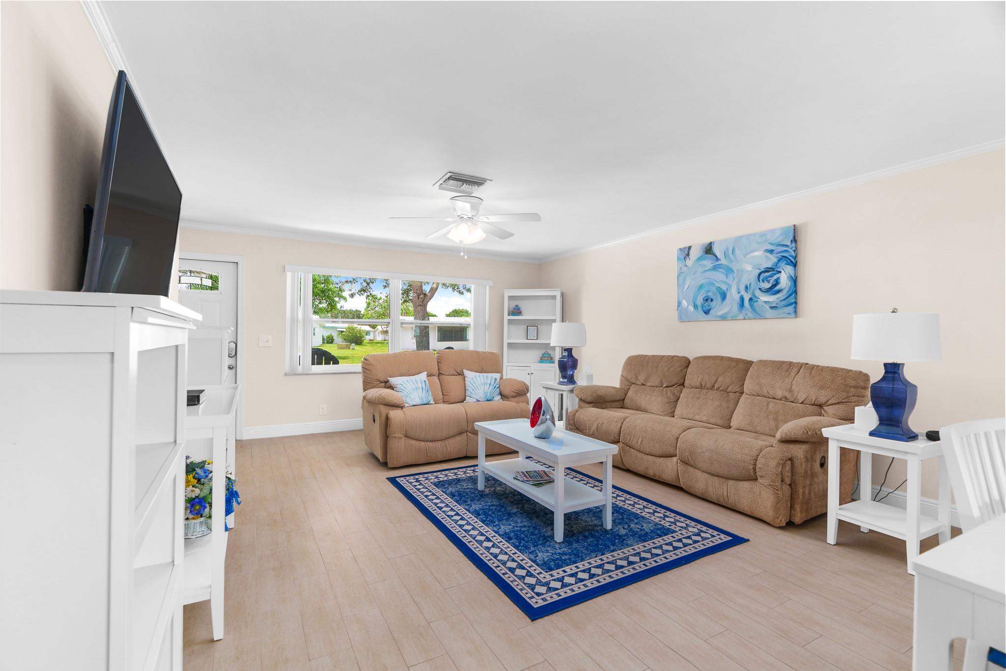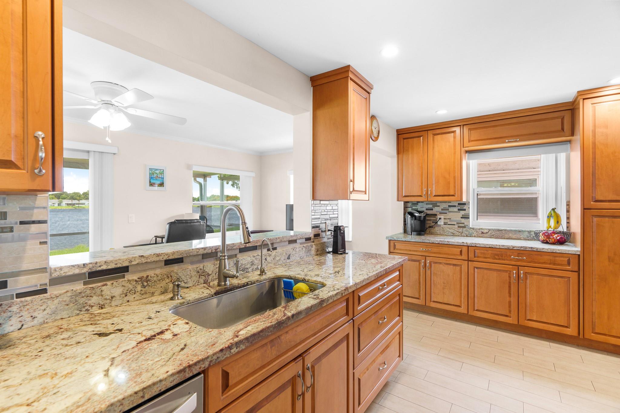Lauderdale West, 55+, SPECTACULAR LAKE FRONT (AMAZING VIEW); 2/2 W/Garage, ALL UPDATED dream home! Full IMPACT protection, Crown Molding, PLENTY of CLOSET SPACE, porcelain tile thru-out, gorgeous custom kitchen w/top of the line appliances incl W/D, updated electric panel, updated bathrooms W/OVERSIZED SHOWER, AC (2019), ROOF (2018), double wide - STAMPED CONCRETE driveway, screened rear patio, too much to list, this is a like new home! No disappointments! Low maintenance includes Cable TV & Wi-Fi, repair/replace tile roof, 2 heated pools, 2 spas, saunas, 3 Tennis courts, fully equipped fitness center, billiards, ping pong, private library, professional shows, clubs, community bus at your doorstep to shopping and more. Near to shopping, restaurants etc. A must see!