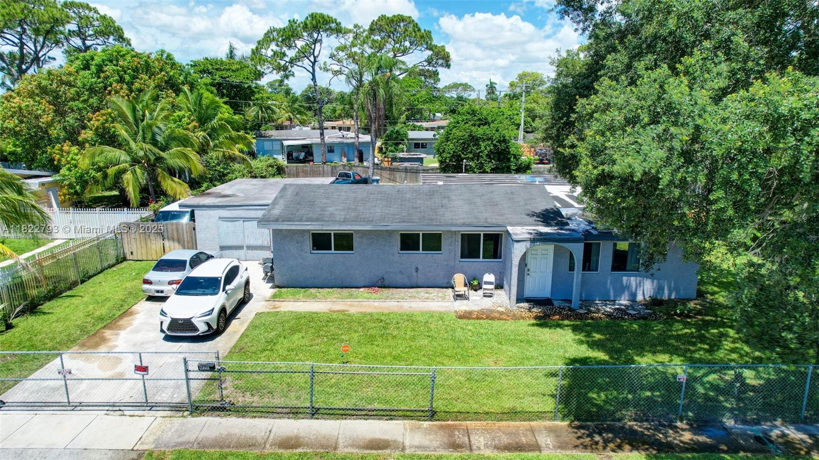 Spacious open floor plan with desirable triple-split bedroom layout, perfect for privacy and flexibility! This maintained home features impact windows and doors throughout for a peace of mind, plus a sprinkler system, and saltwater filtration for added efficiency. The fenced yard is perfect for kids or pets, and a large lot offers plenty of room to add a pool. The enclosed carport provides versatile space - use as additional storage, a home office, or explore rental income potential. New electrical lines are being installed underground in the neighborhood and were just installed at the property. Ideally located to schools, major highways, shopping, and more. Don't miss this versatile and secure home with room to grow and earn! **Refrigerator does not convey**