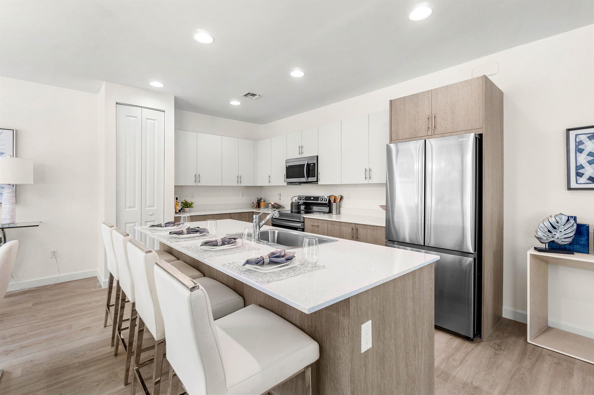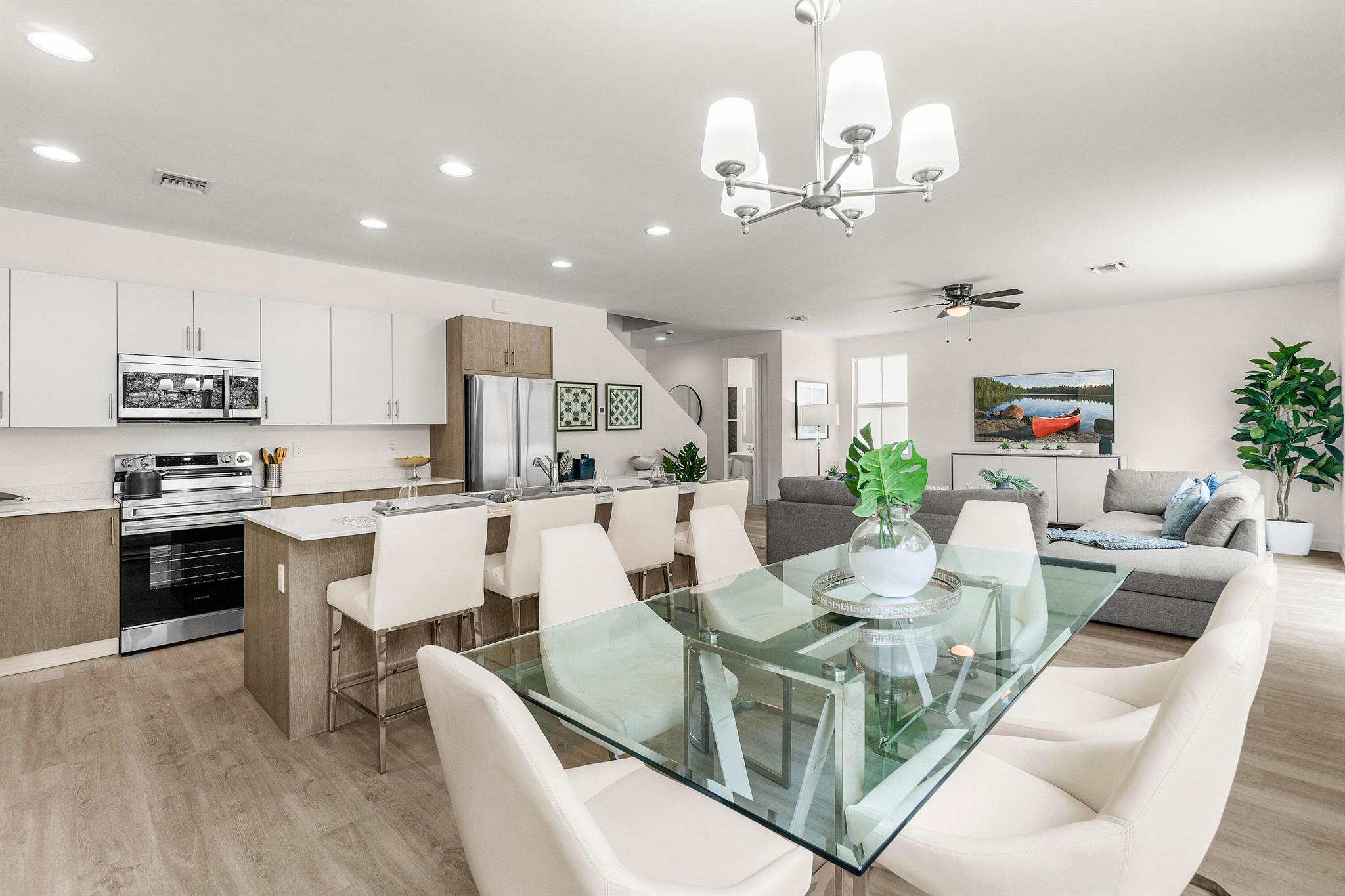 Welcome to Your Dream Home -- A Gated Single Family 4 Bedroom with Private Backyard!Step into this exceptional 4-bedroom, 2.5-bathroom modern residence, where every detail has been carefully curated across 1,962 square feet of open, light-filled living space. From the moment you enter, you're greeted by an inviting layout that effortlessly combines sleek contemporary design with everyday functionality--perfect for both entertaining and relaxed family living.The interior stuns with high-end luxury vinyl plank flooring that flows seamlessly throughout the home, complemented by quartz countertops and designer cabinetry that add a fresh, elegant touch to the kitchen and baths. A true chef's kitchen awaits, with ample prep space, clean lines, and modern fixtures that make hosting