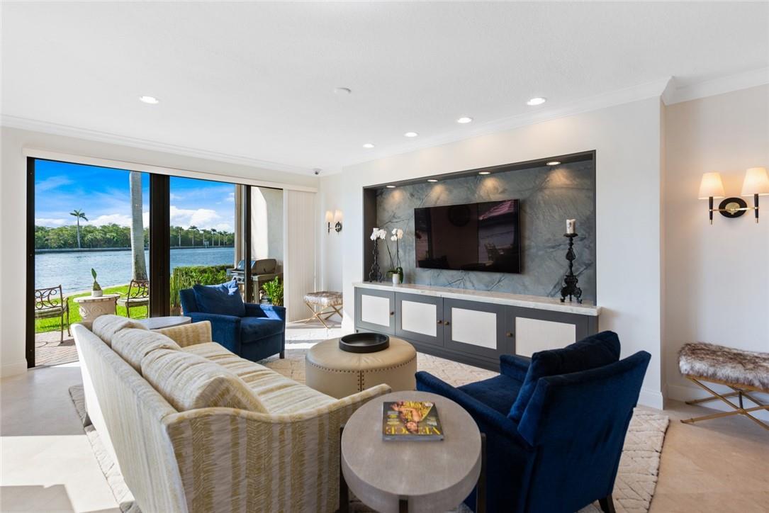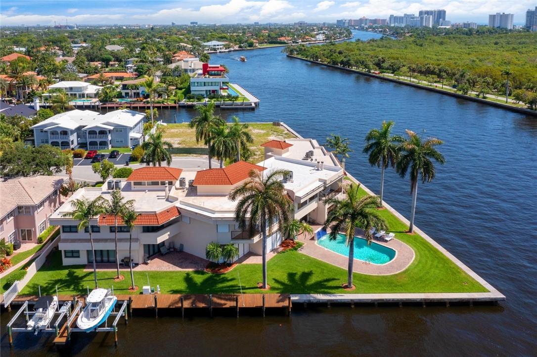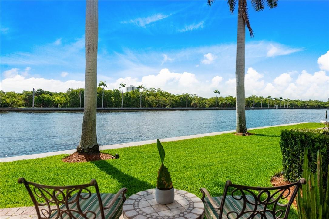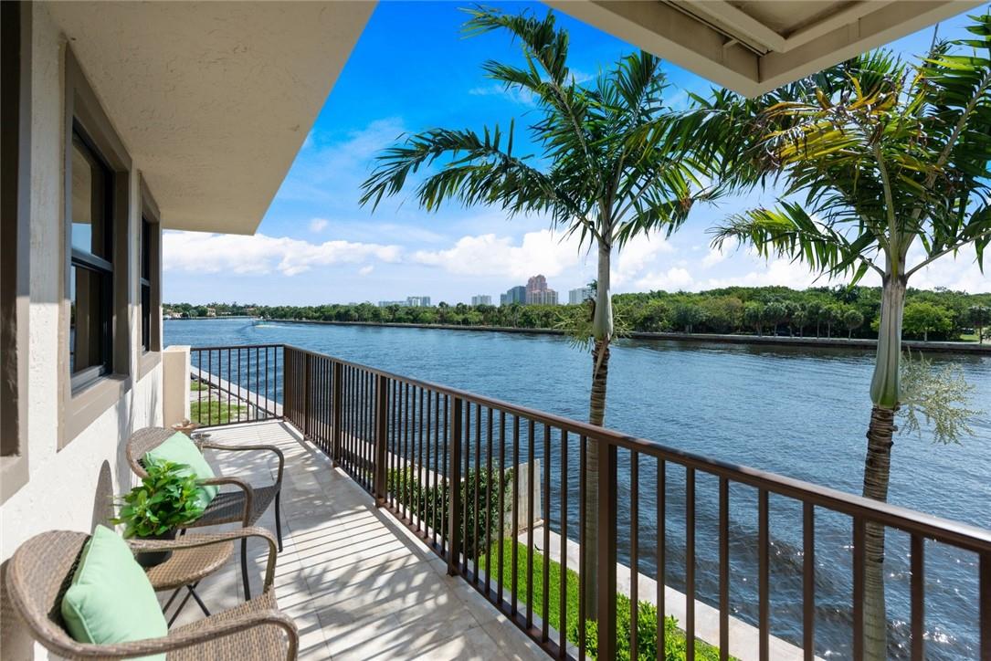 Direct Intracoastal 3/3 Townhome with Dockage. Enjoy the ocean breeze and wide Intracoastal views overlooking Birch State Park. Desirable corner unit features luxuriously customized kitchen w/Miele gas stove, Verde Borgogna leathered Countertops, Walnut Cabinets, Sub Zero refrigerator, Fisher Paykel Double Drawer Dishwasher and separate pantry. 3rd BR downstairs (currently used as office) and laundry room. Separate Loft upstairs, perfect for gym or office. Balcony off primary with his/her closet, ensuite bath and marble floors. 2 new ACs. Custom finished 2-car garage with specialized auto tech flooring, utility sink and built-in storage with overhead racks. Impact doors and windows throughout. Enjoy Al Fresco dining on your private patio. Extra storage room outside.