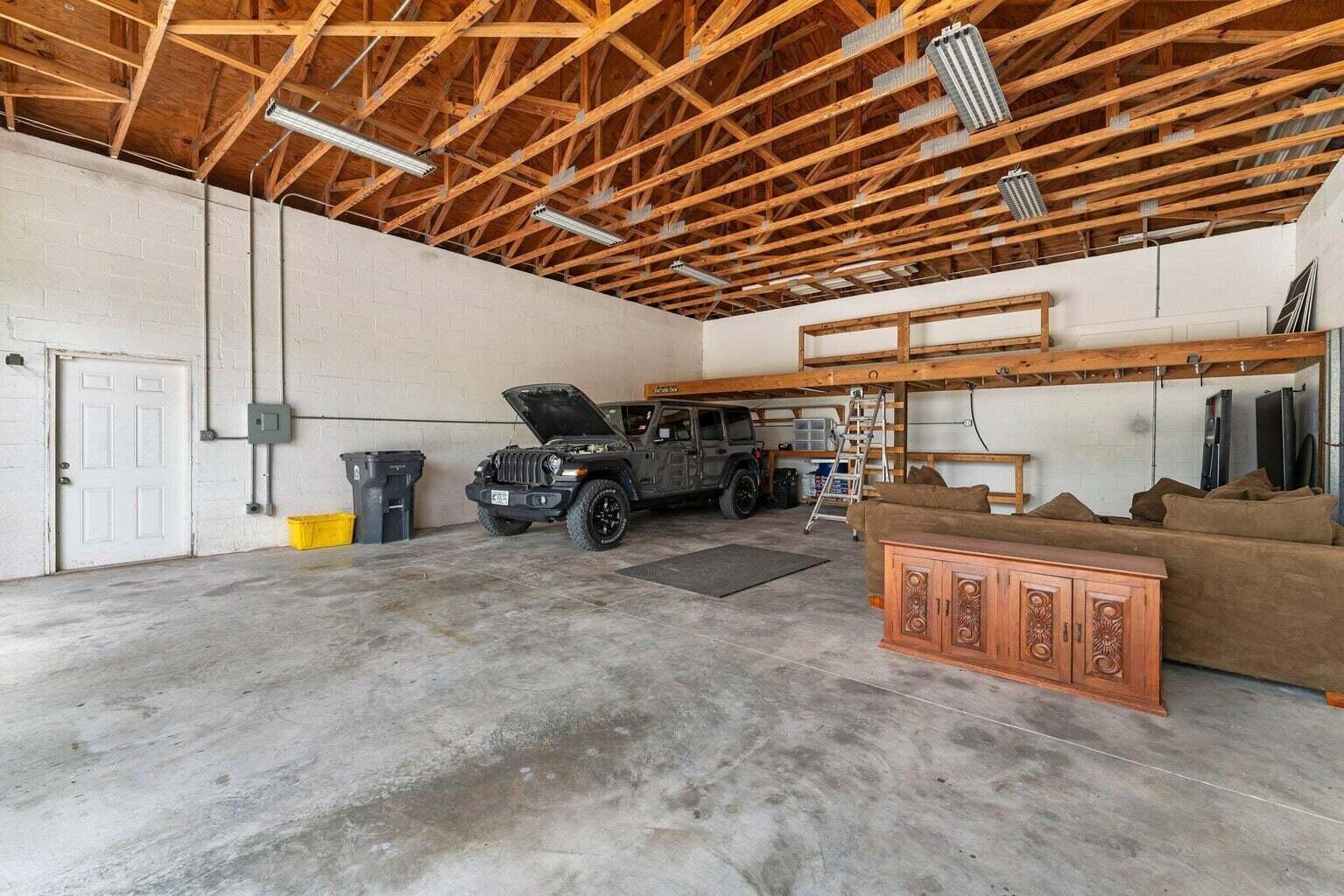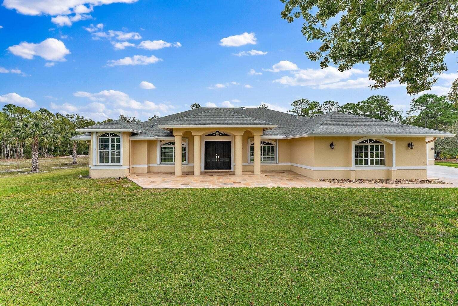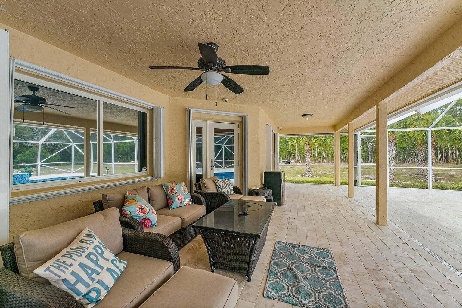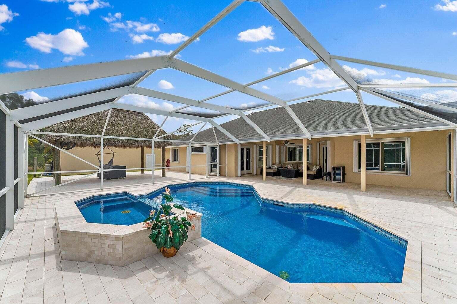 Welcome home to your very own private estate. This CBS home is situated on 5 ACRES of property, completely irrigated, fenced in with double gate access with electric main gate. This home features a 1,080 sq ft CBS detached garage with double automatic doors. Completely redone in 2020 saltwater heated pool with spa and upgraded travertine decking, along with an oversized tiki hut perfect for extra outdoor entertaining. Split bedroom floor plan with 4 bedrooms, 2 baths, along with attached 2 car garage. Beautiful upgraded kitchen with custom granite counter tops and stainless steel appliances, updated bathrooms, vaulted ceilings, a whole house reverse osmosis system, and plantation shutters throughout. Completed with 2018 roof, and accordion shutters for storm protection.