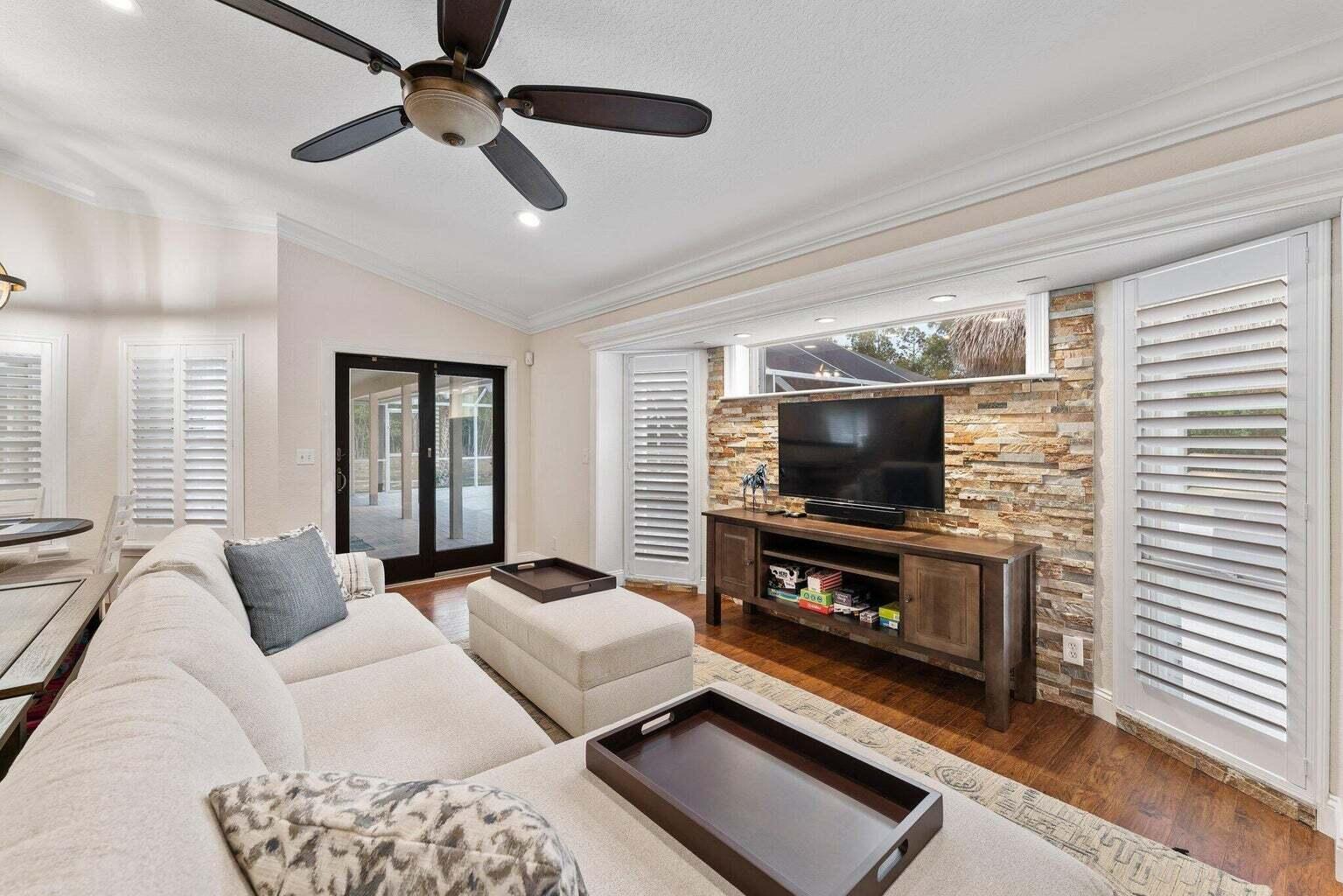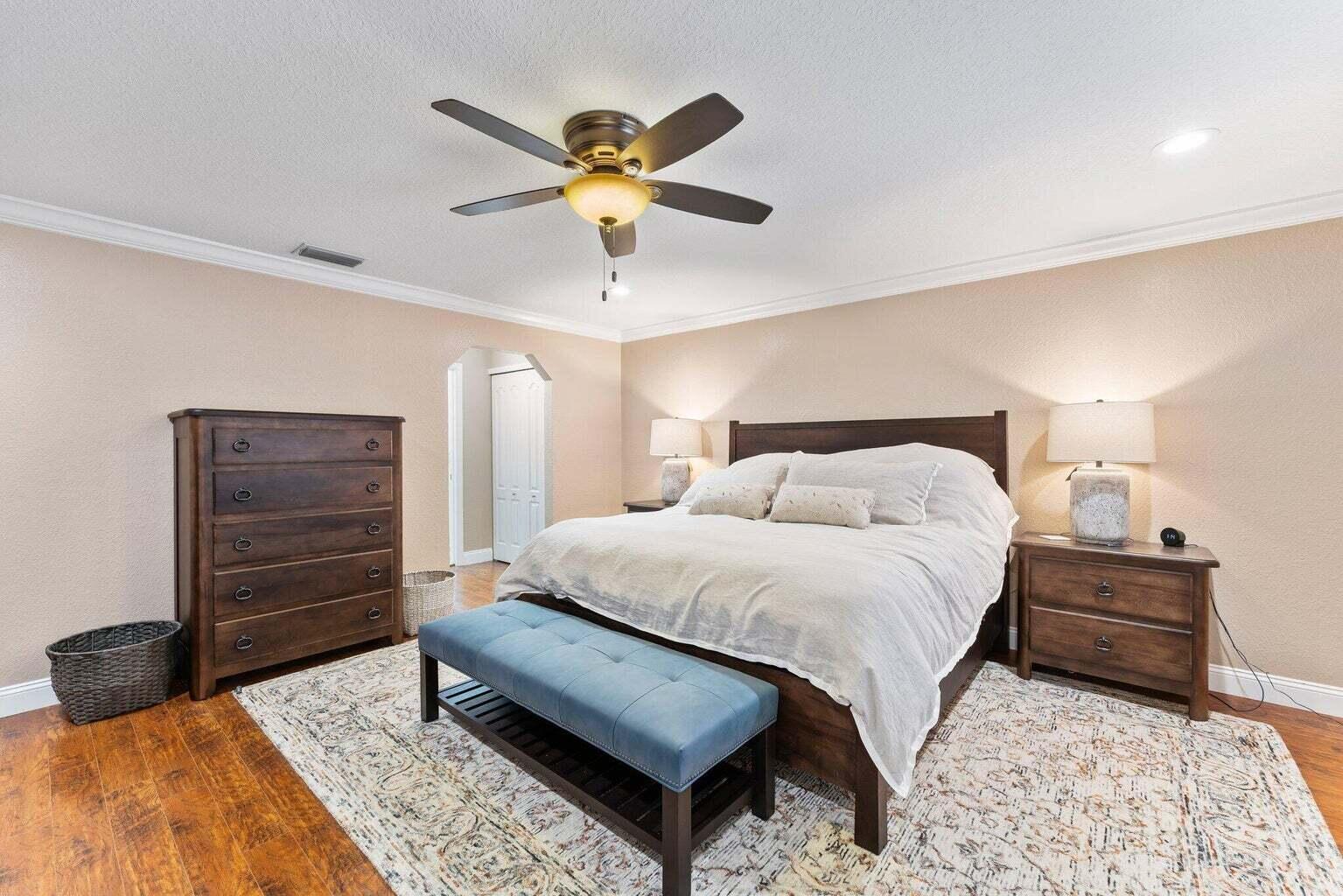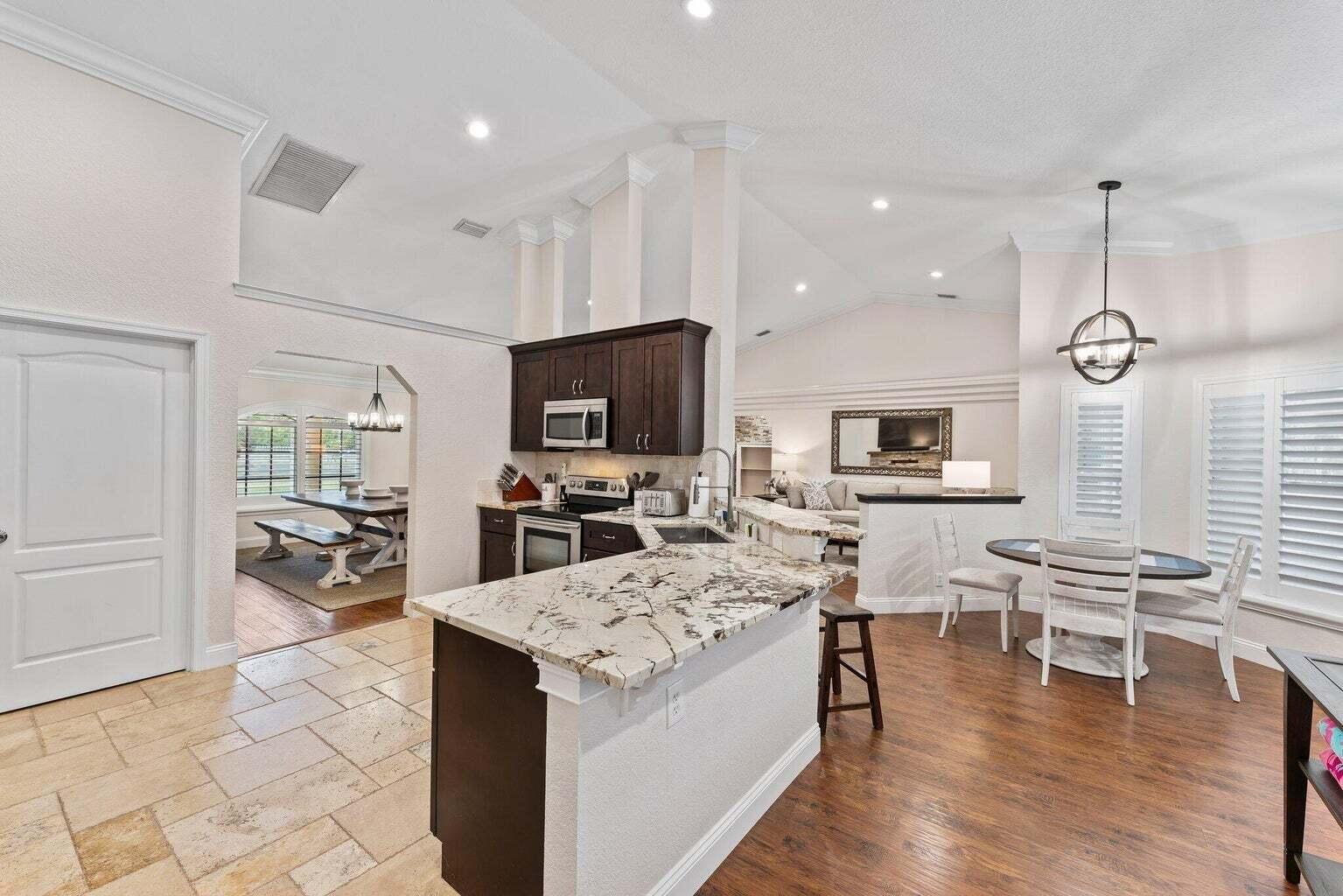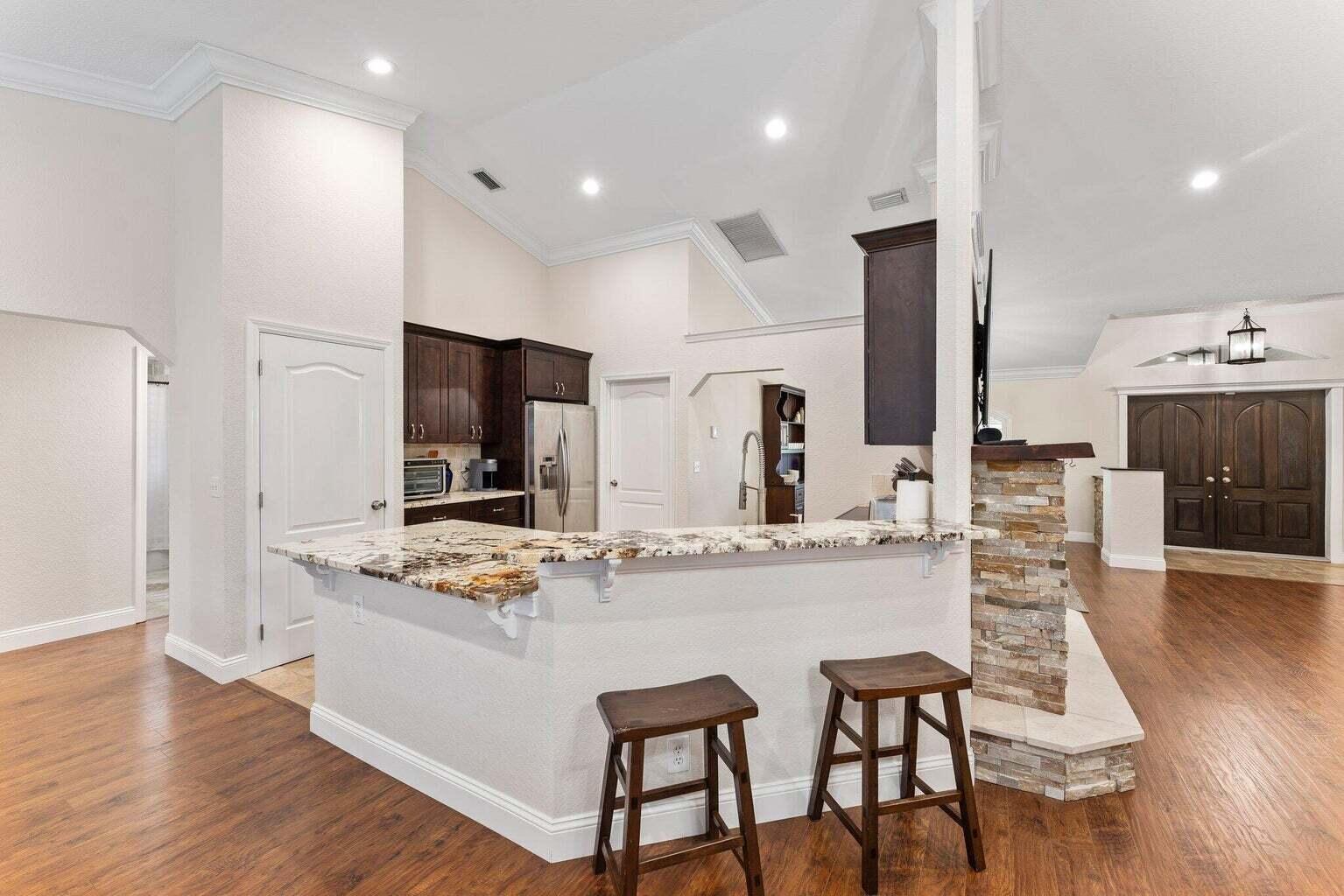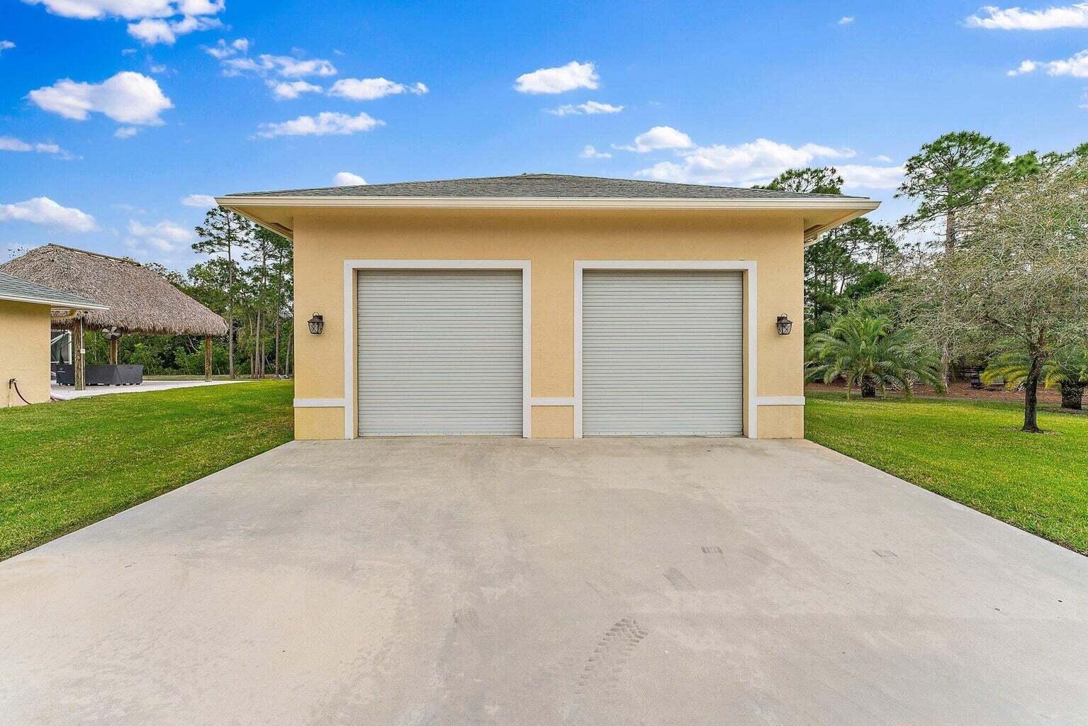 Welcome home to your very own private estate. This CBS home is situated on 5 ACRES of property, completely irrigated, fenced in with double gate access with electric main gate. This home features a 1,080 sq ft CBS detached garage with double automatic doors. Completely redone in 2020 saltwater heated pool with spa and upgraded travertine decking, along with an oversized tiki hut perfect for extra outdoor entertaining. Split bedroom floor plan with 4 bedrooms, 2 baths, along with attached 2 car garage. Beautiful upgraded kitchen with custom granite counter tops and stainless steel appliances, updated bathrooms, vaulted ceilings, a whole house reverse osmosis system, and plantation shutters throughout. Completed with 2018 roof, and accordion shutters for storm protection.