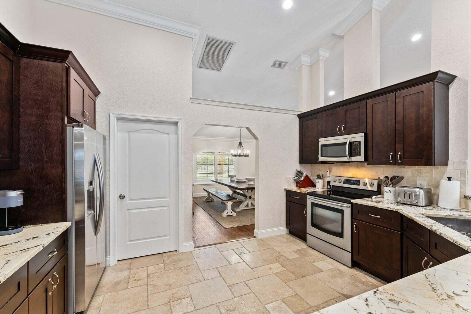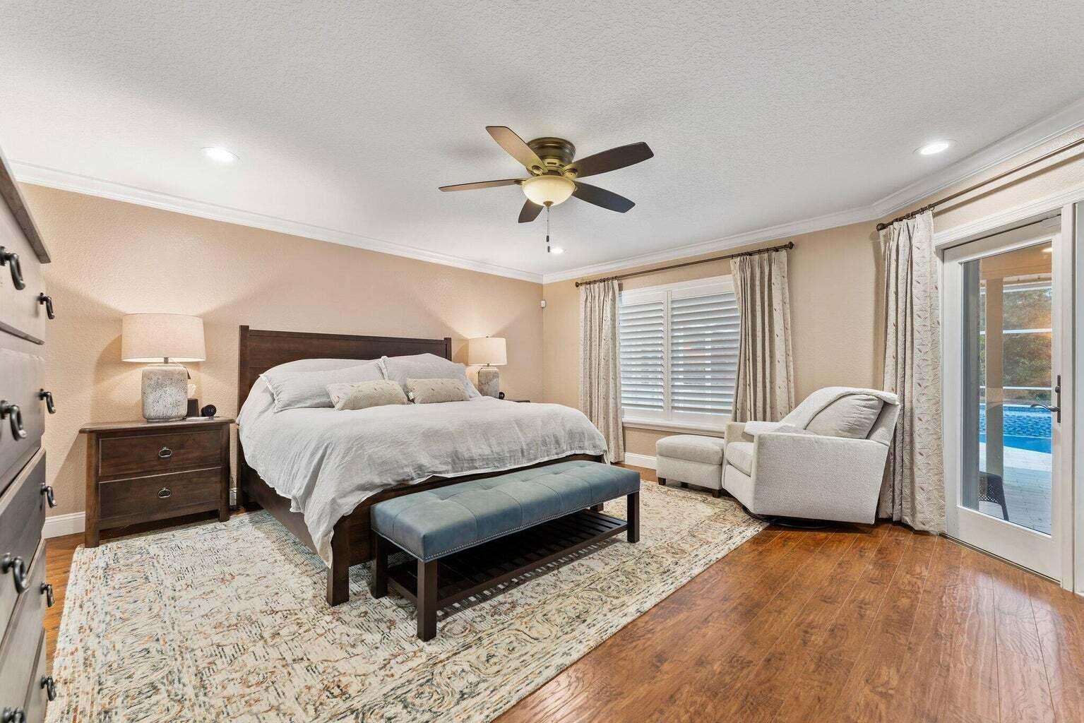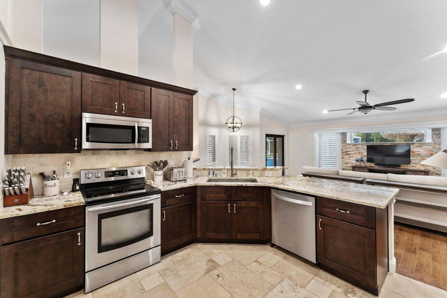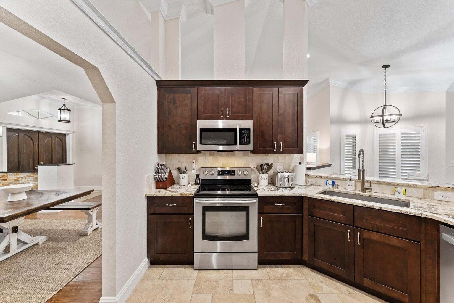 Welcome home to your very own private estate. This CBS home is situated on 5 ACRES of property, completely irrigated, fenced in with double gate access with electric main gate. This home features a 1,080 sq ft CBS detached garage with double automatic doors. Completely redone in 2020 saltwater heated pool with spa and upgraded travertine decking, along with an oversized tiki hut perfect for extra outdoor entertaining. Split bedroom floor plan with 4 bedrooms, 2 baths, along with attached 2 car garage. Beautiful upgraded kitchen with custom granite counter tops and stainless steel appliances, updated bathrooms, vaulted ceilings, a whole house reverse osmosis system, and plantation shutters throughout. Completed with 2018 roof, and accordion shutters for storm protection.