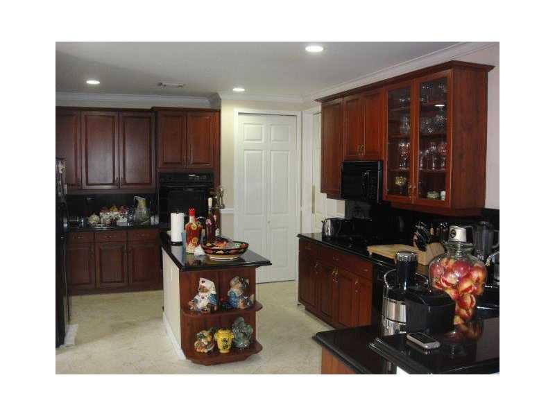 Dramatic 18 foot ceilings in family room overlooking the sumptuous backyard with large palms trees, pool and lake. European kitchen cabinetry, granite counter cooking island along with expansive granite counter tops all around this professionally planned kitchen. The home as many upgrades such as marble floors on main floor, crown moldings in all rooms, chair rail molding in all rooms, large marble patio surrounding pool and special design oversized pool with salt water filter.