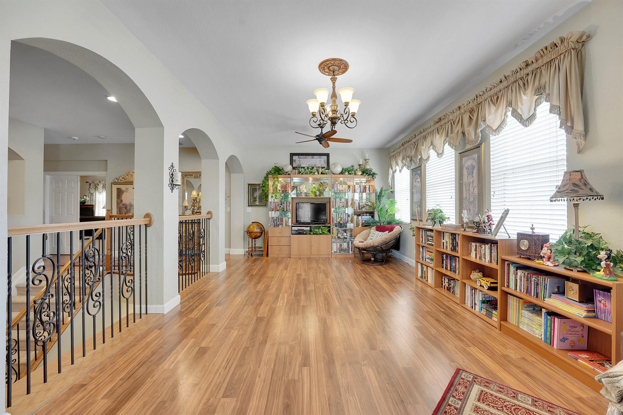 Spacious 5BR/4.5BA solid concrete block home in the sought-after gated community of Highlands Reserve. Over 4,300 sq ft with formal living & dining rooms, grand chef's kitchen, large family room, and spacious open loft space upstairs. Enjoy a covered lanai, extended patio, fenced yard, tranquil lake view, and included hot tub. Mature landscaping, 3-car garage, resort-style amenities, top-rated schools, and easy access to I-95 & Turnpike. Luxury, location, and space! HOA includes lawn & landscaping, gated entry, internet & cable, pool, clubhouse, fitness center, tennis, pickleball, nature trails and more!