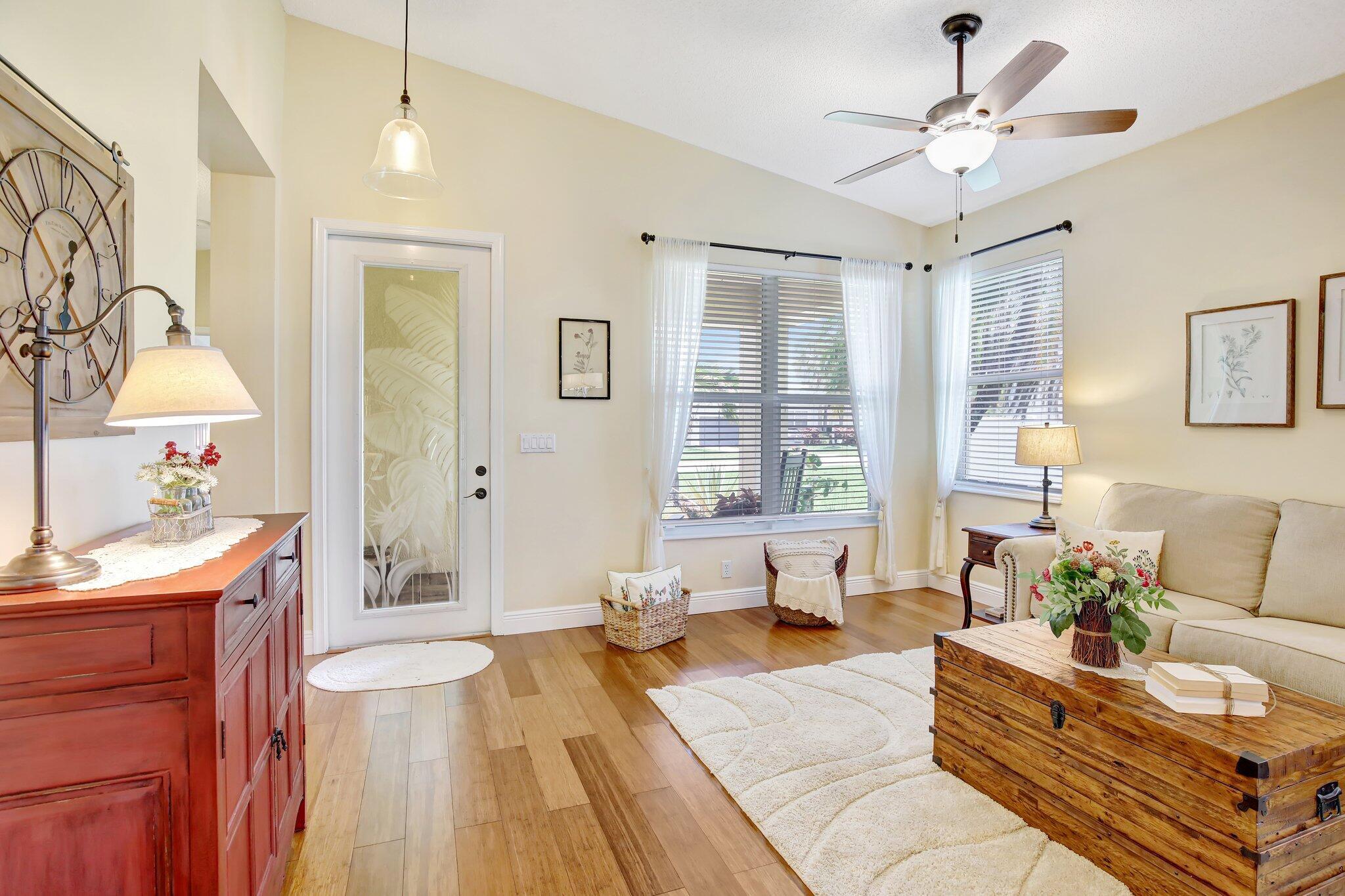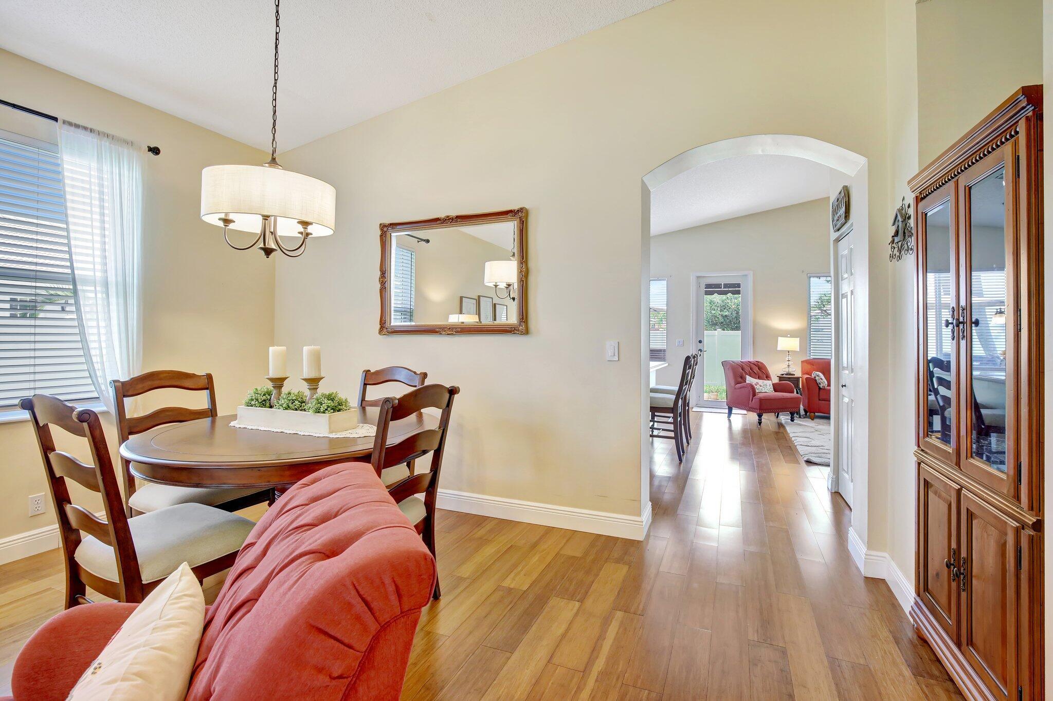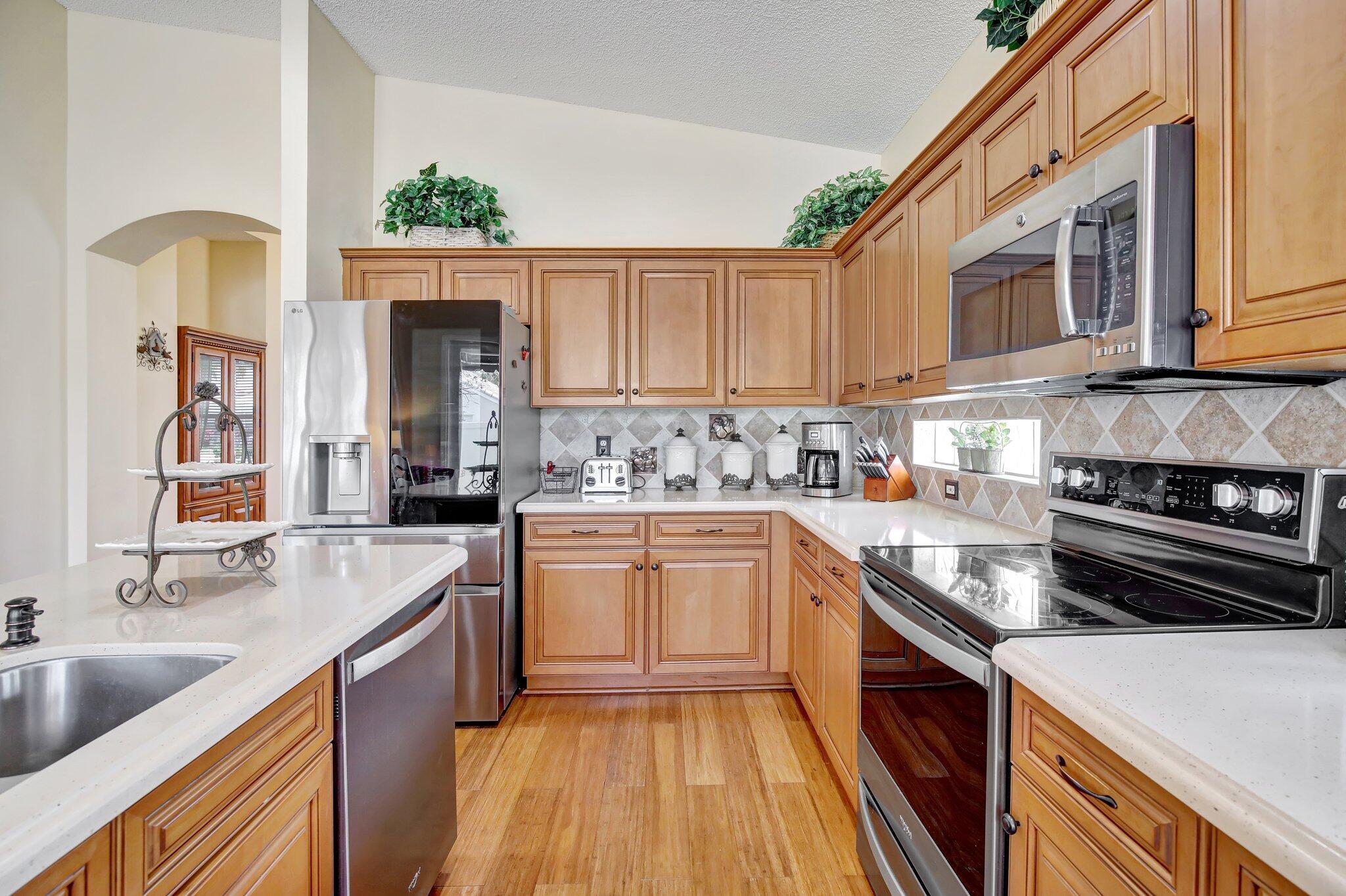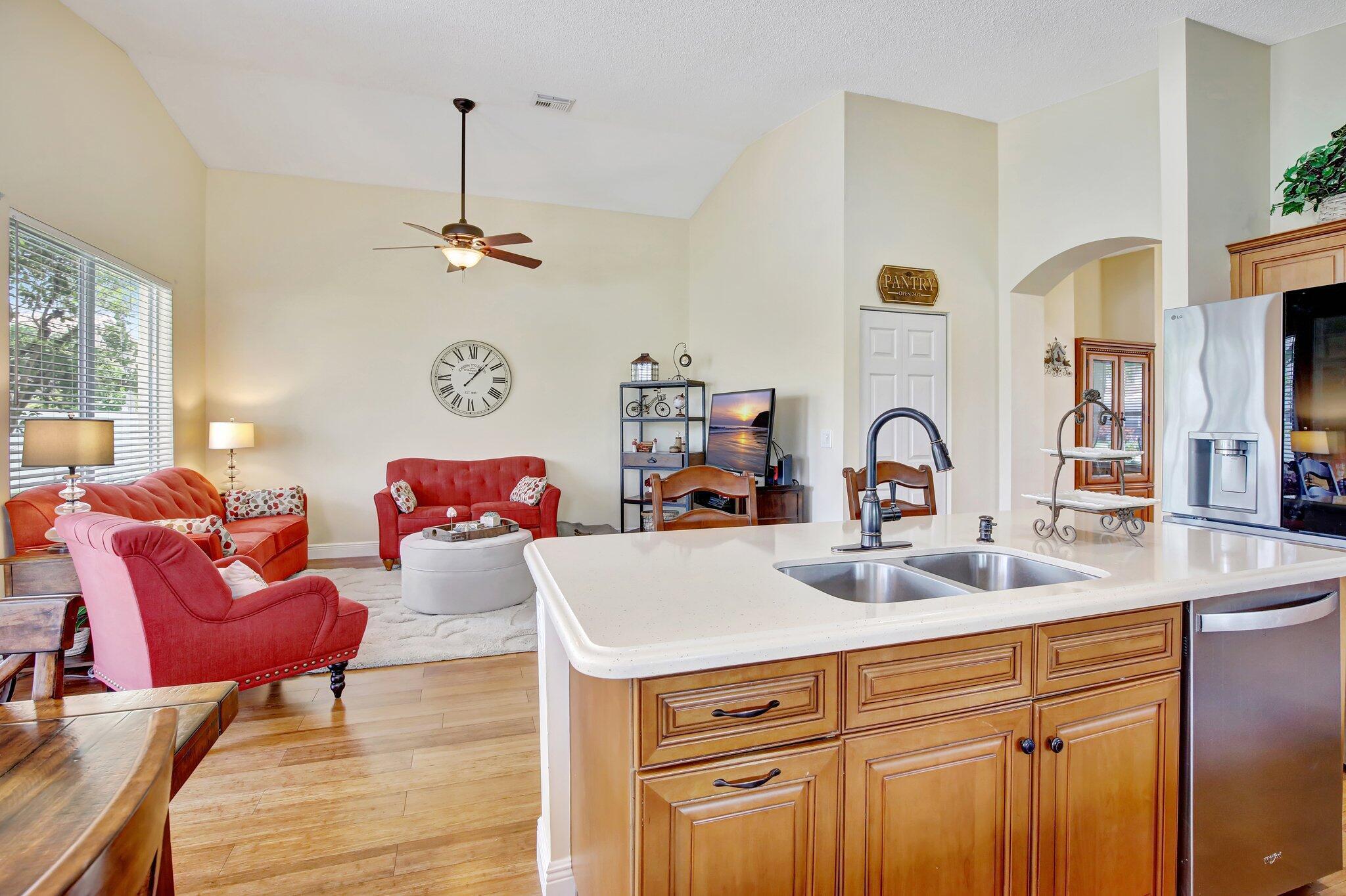 Updated 3 bedroom 2 bathroom 2 car garage home with plenty of extras. New roof and newer impact windows and doors throughout. A large and open gourmet kitchen, that features an eat in kitchen area, plus island counter dining area. This home features high vaulted ceilings plus wood flooring and a paver brick driveway. partially fenced yard with a patio in the backyard. Pembroke Shores is a gated community close to shopping, and parks.