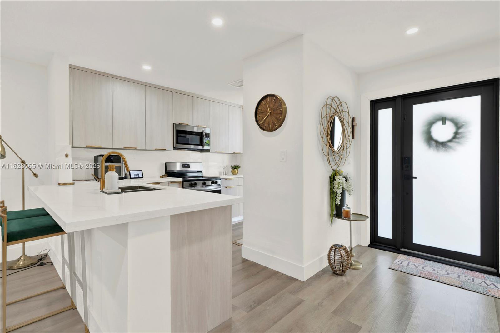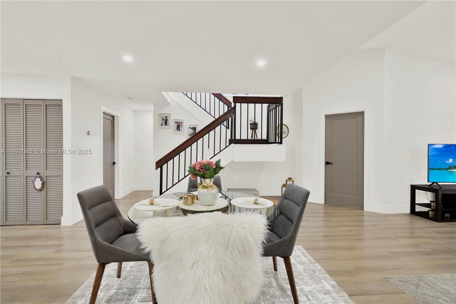 Stunning fully renovated 3-bed, 2-bath townhouse in The Townhouse of Doral Oaks. Features a sleek quartz countertop, stainless steel appliances, modern cabinetry, and a charming French-style breakfast nook. Enjoy custom closets throughout, including a beautiful wood-accent closet wall in the primary bedroom. High-impact windows and sliding doors provide natural light and protection. New roof, remodeled bathrooms, and open living areas with quality finishes. Located in a golf course community with access to Doral Park Country Club amenities: pool, gym, tennis, restaurant, and more. Prime Doral location near top schools, shopping, and dining. Move-in ready!