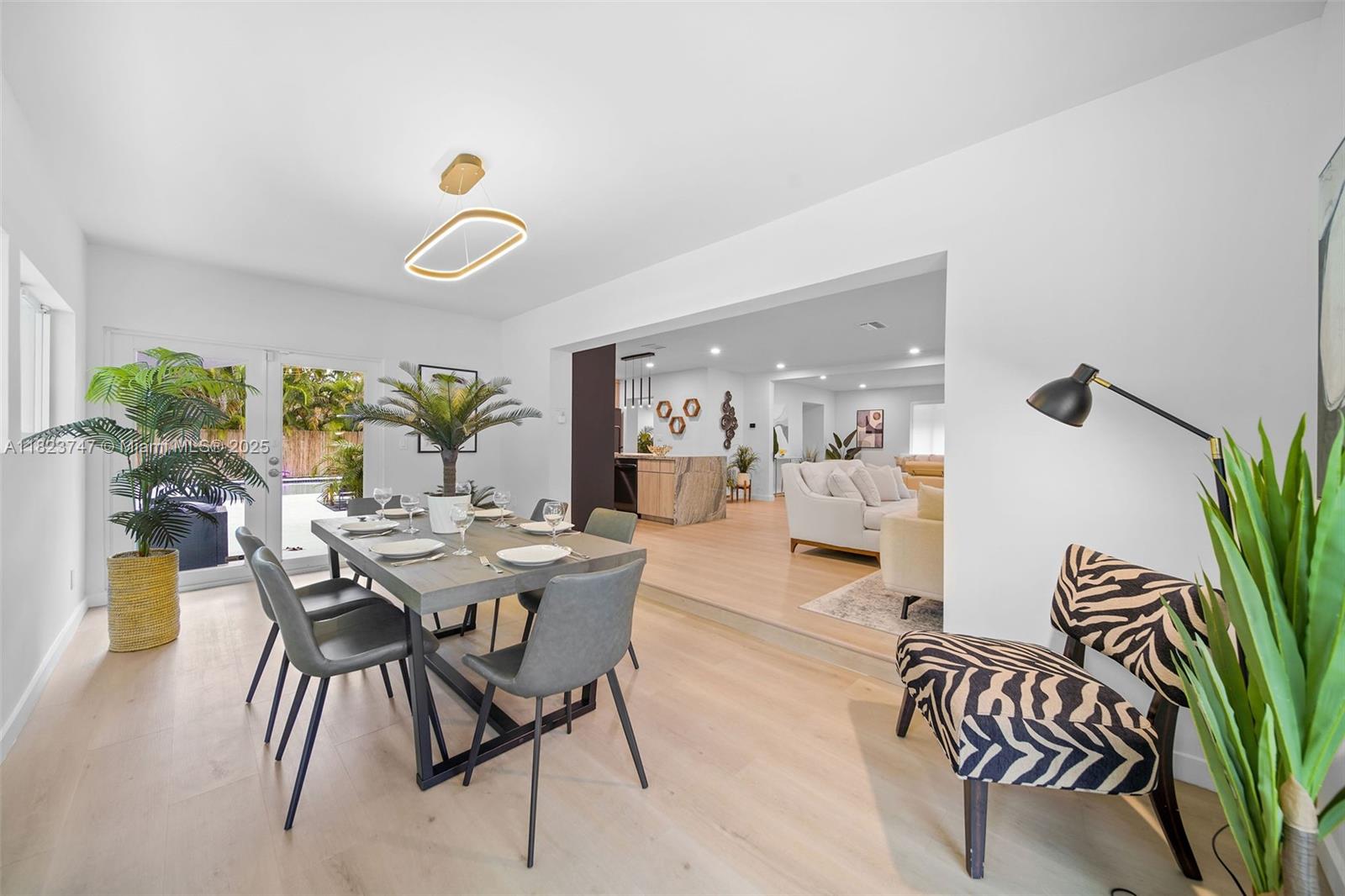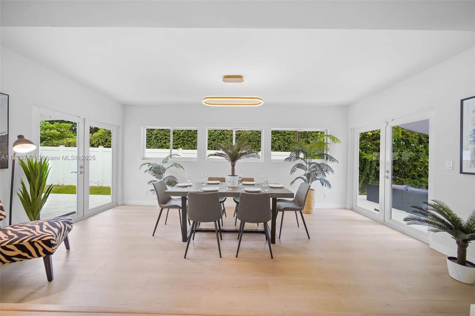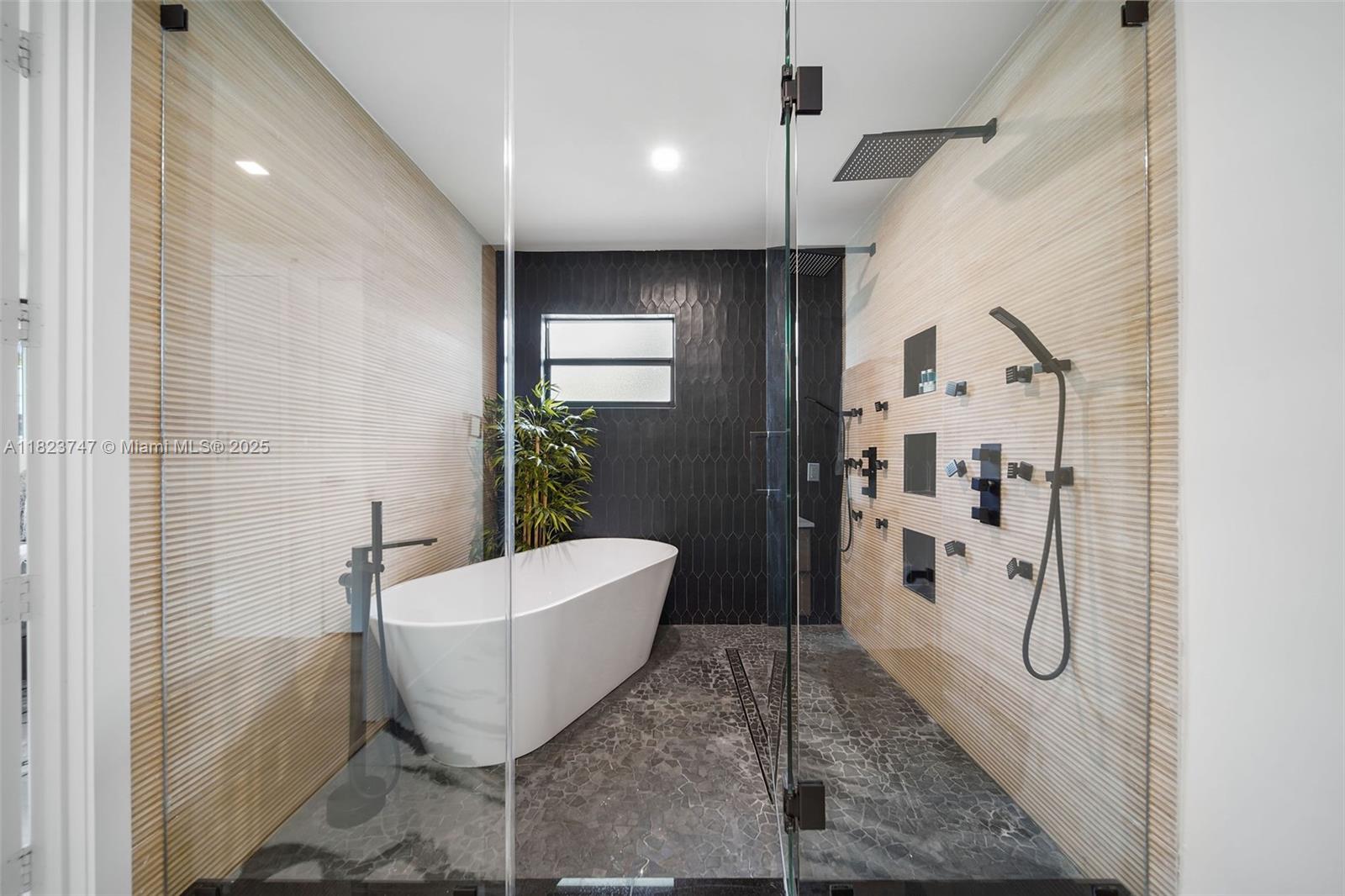 MUST SEE! If you're looking for one of the largest Biscayne Park 4-bedroom pool homes available, check this out (Bitcoin accepted)! Beautifully updated 4 bed-3.5 bath midcentury pool home ~3,000 SF of interiors on a large 11,585 SF lot. Great open flow plan, three living areas, dining room, and eat-in open island kitchen, plush multiple lush entertainment gardens. Four spacious bedrooms (two ensuites) including primary with majestic spa-like double-vanity bath, freestanding tub, and a massive shower with 16 power jets and dual rainfall shower heads. Great features: impact windows-doors, private powder room, huge 20’x40’ pool, multiple patios, mini golf, and outdoor moonlight movie screen. You’ll feel like you’re living in “paradise” in this dreamy Biscayne Park tropical resort-style home!