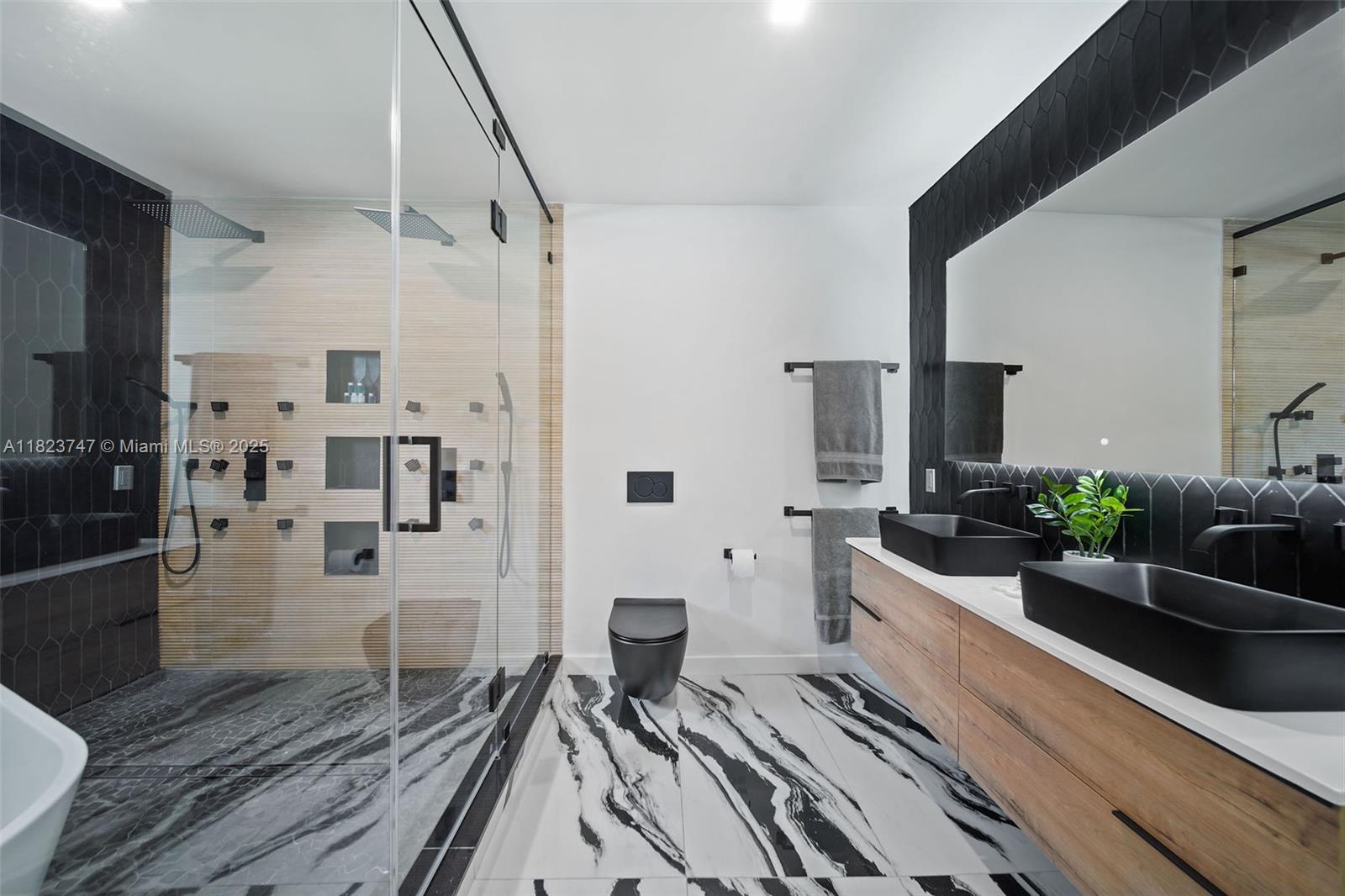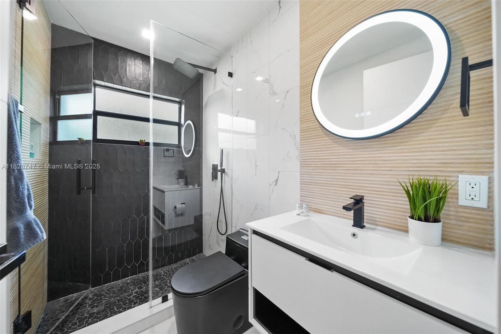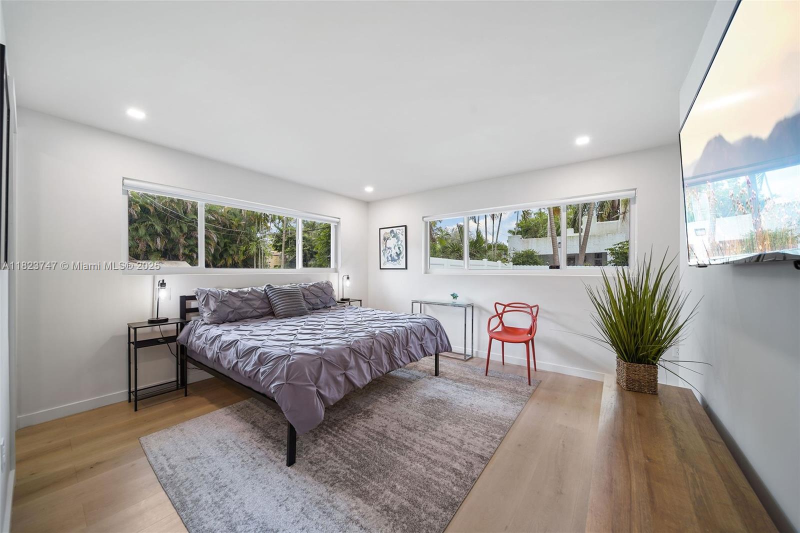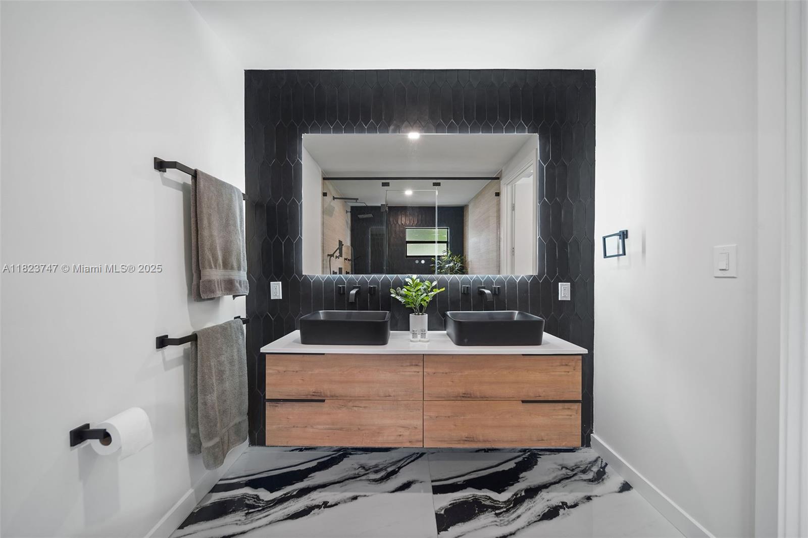 MUST SEE! If you're looking for one of the largest Biscayne Park 4-bedroom pool homes available, check this out (Bitcoin accepted)! Beautifully updated 4 bed-3.5 bath midcentury pool home ~3,000 SF of interiors on a large 11,585 SF lot. Great open flow plan, three living areas, dining room, and eat-in open island kitchen, plush multiple lush entertainment gardens. Four spacious bedrooms (two ensuites) including primary with majestic spa-like double-vanity bath, freestanding tub, and a massive shower with 16 power jets and dual rainfall shower heads. Great features: impact windows-doors, private powder room, huge 20’x40’ pool, multiple patios, mini golf, and outdoor moonlight movie screen. You’ll feel like you’re living in “paradise” in this dreamy Biscayne Park tropical resort-style home!