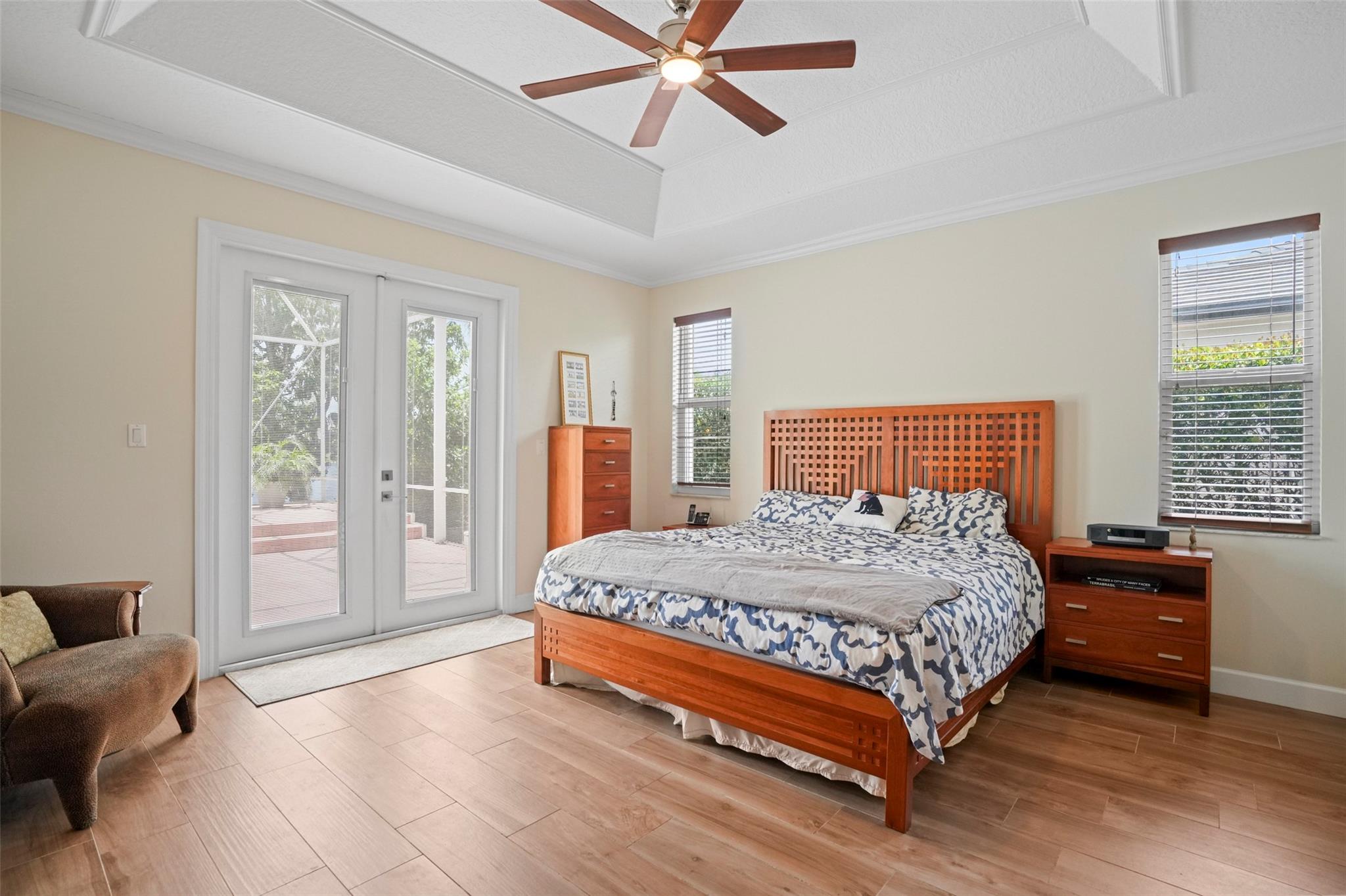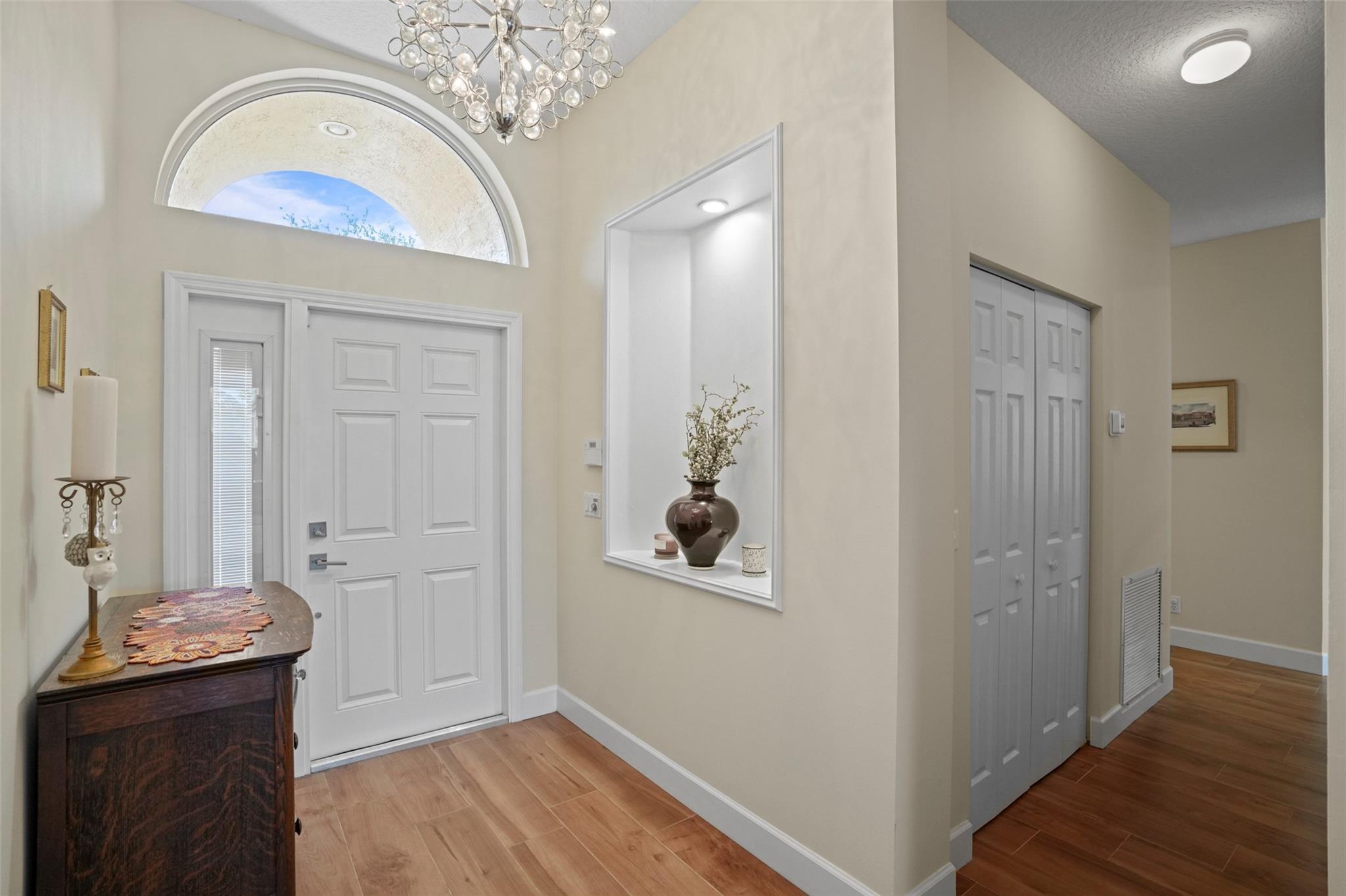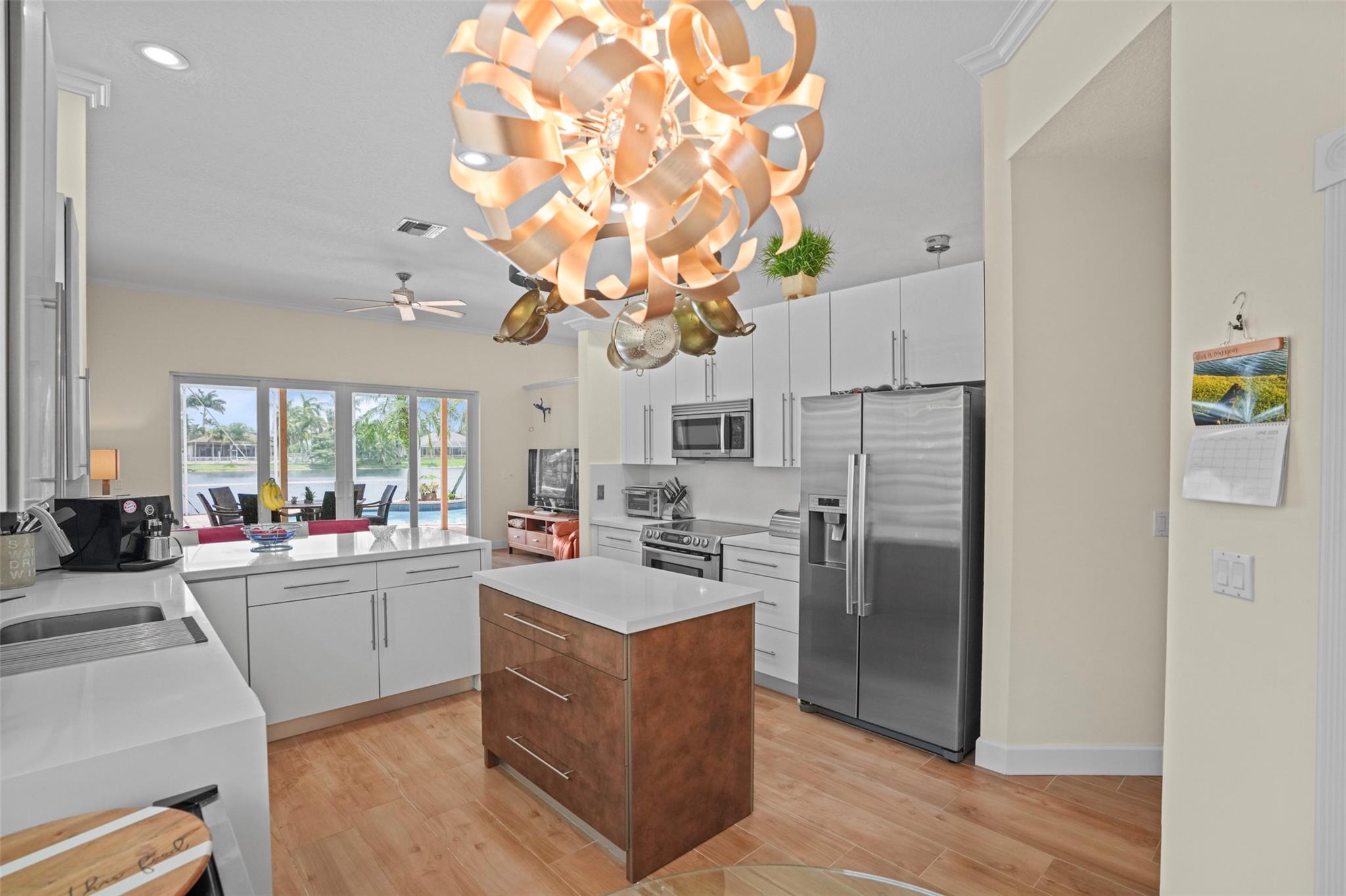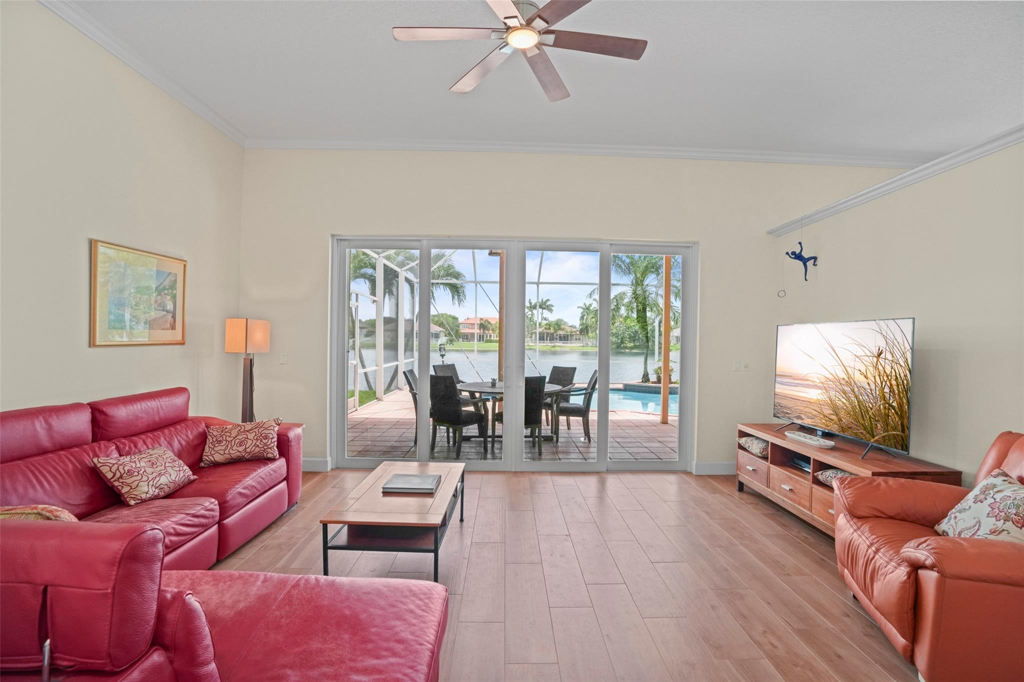 Wide lakefront home with screened pool in gated Stoneridge Lake Estates. Stylish modern finishes and architectural details throughout. Split floorplan with foyer entry and volume ceilings. Formal living and dining rooms, updated kitchen with island, quartz counters, European cabinetry, pantry and eat-in café. Spacious family room opens to large screened patio with refinished pool and spa with sweeping lake views—feels like a second living area. Luxurious primary suite with elegant bath and whirlpool tub, premium tile and fixtures. Impact windows, shutters and doors, laundry room. Community features tennis, pickleball, playground, Comcast Cable package and ADT monitored alarm. Prime location near top-rated schools (walk to Hawkes Bluff Elementary) parks, shopping, Publix, Lowe’s, and I-75.
