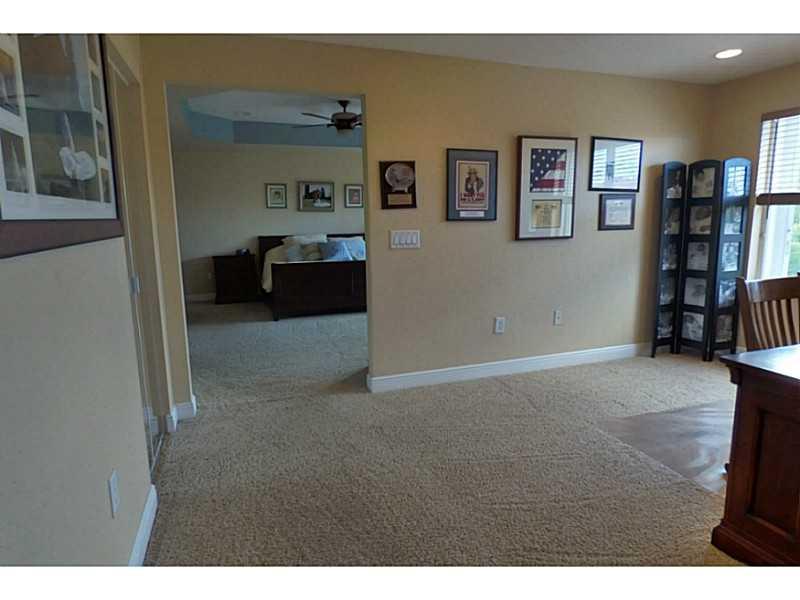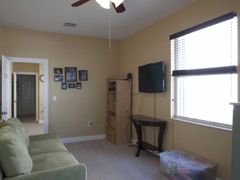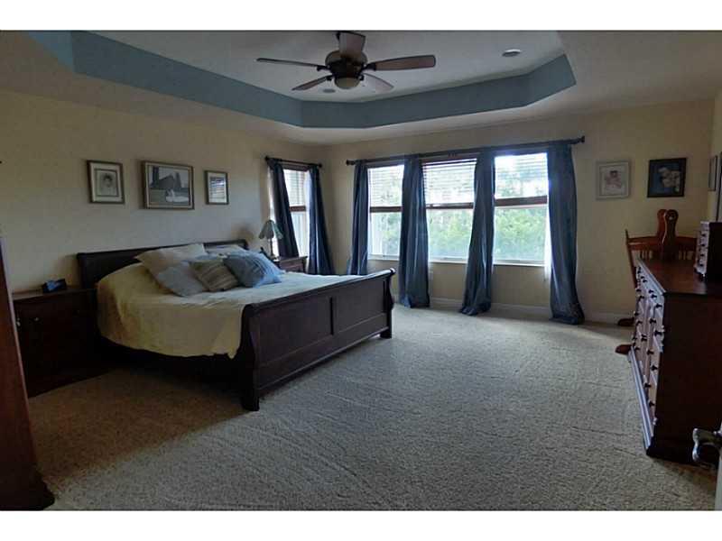 Stunning 5 BR, 3 bath home on cul de sac in manned gated Sunset Falls. Upgraded gourmet eat-in kitchen, top cabinetry, granite counters, ss appl. Superb master suite w/huge sitting area/office, tray ceilings, walk in closets, master bath jacuzzi tub, his & her vanities, sinks and toilets. Wrought iron/wood bannister, French doors, covered patio, accordion shutters. 1 BR suite w/extra rm downstairs. Walk to resort level comm amenities incl lakeside pool, clubhouse, fitness center, tennis. Grade A schools.