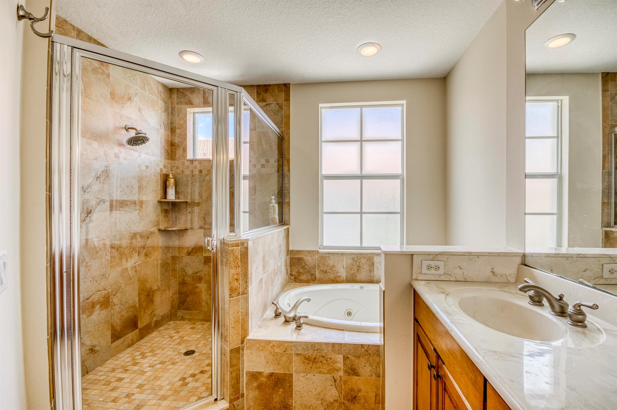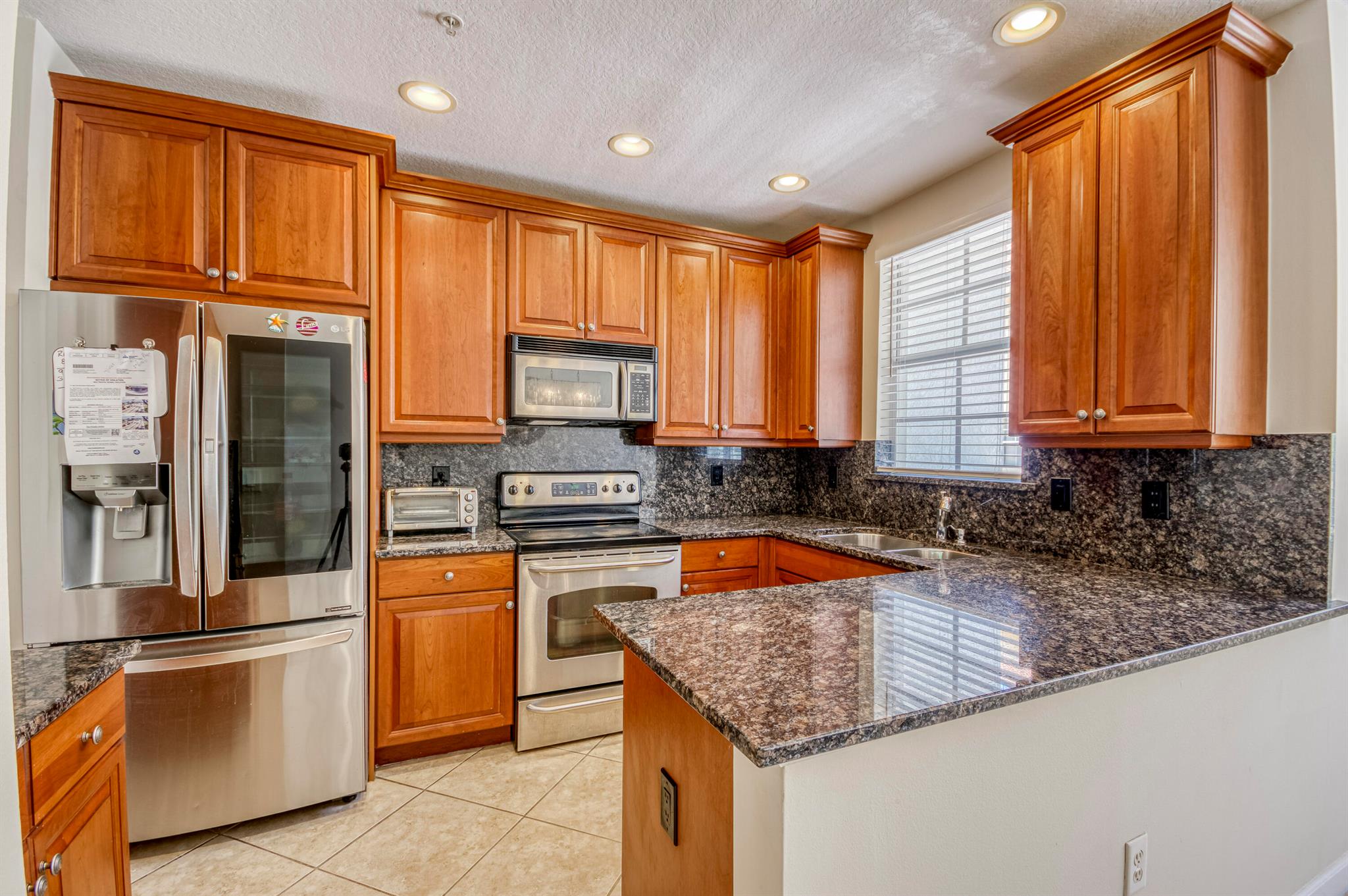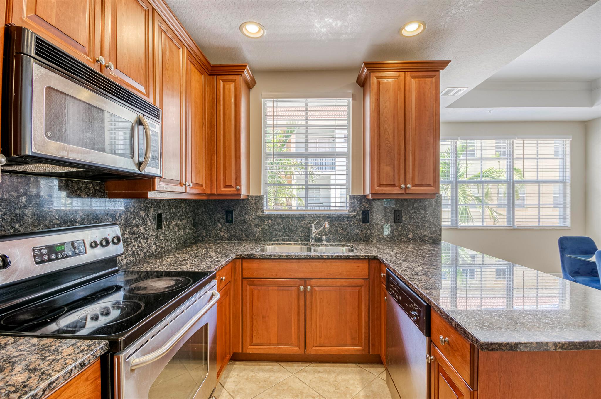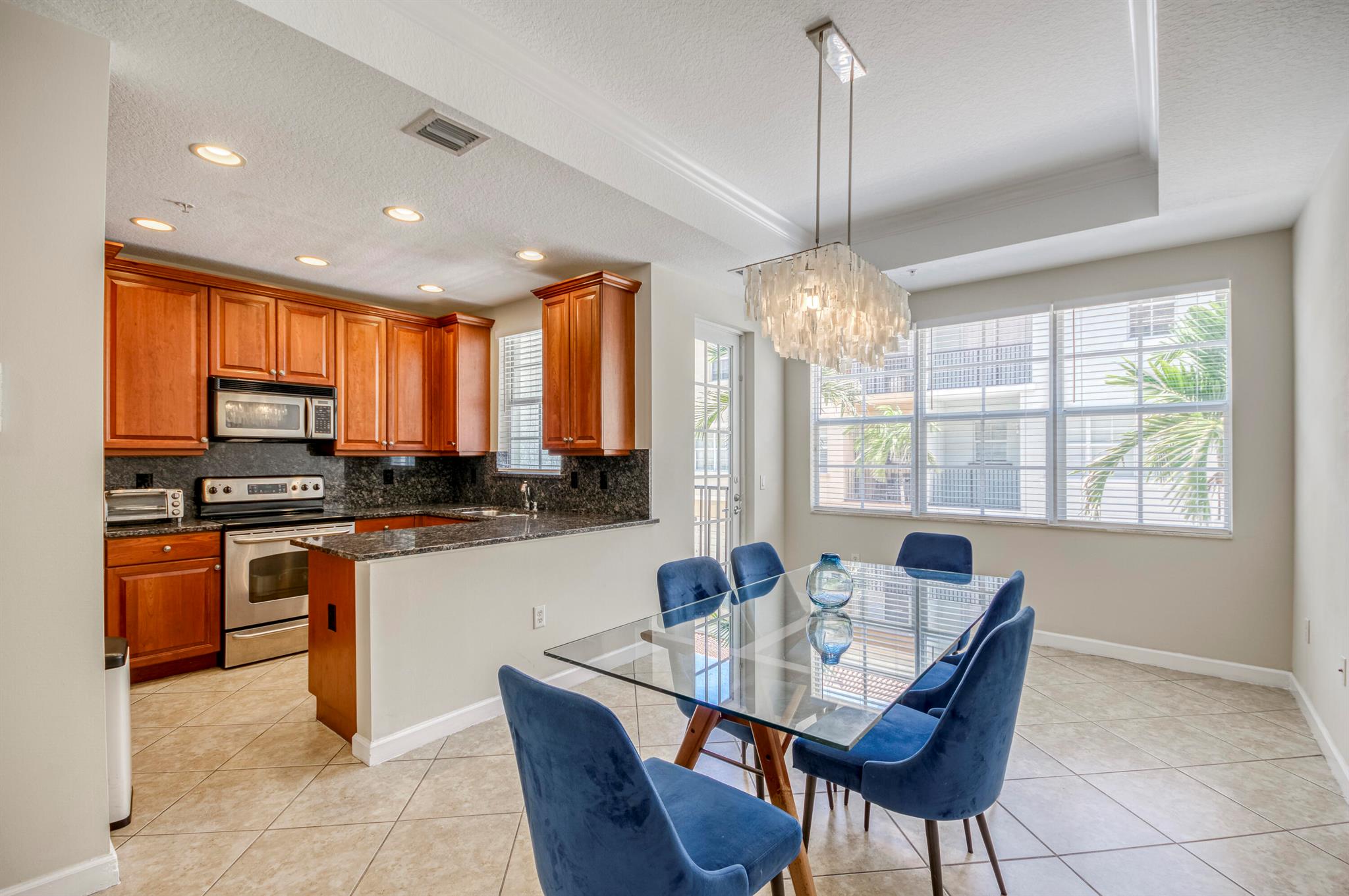 Welcome to this wonderful 2BR / 3.5BA townhome with a 2-car garage along with a private patio/terrace located in the prestigious Harbour Oaks in Palm Beach Gardens. The eat-in kitchen features beautiful wood cabinetry, granite countertops and backsplash, stainless steel appliances, built in wine rack and mini refrigerator, recessed lighting, and glass sliding doors that lead to a sizable balcony to relax and enjoy the Florida sunshine. The living/dining rooms are light and bright with neutral tile flooring, oversized windows, tray ceilings, and are freshly painted. The primary bedroom suite boasts tile flooring, tray ceilings, fresh paint, a large walk-in closet with ample storage, and sliding glass doors to another balcony.