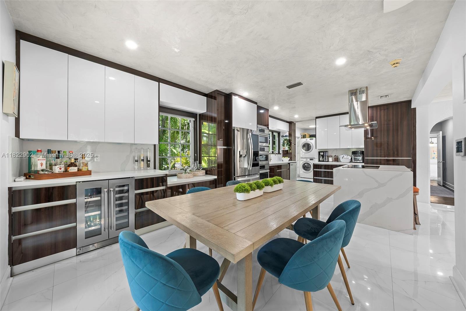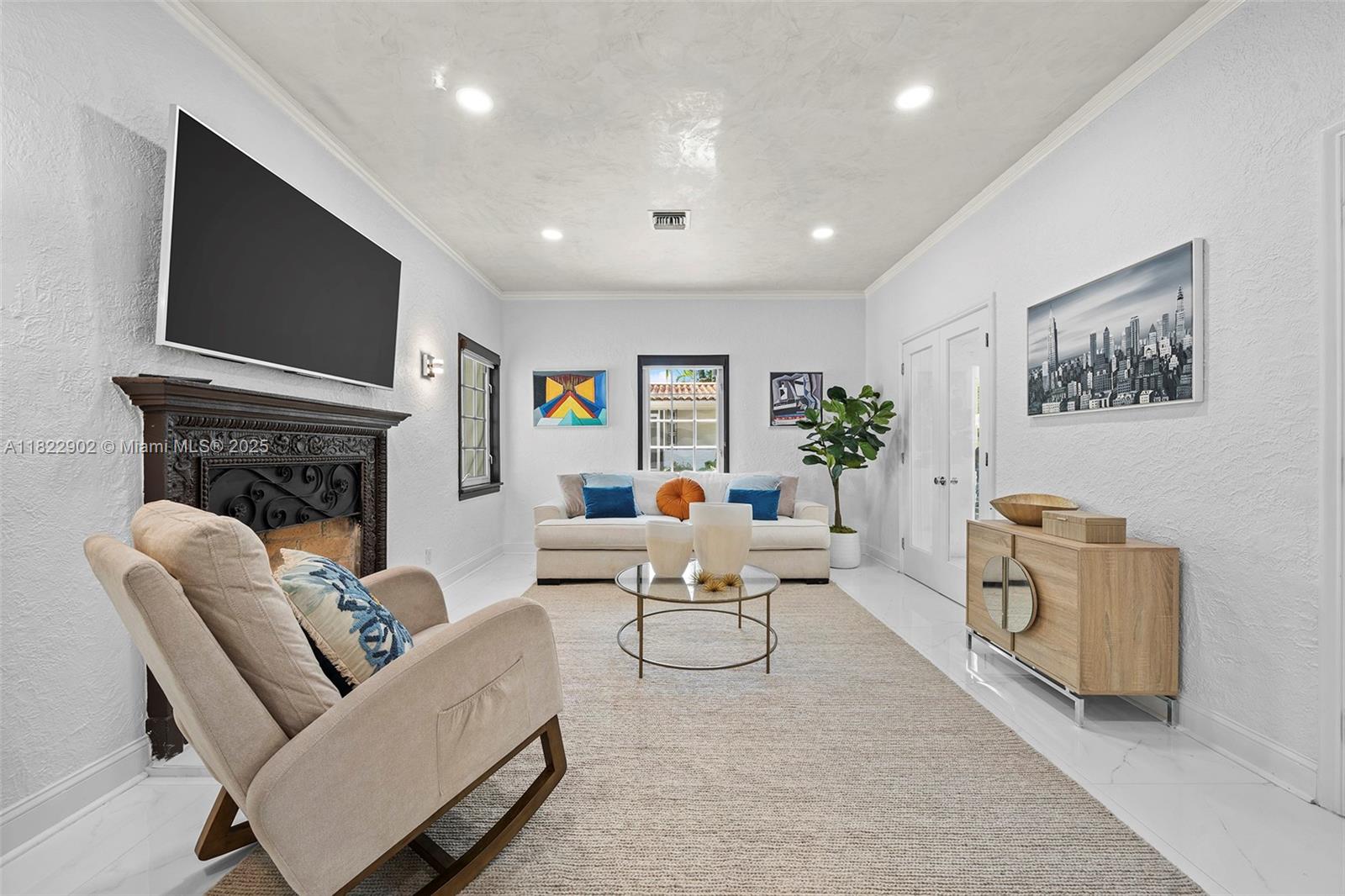 Bienvenido a Casa Granada — a fully renovated Spanish-style home in the sought-after Granada neighborhood of Coral Gables, minutes from the Country Club, Miracle Mile, and Giralda Row. Bright interiors feature an Italian kitchen with island, Silestone countertops, and premium appliances, plus dining room, enclosed porch, office, and den. The primary suite offers a walk-in closet and spa bath with oversized shower and dual sinks. Finishes include Carrara marble tile, hardwood floors, impact windows, new roof, and custom closets. Two private patios allow for both lively family gatherings and peaceful retreats under the Coral Gables sky.