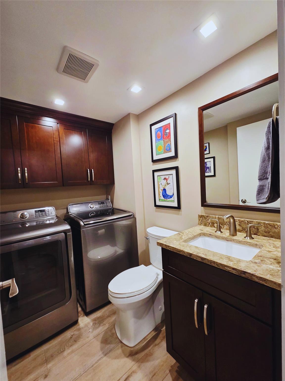 Welcome to the beautiful STAMFORD AT ROYAL PALM BEACH! Gorgeous 2 bedroom 2 1/2 bathroom complete turn key home with upgrades you will see in a million dollar home! Walking in, you will be greeted by a fairly new screened in patio area perfect for barbecuing and comfortable patio seating. First floor tiled throughout resembling wood flooring. Living room flowing into the custom kitchen with beautiful back splash, crown molding, soft closing doors and quartz counter tops. Ceiling has custom installed flush LED lighting on dimmers with lighting under the cabinets as well. Half bath shares its space with the laundry room with Samsung washer/dryer that stays! Custom closets and bathrooms upstairs you will want to see in person. A/C only 2 yrs old. Roof replaced 2024.
