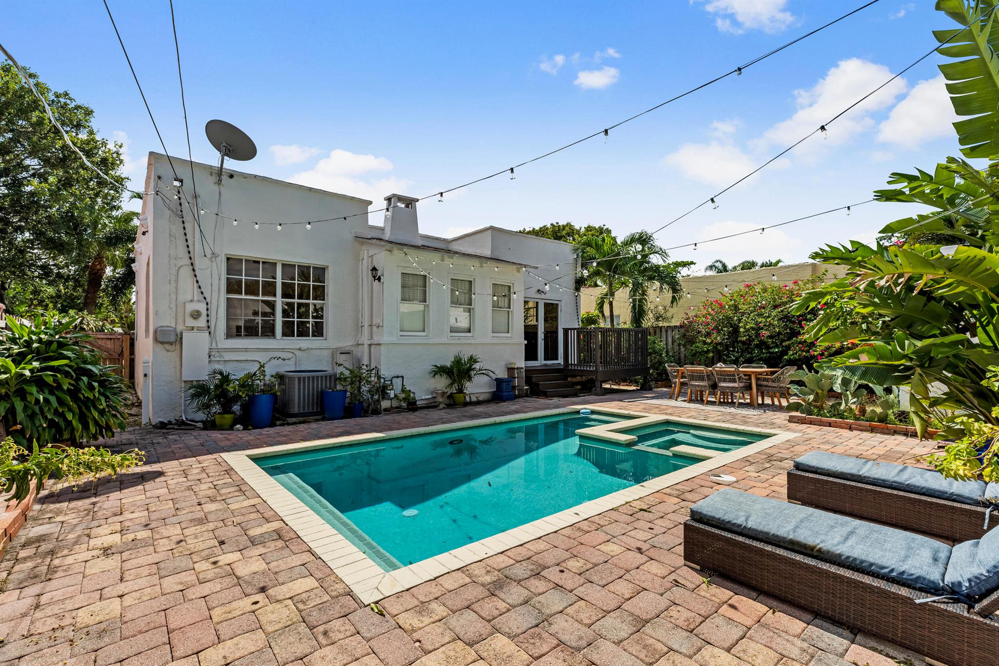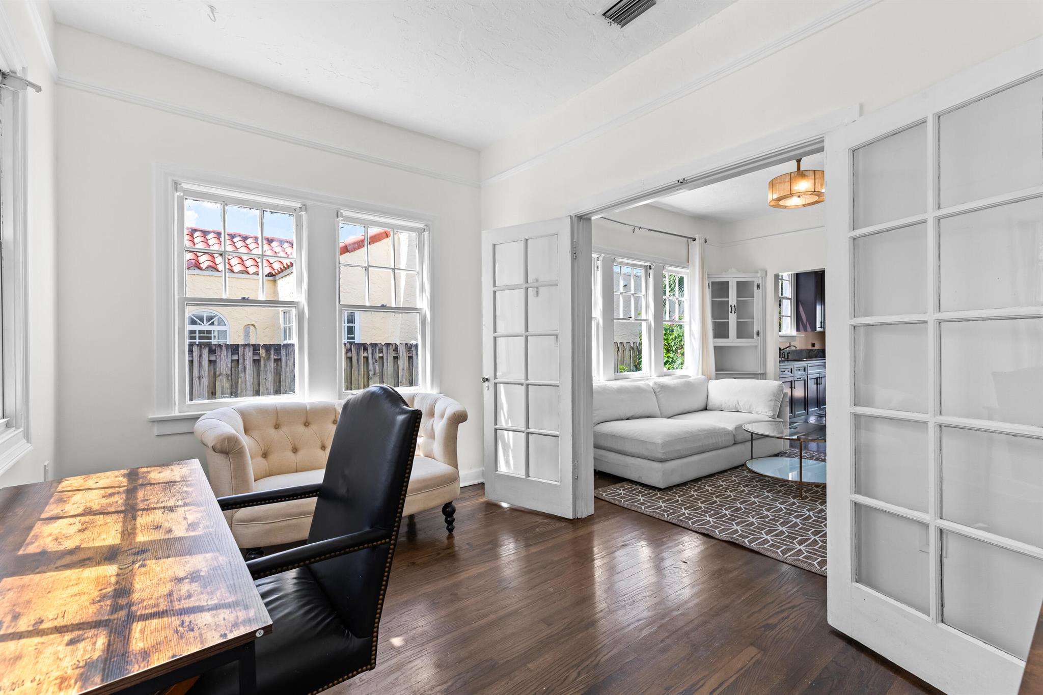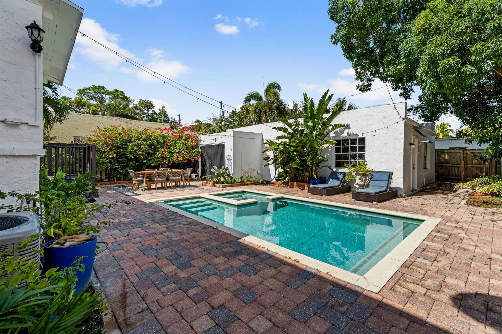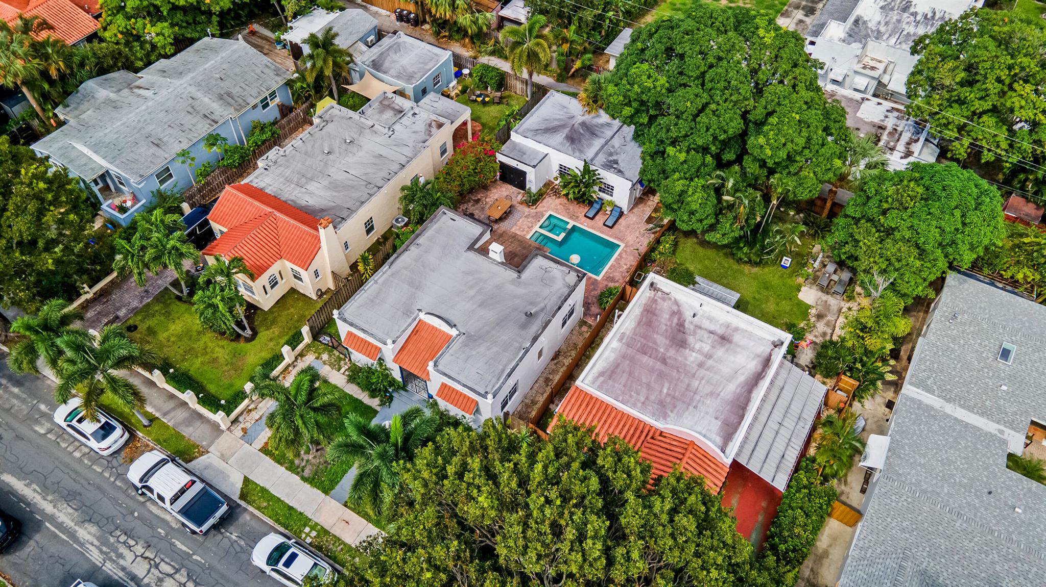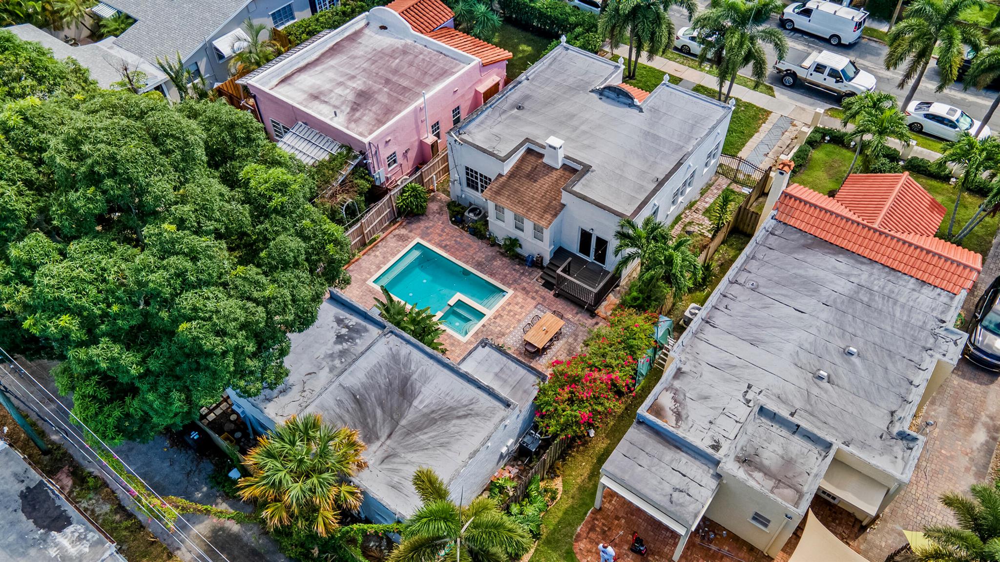 Historic century-old house with separate Guest house, and heated pool plus spa, in brick paver courtyard. Seller will give the buyer $25,000 towards repairs. Desirable ''Northwood'' area, east of US1. Lots of original charm: fireplace, solid oak floors, arches, doors and doorknobs. 3-bedrooms plus den, 3-bathrooms, detached garage. Newer roof (2018). Newer central air (2017). New kitchen (2023). Newer pool/spa heater (2017). Tankless water heater (2017). Natural gas stove, pool heater, water heater. Main house electric and plumbing redone in kitchen and baths. Guest house is complete 1-bed, 1-bath, full kitchen, and living room.