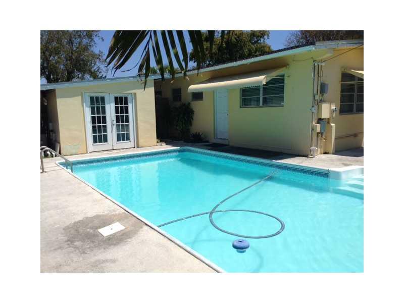 BANK ON THE MARKET - CALL LISTING OFFICE TO SHOW. Fantastic location close to Federal Hwy, beaches & shopping. Florida Charmer with circular driveway and one car carport. Open kitchen to living area. Family room has door leading to a roofed, screened in patio. Vaulted ceilings. New breaker electrical panel. Spacious yard with privacy fence and in ground pool. Separate building with water and electricity (has washer and dryer). Great opportunity to be in a fantastic neighborhood. Sold as-is.
