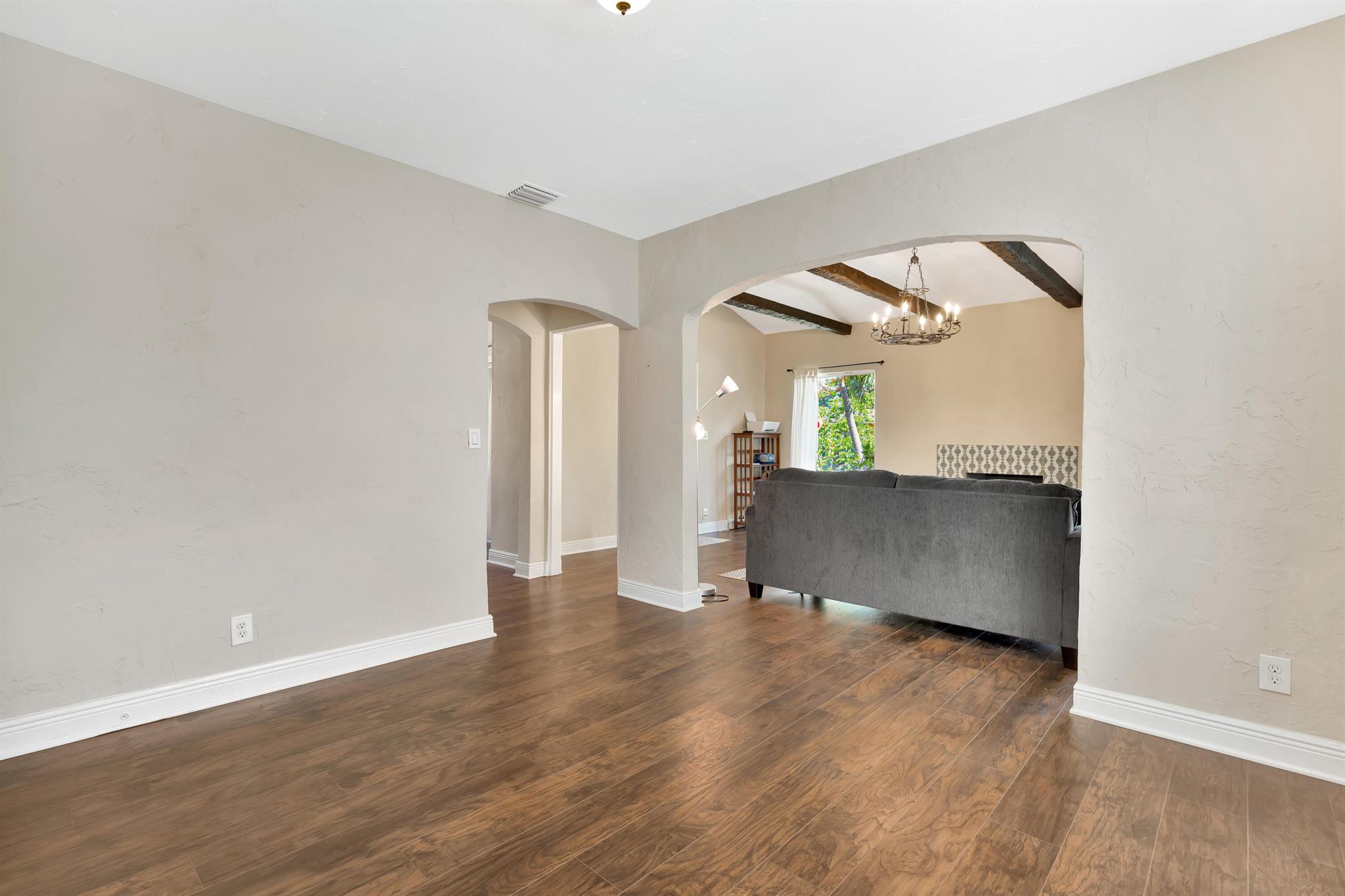 Charming Spanish-Style Home in the Heart of Historic Northwood. Don't miss this beautifully updated 3-bedroom, 1-bath Spanish-style gem located in the sought-after Historic Northwood District. Overflowing with character and charm, this home features dark laminate floors, a spacious kitchen with generous counter space, and signature arched doorways accented by exposed wooden beams that create a warm, rustic feel.Currently configured as a 2-bedroom with a den/office, the layout offers flexibility and can easily be converted back to a true 3-bedroom home. Recent upgrades include a brand-new sewer line, full-impact windows, and a large utility room that enhances everyday convenience. Step outside to enjoy a large, fenced backyard; ideal for relaxing, gardening, or entertaining guests.